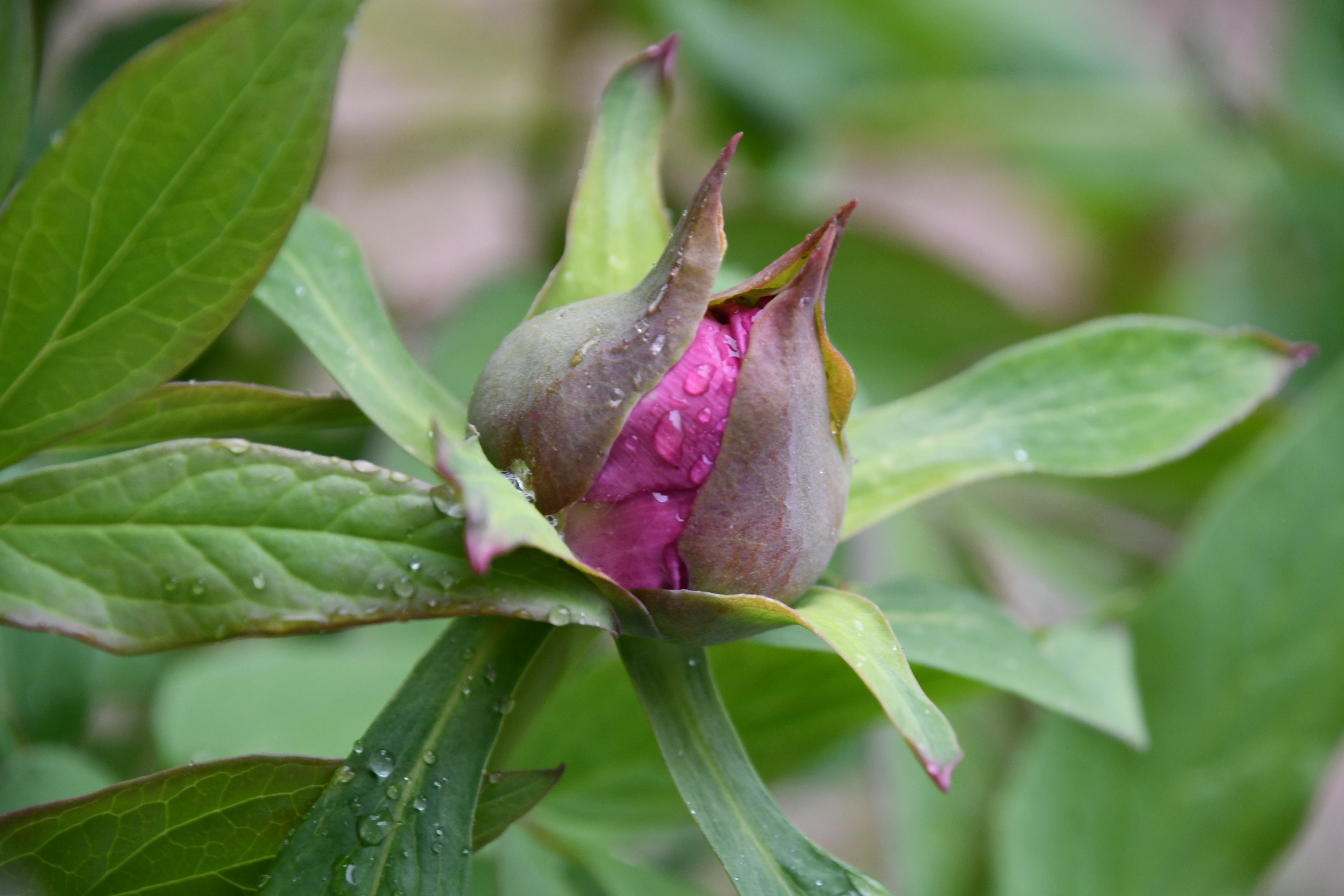 - 드디어 이슬을 머금은 꽃모오리가 겉으로 보이기 시작한다.