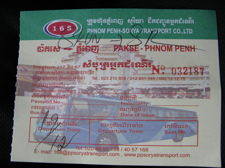 버스가 깜퐁 톰쯤 왔을 때 차장이 빡세에서 받은 원래 차표를 거둬어 가고 168번이 찍힌 표를 주었다.