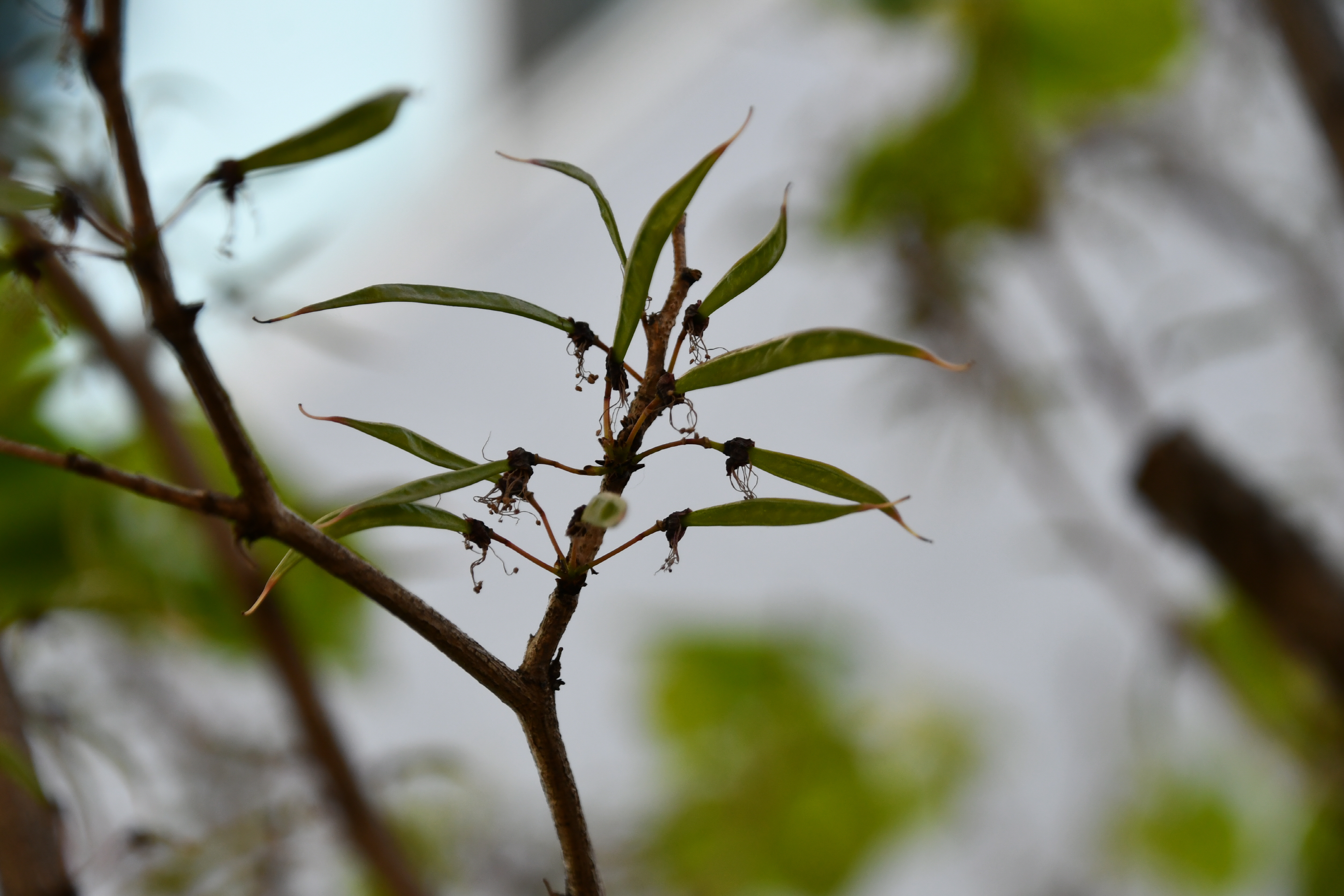- 콩 꼬투리가 맺히고 시작한다. 2019년 같은 날에는 아직도 꽃이 활짝 피어 있었다. 올해는 확실히 봄꽃의 개화가 빠르다는 것을 또 한번 확인했다.