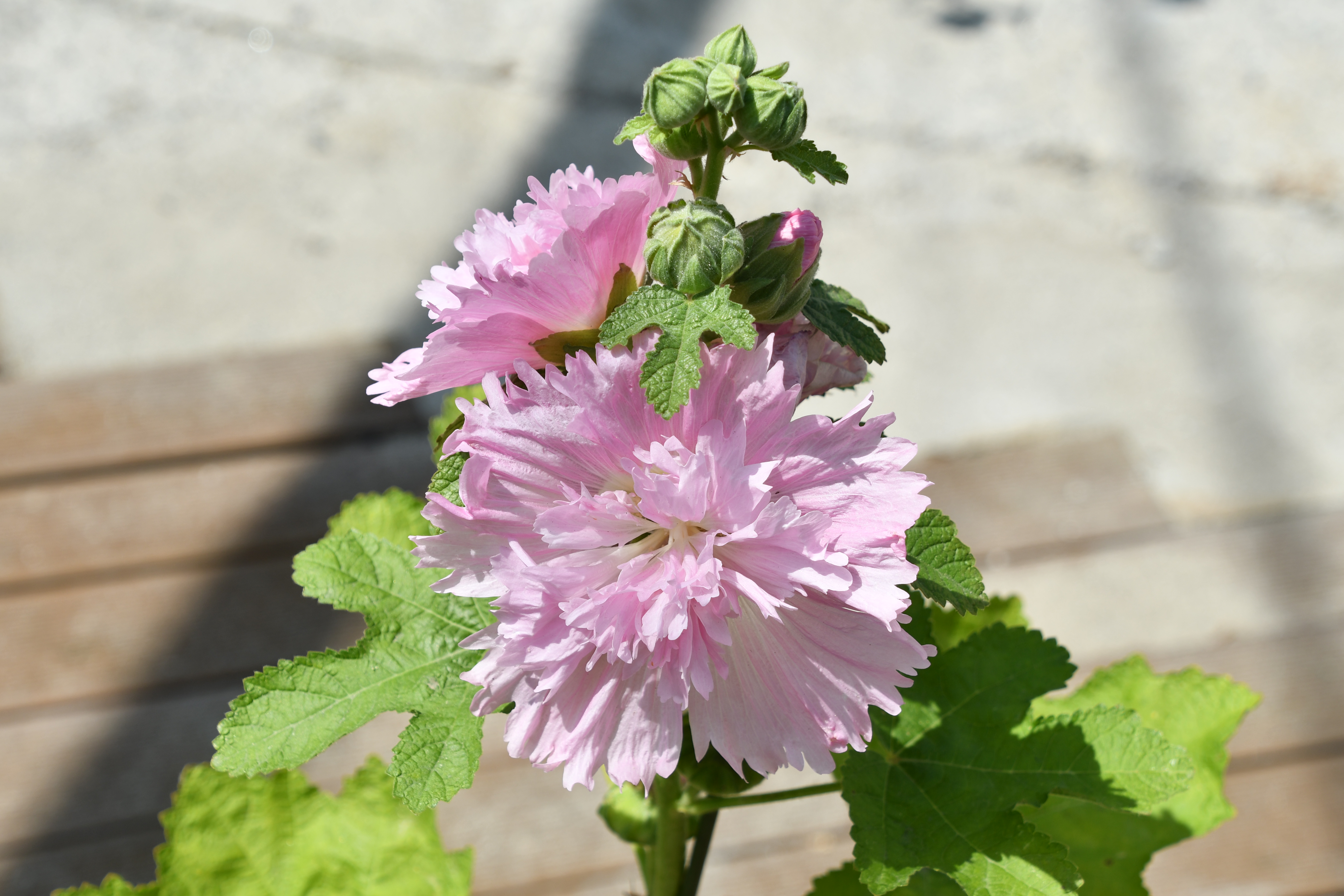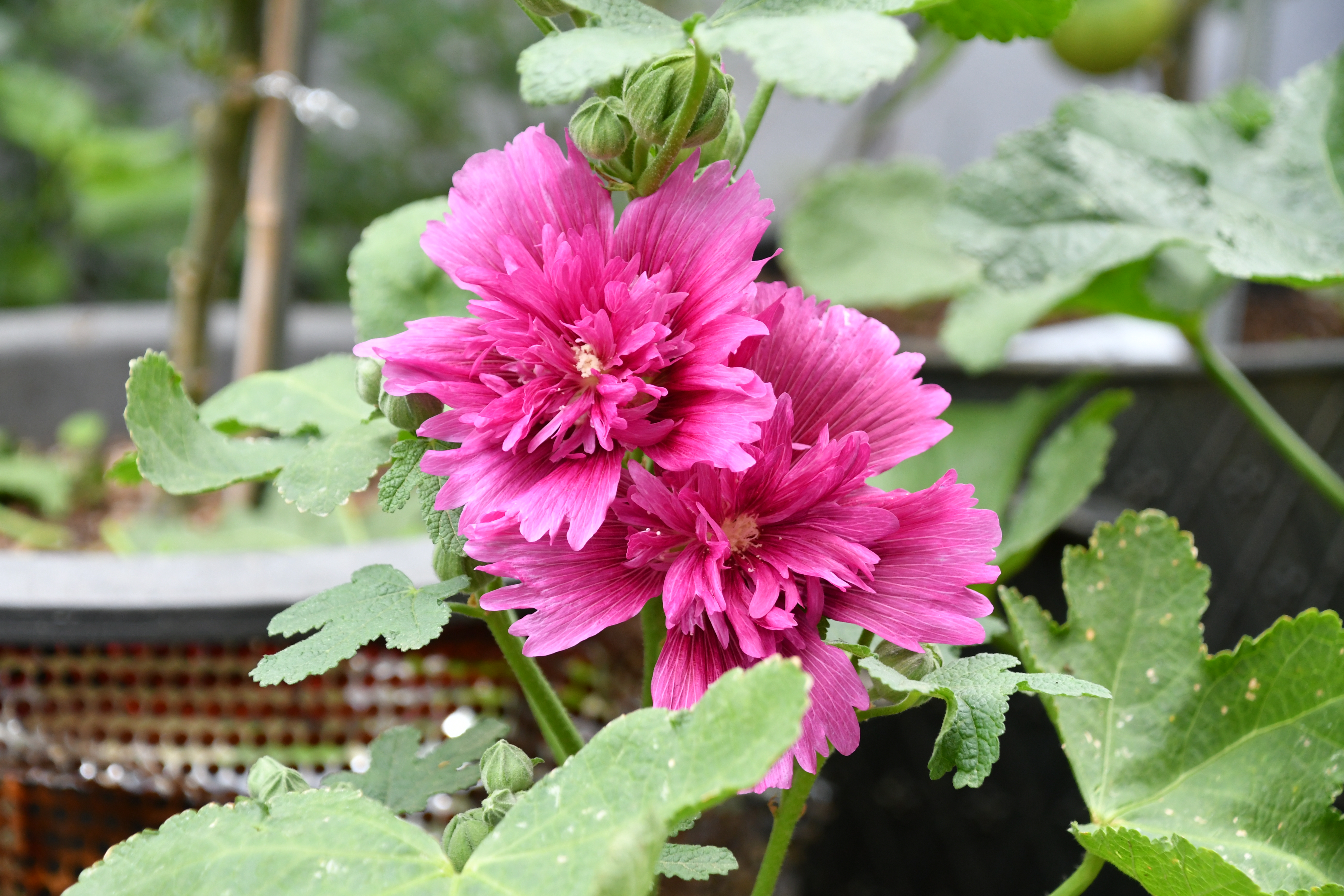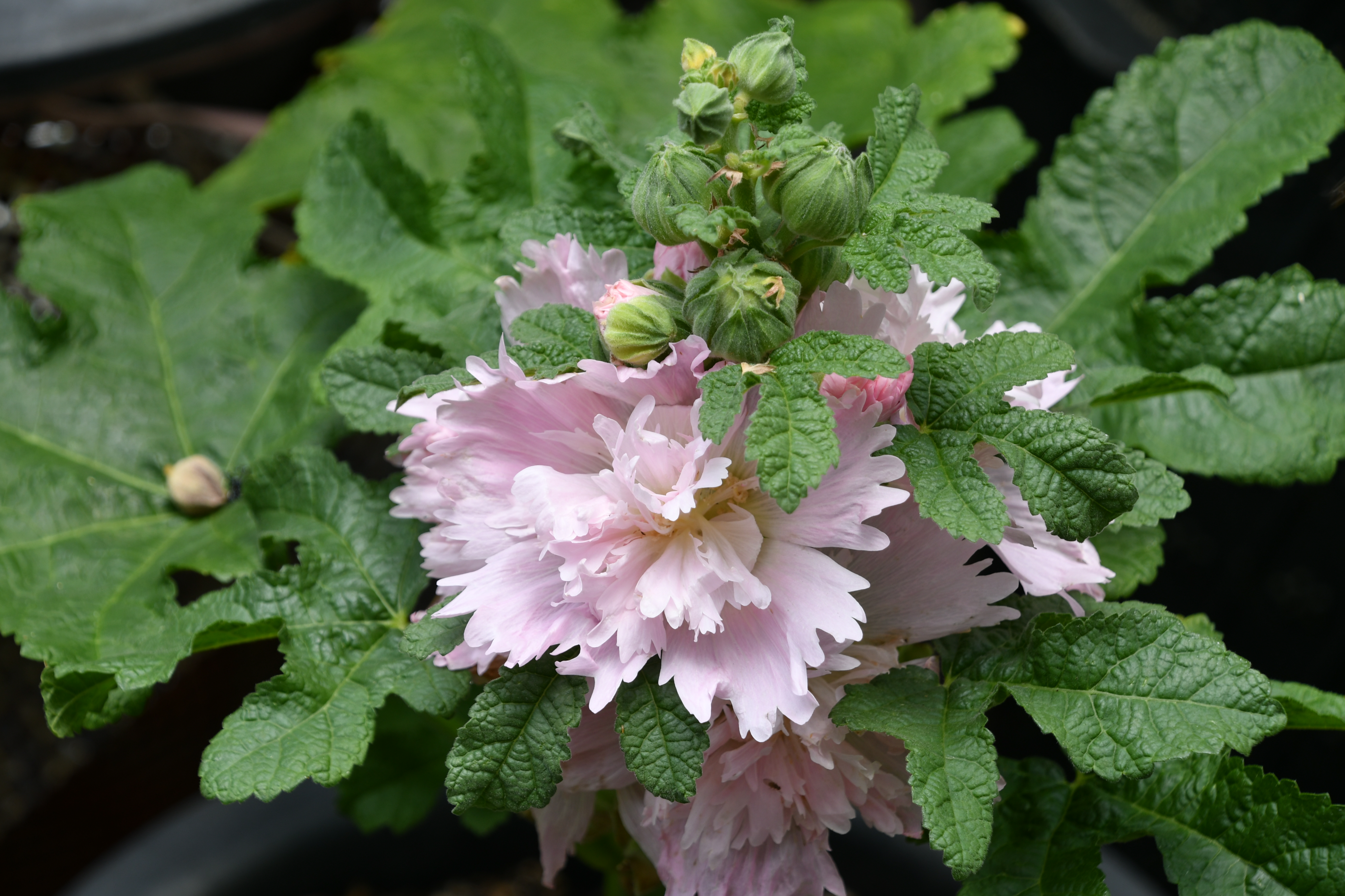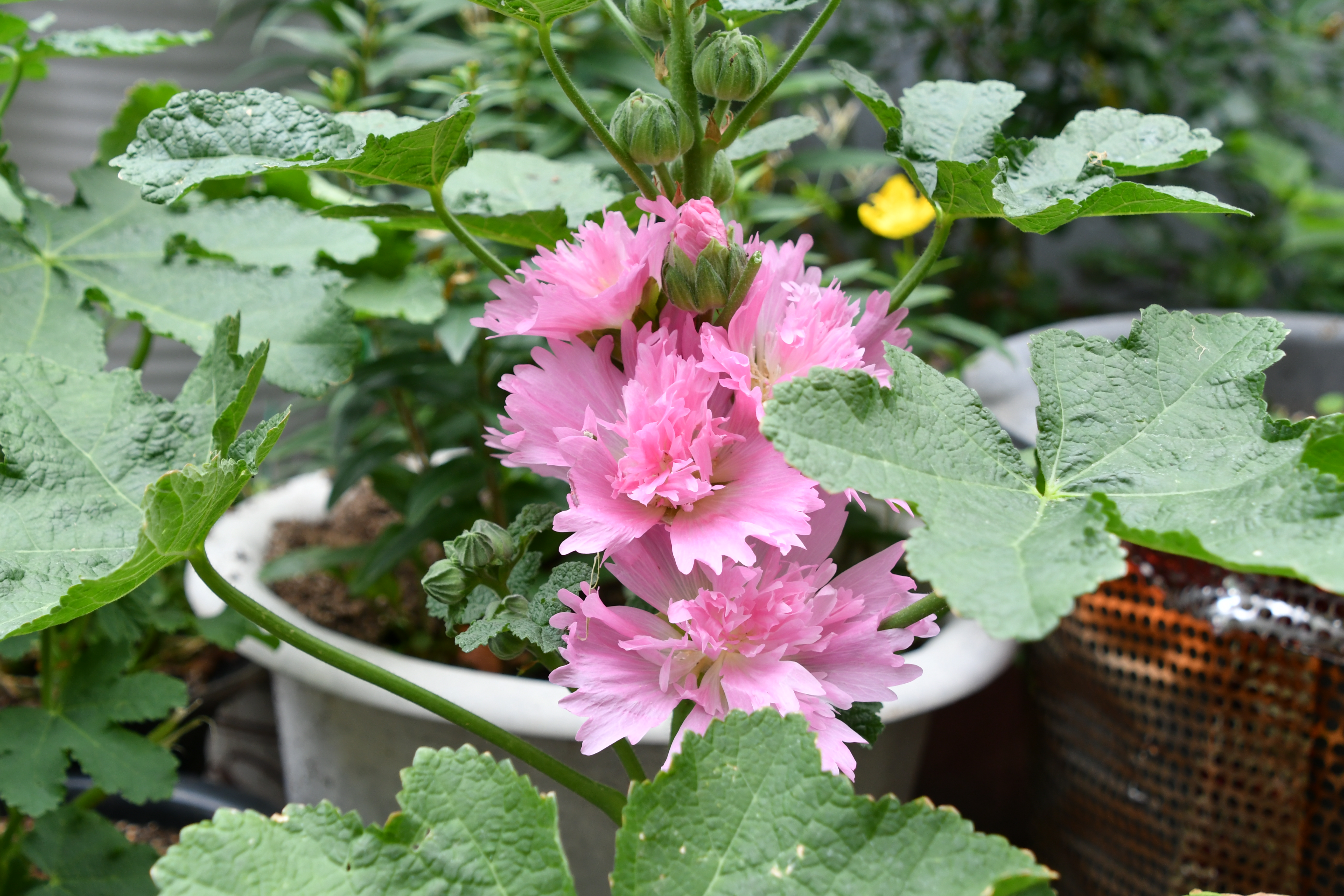 - 새로 만난 분홍 겹접시꽃, 끝이 톱니처럼 울퉁불퉁하다.