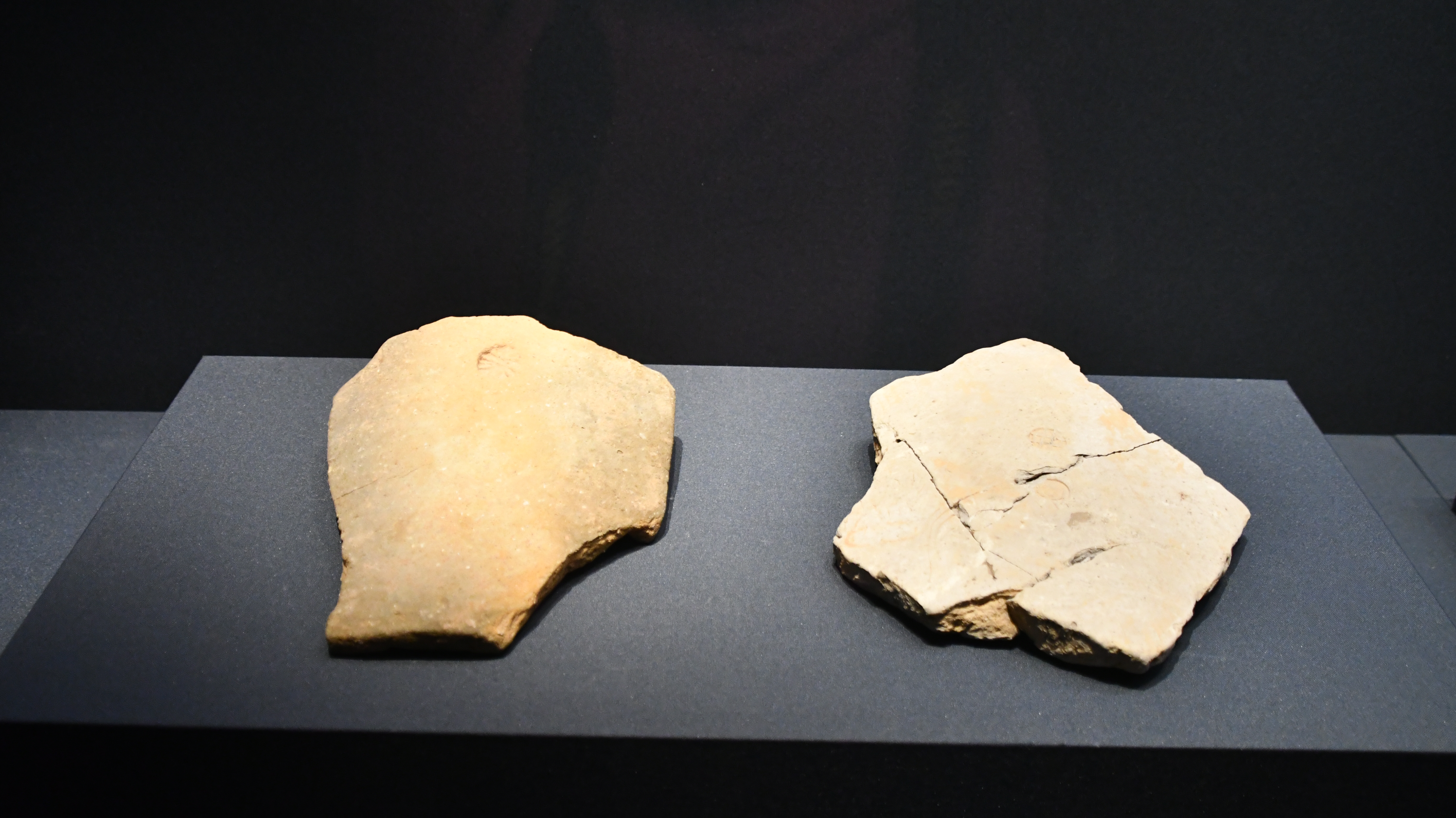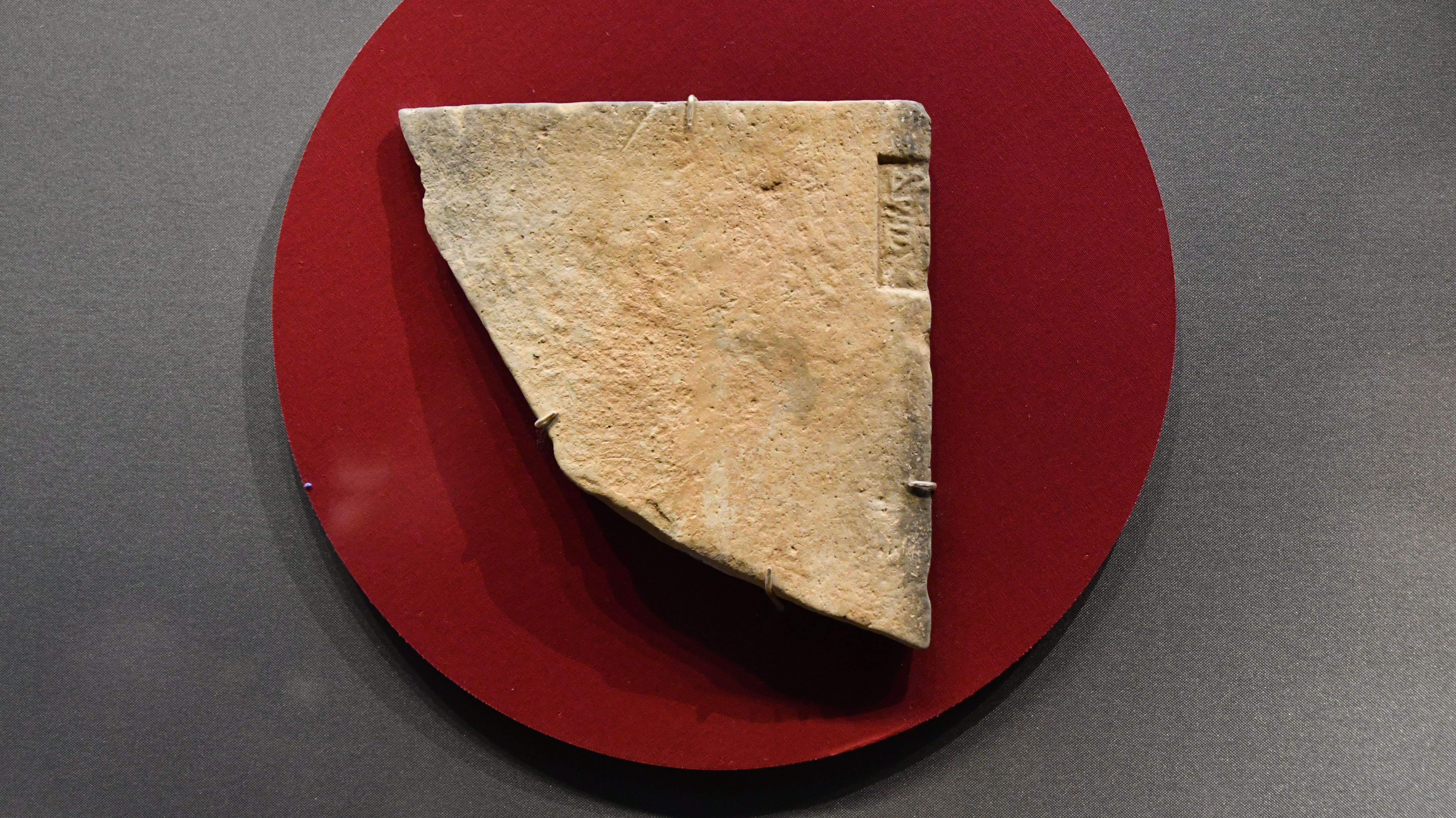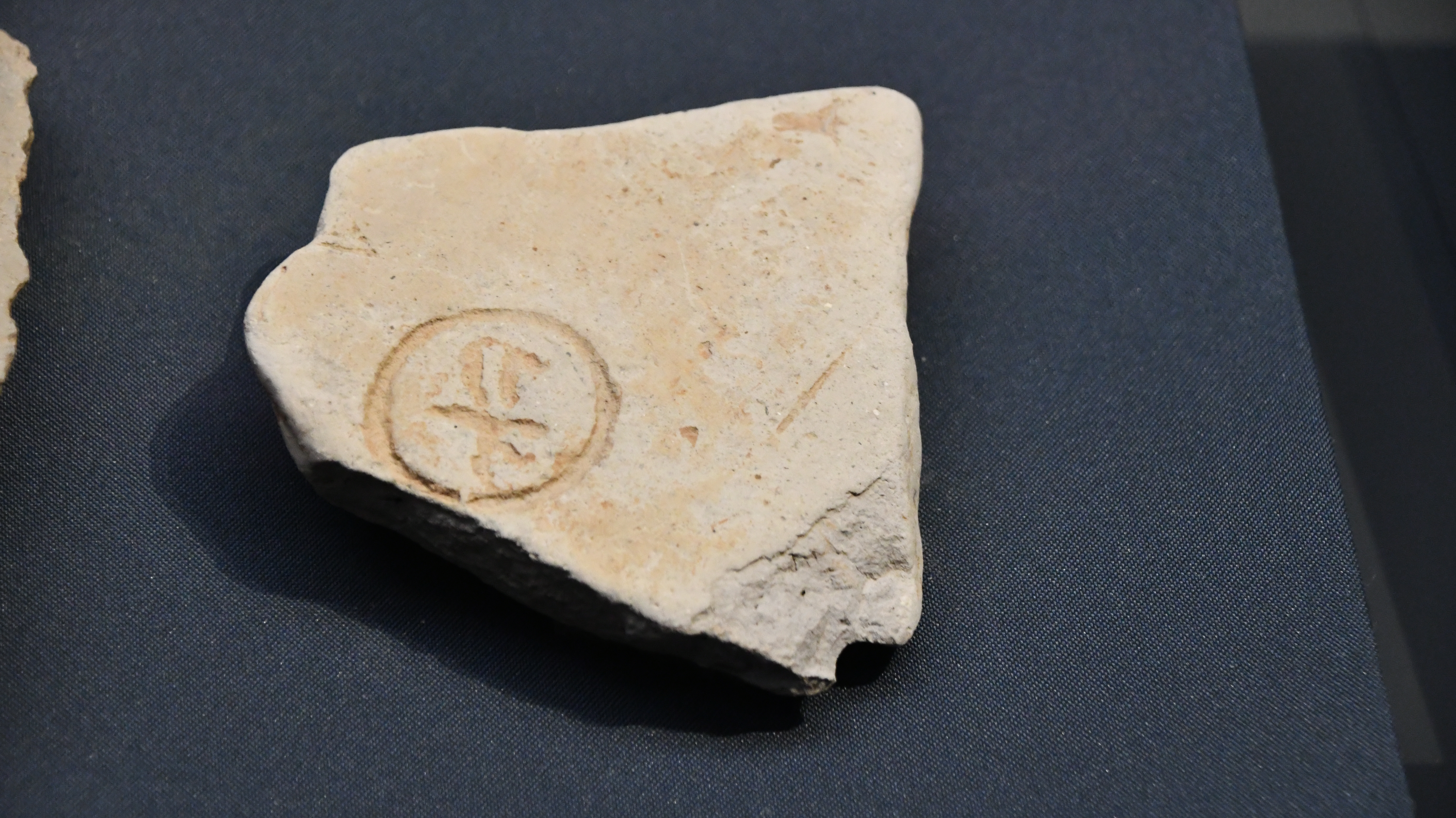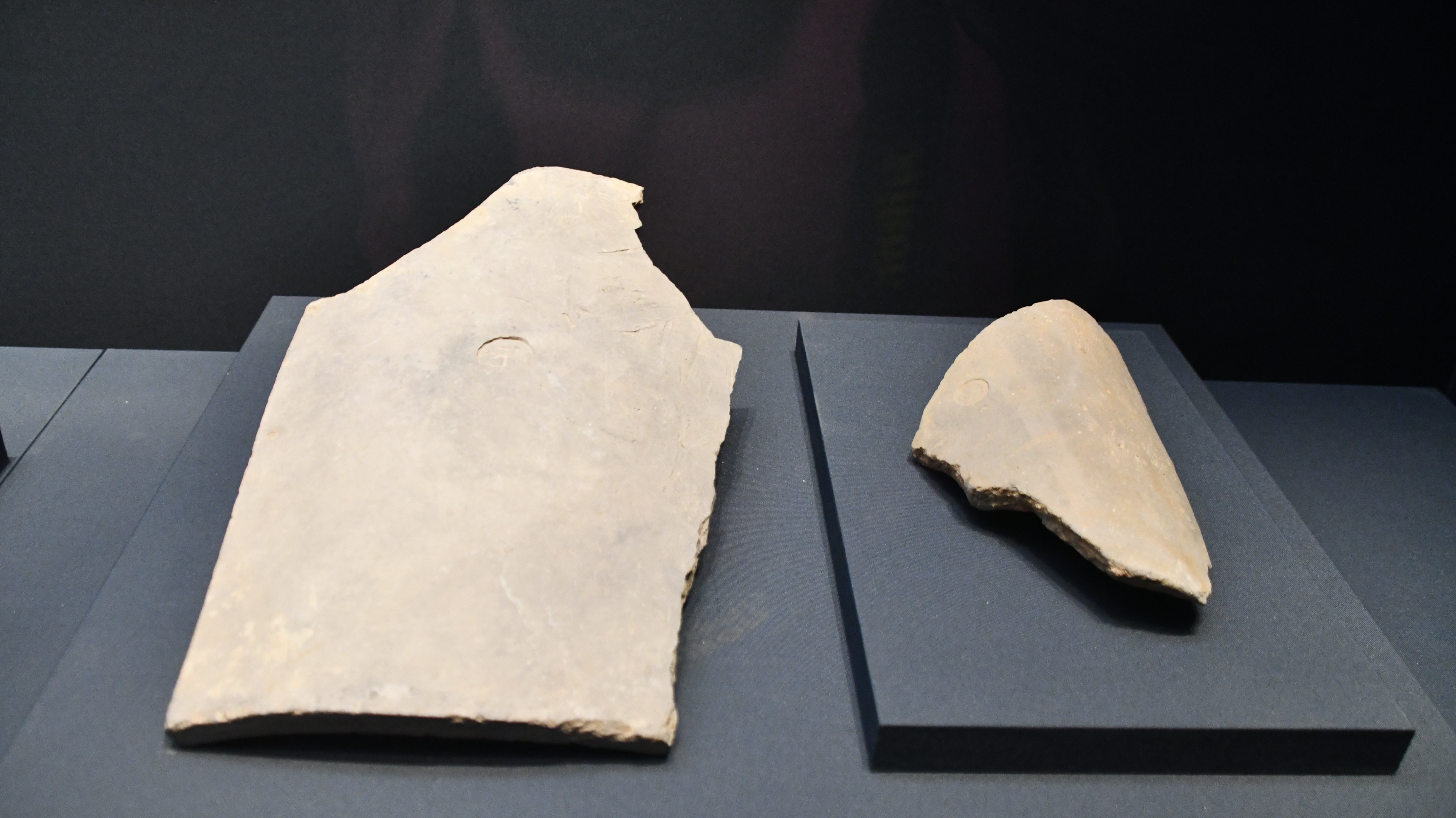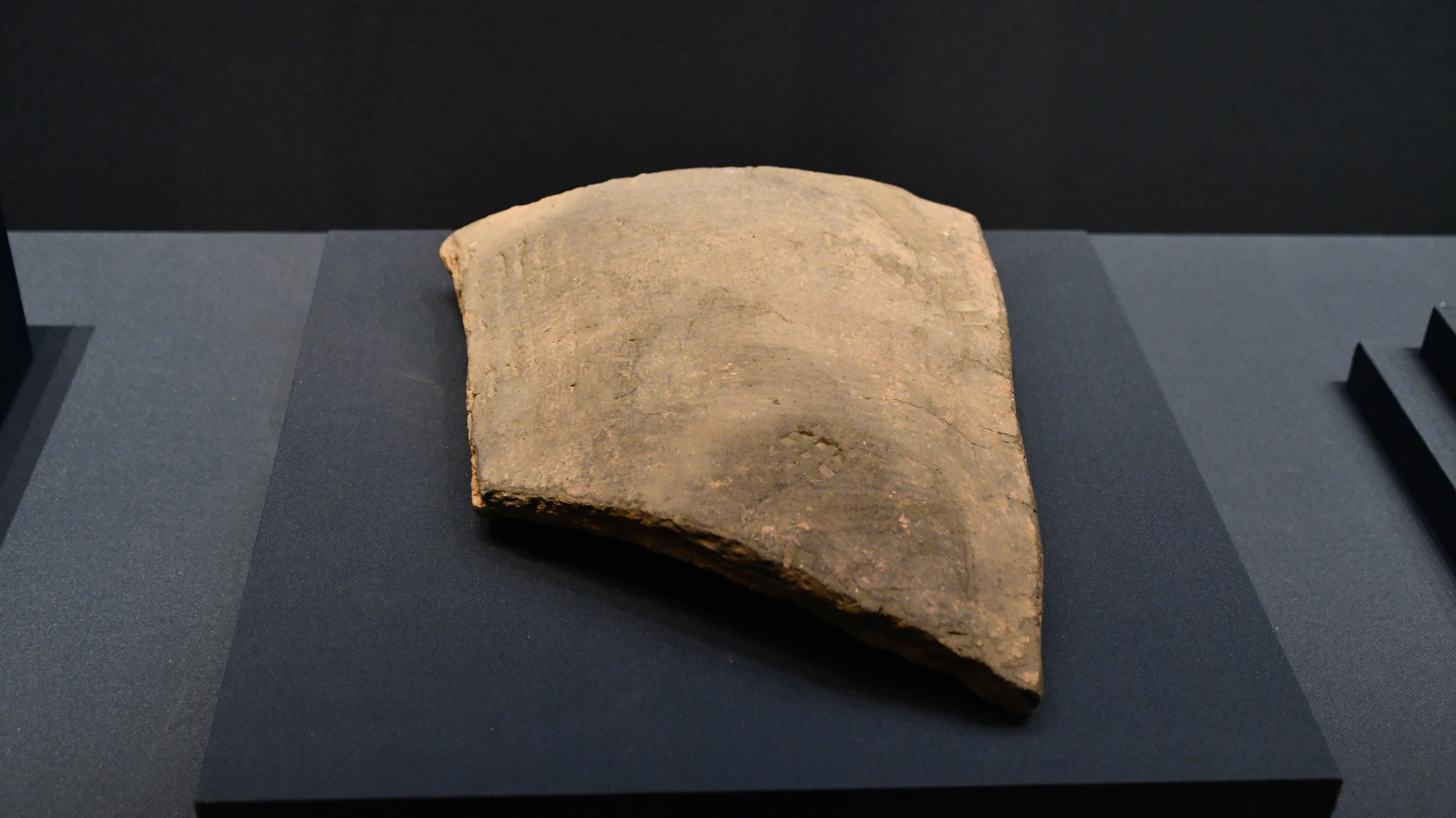 ◆ 좌: "병(丙)"이 찍힌 기와 / 백제 왕궁리유적 / 국립익산박물관