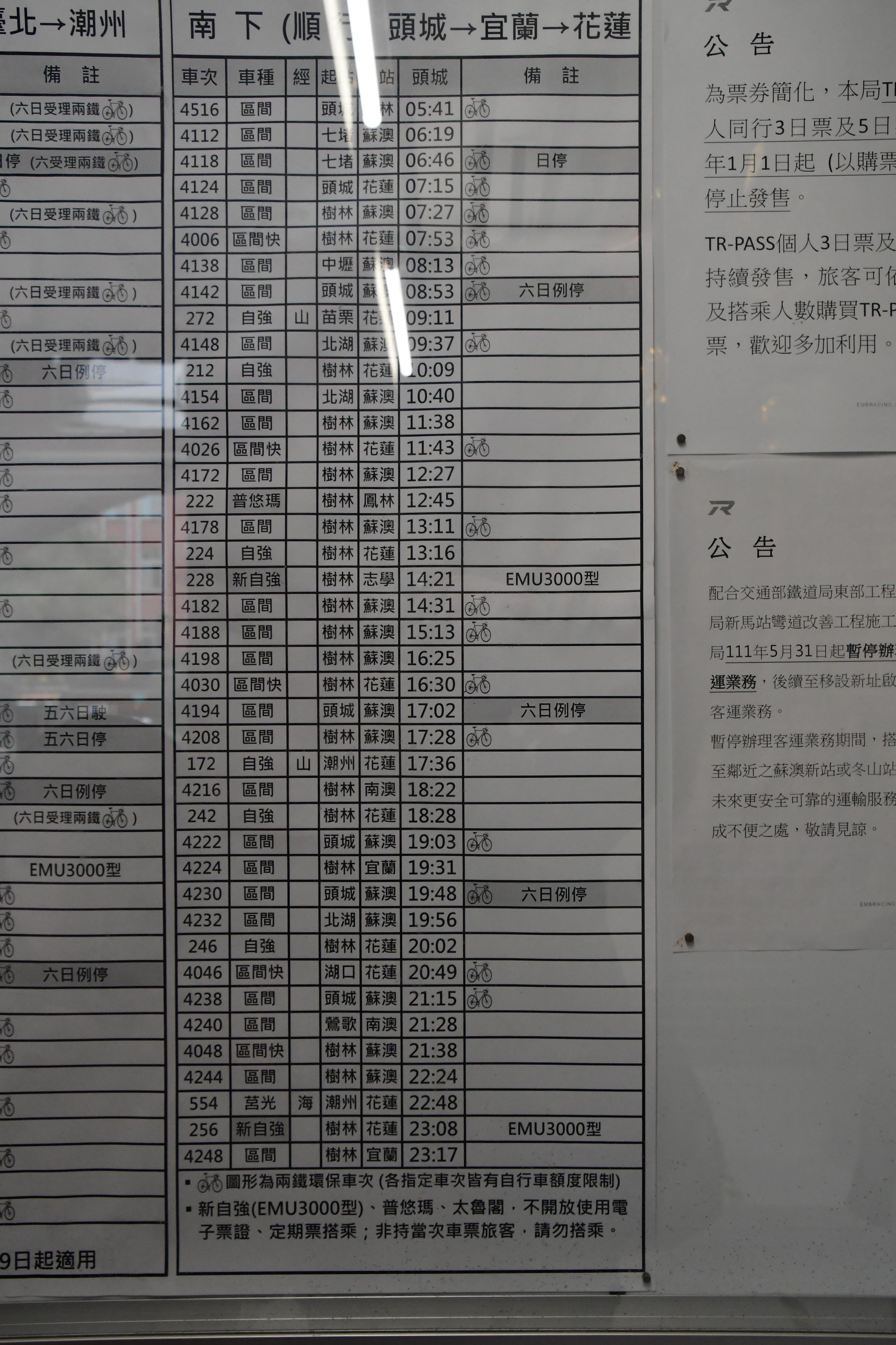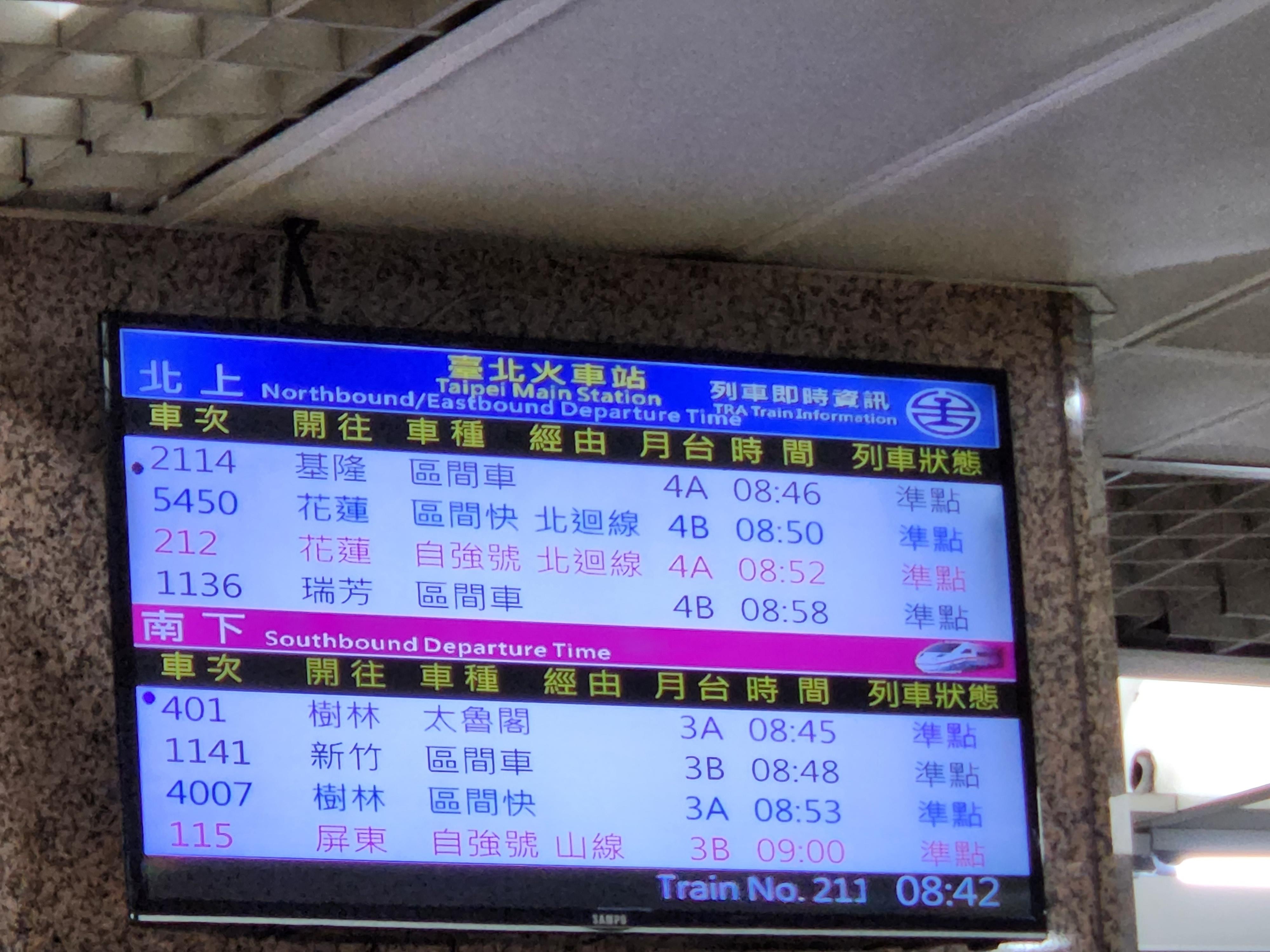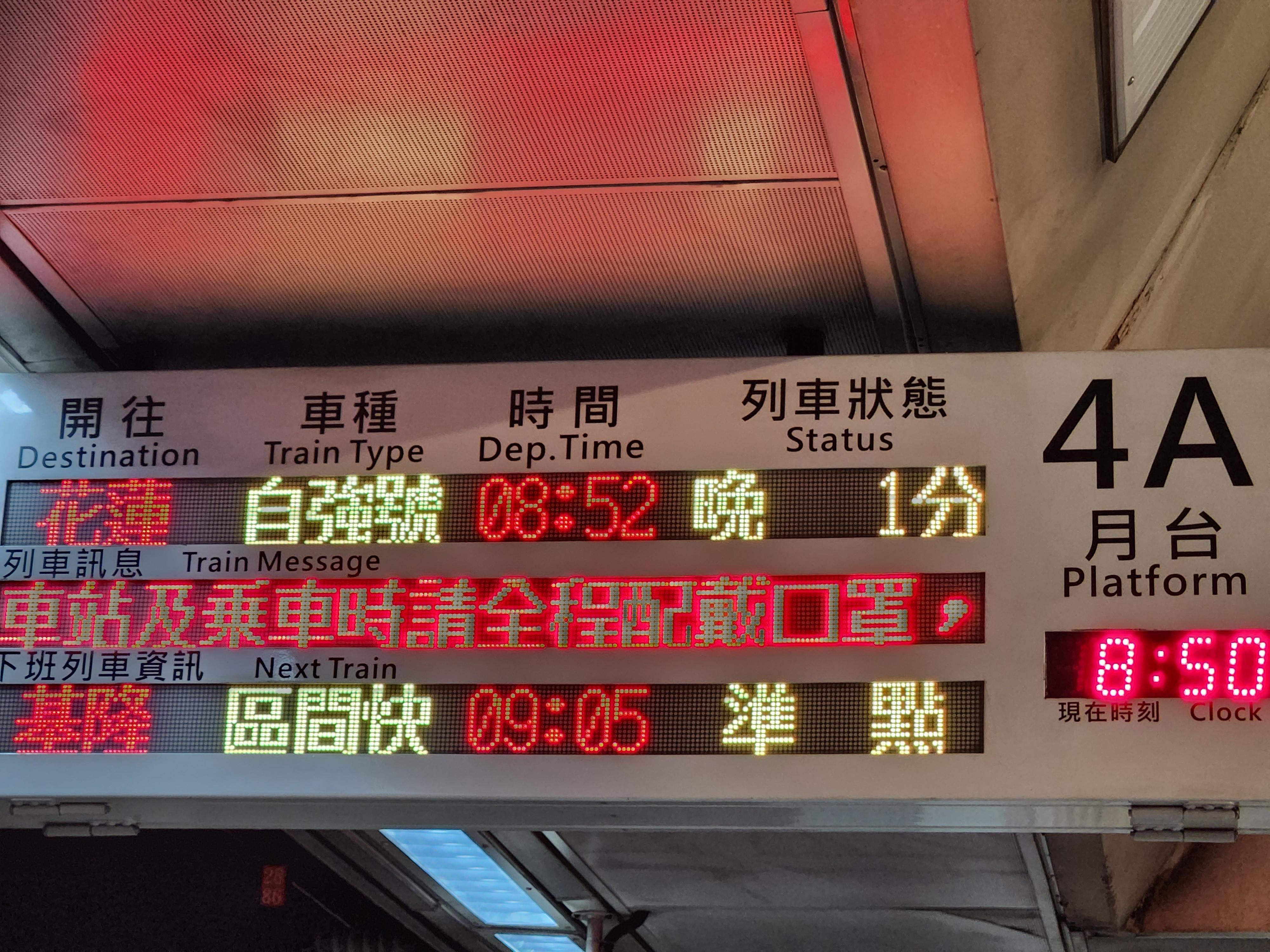 # 타이베이역에서 08시 52분 화련행 자강호로 출발.