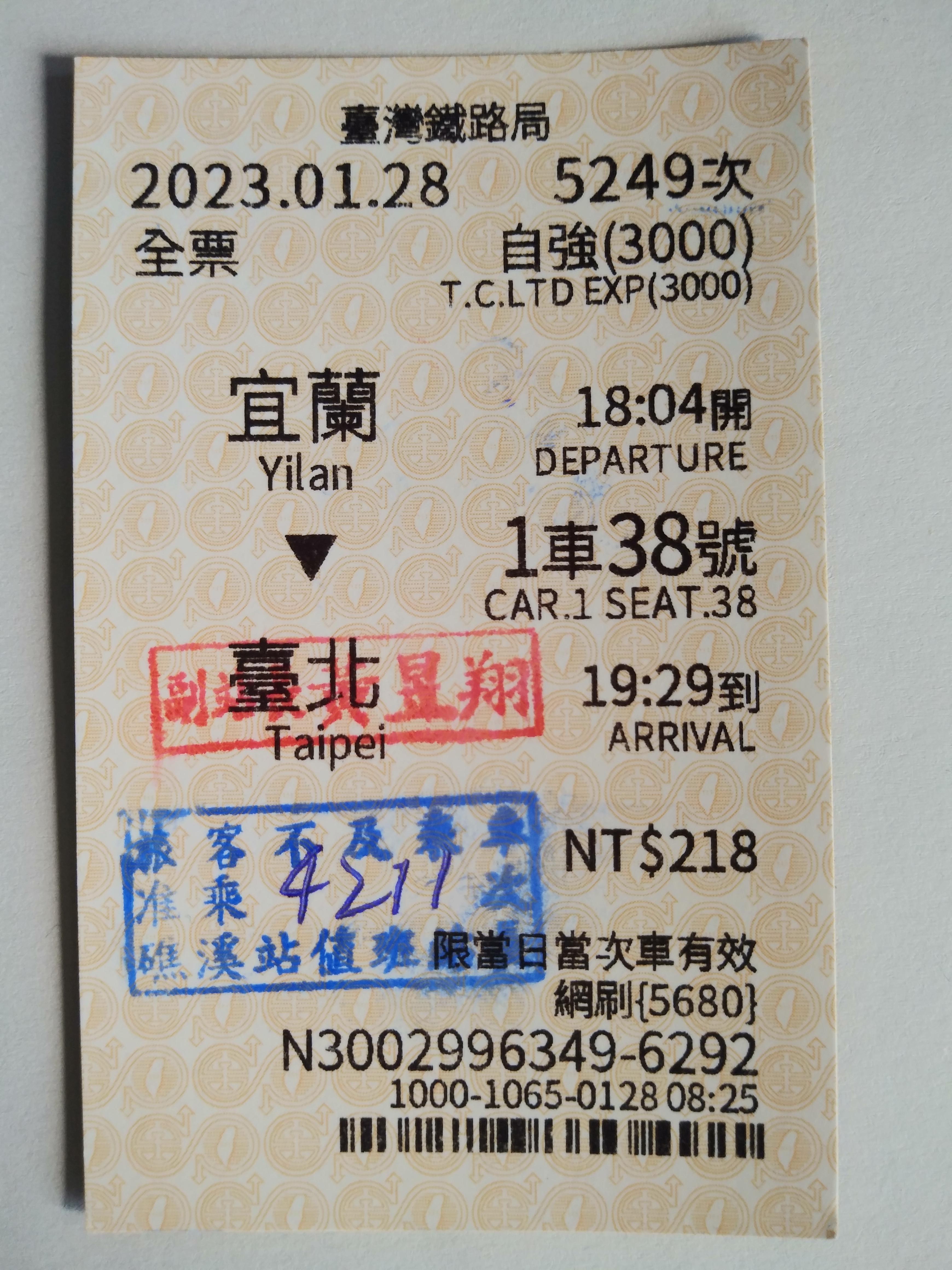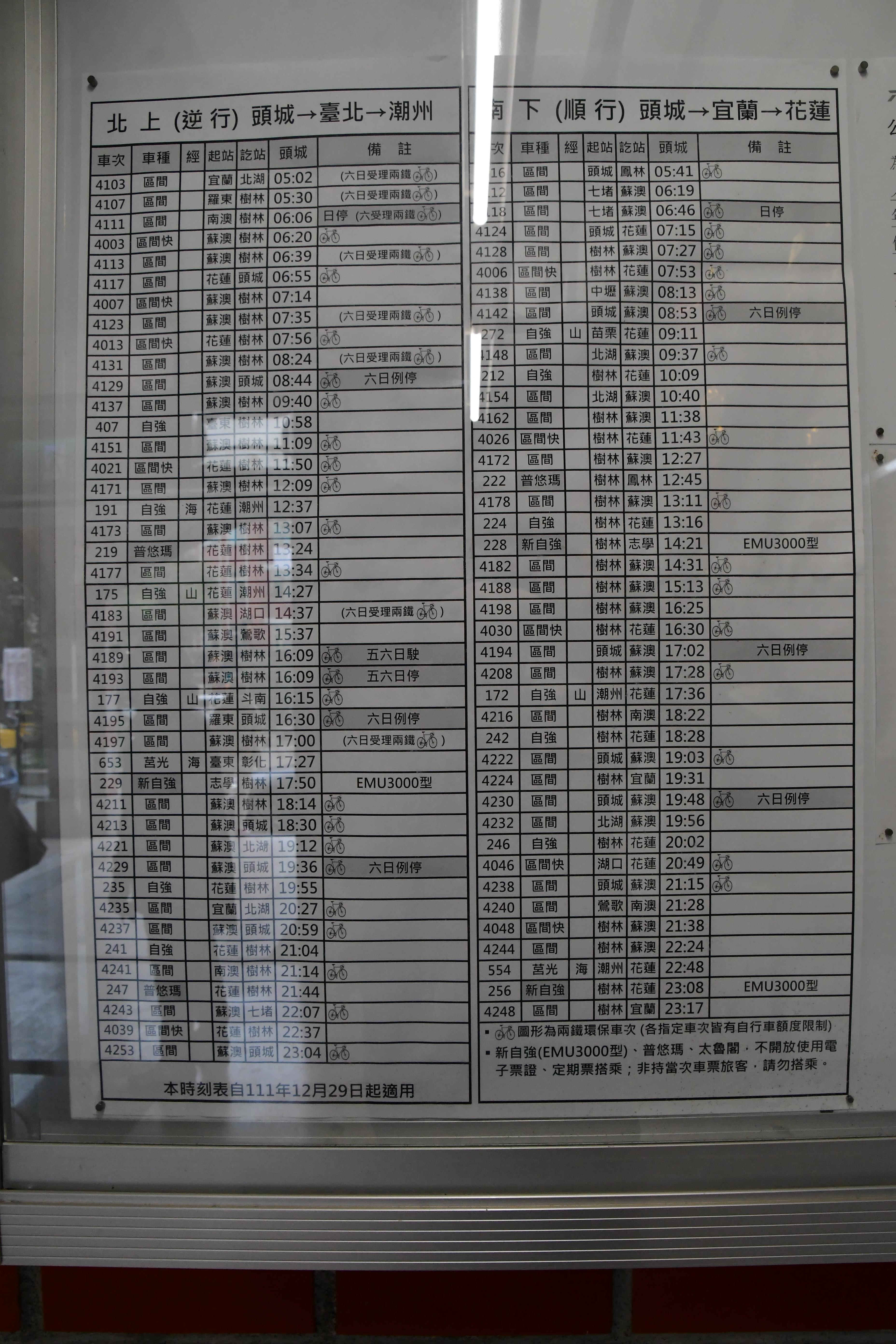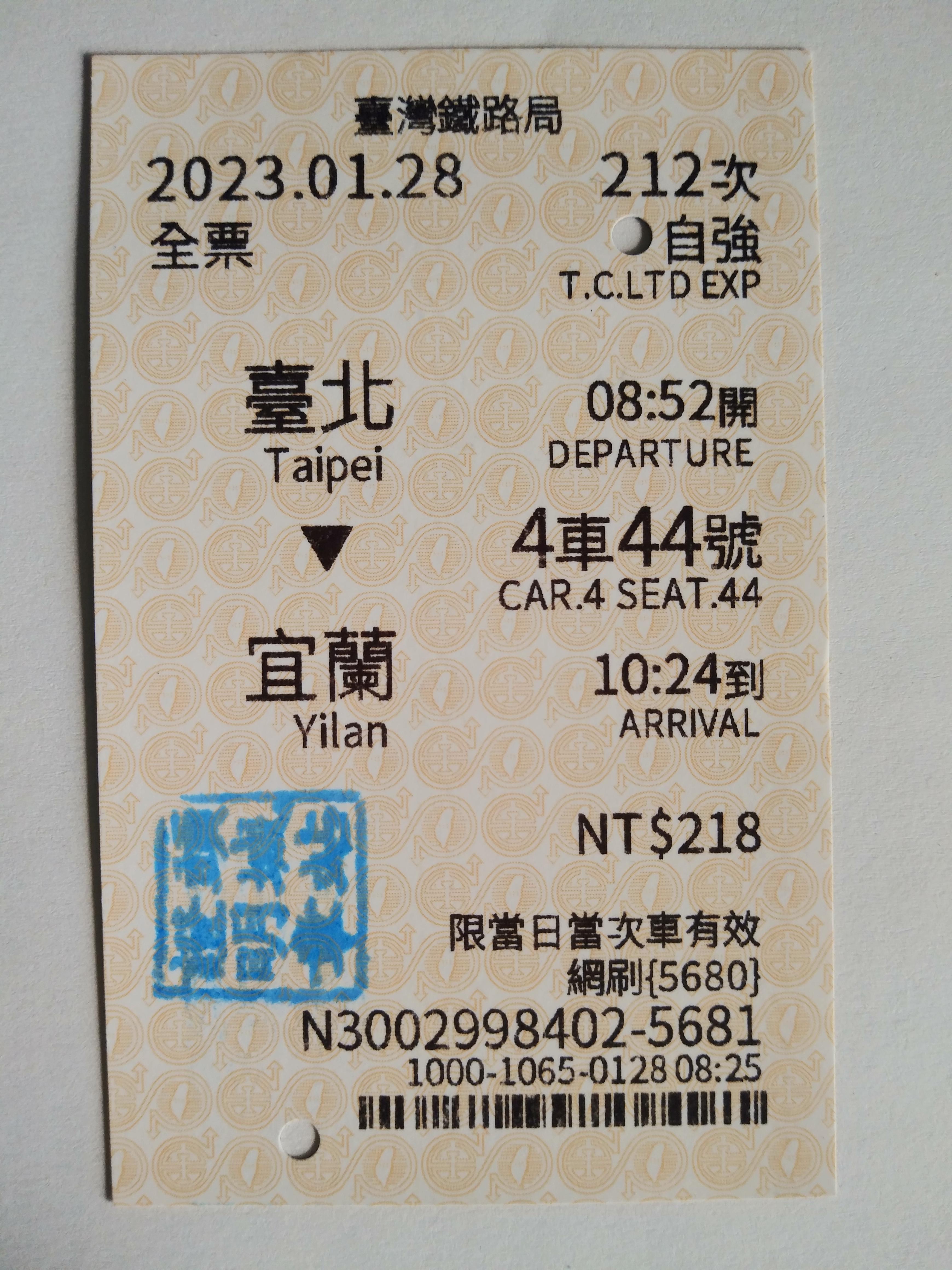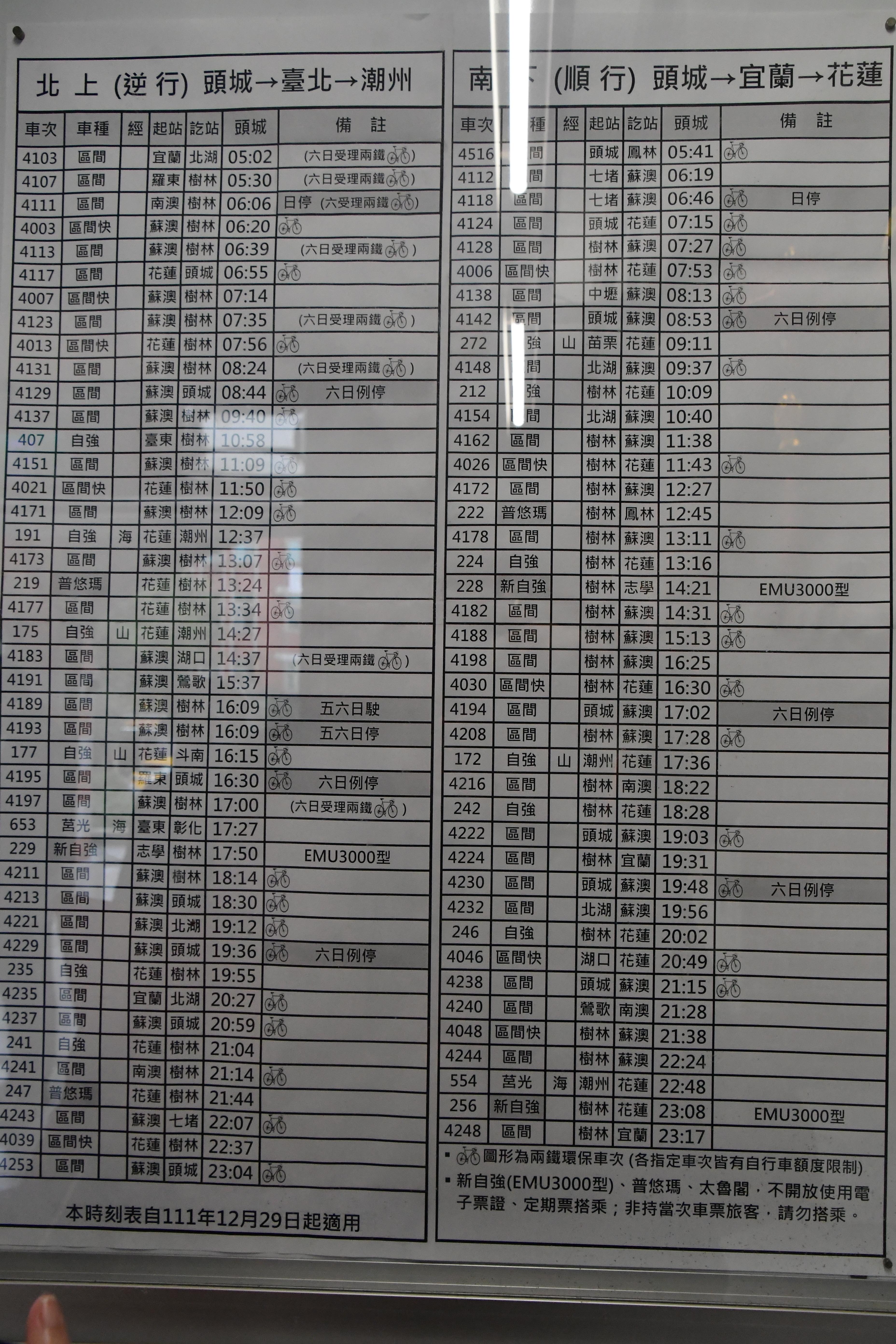 # 타이베이역에서 08시 52분 화련행 자강호로 출발.