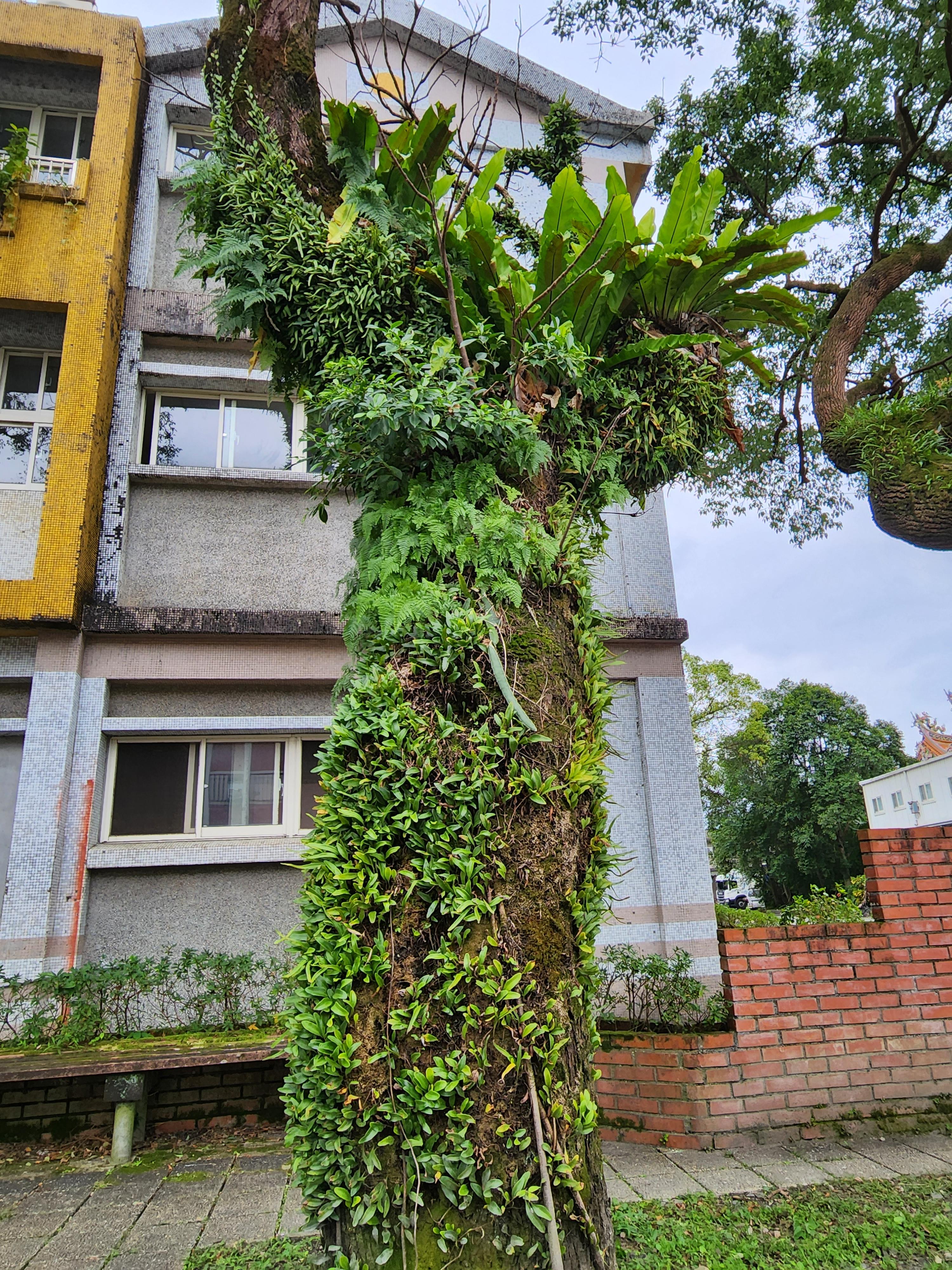 - 나무에 풀이 자라고 있다.