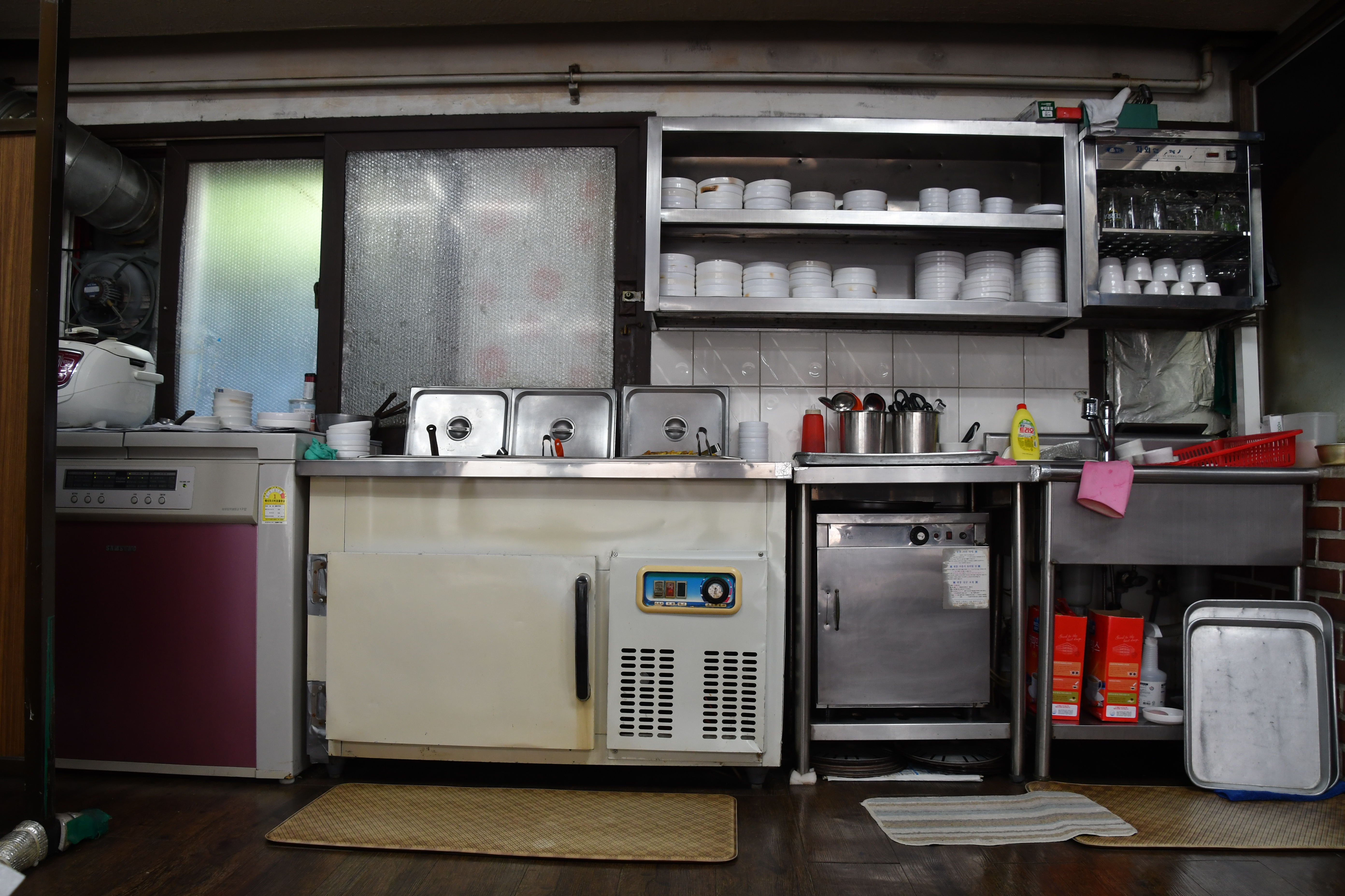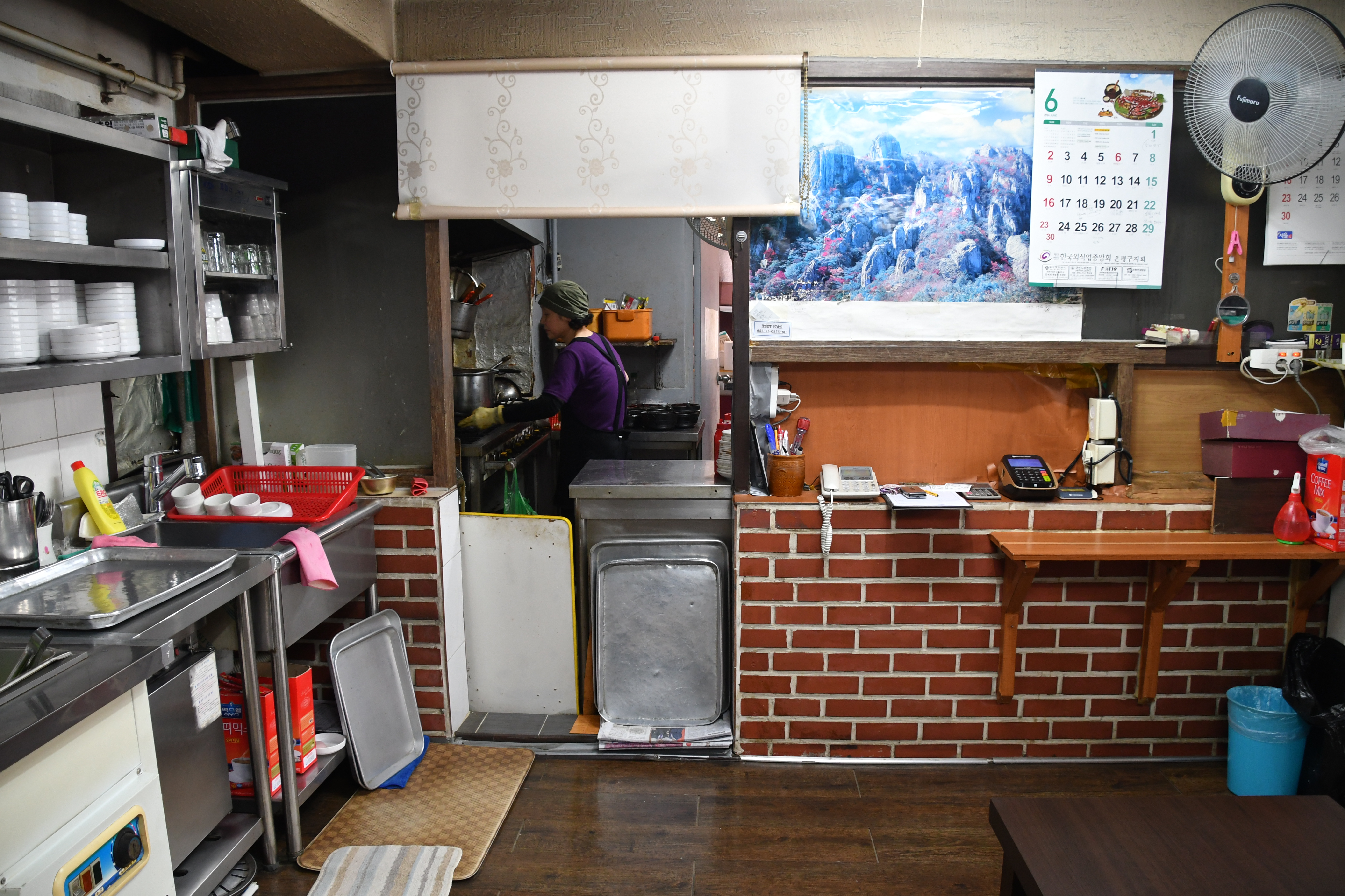 # 정면이 주방. 주방장님. 음식은 혼자 하신다.