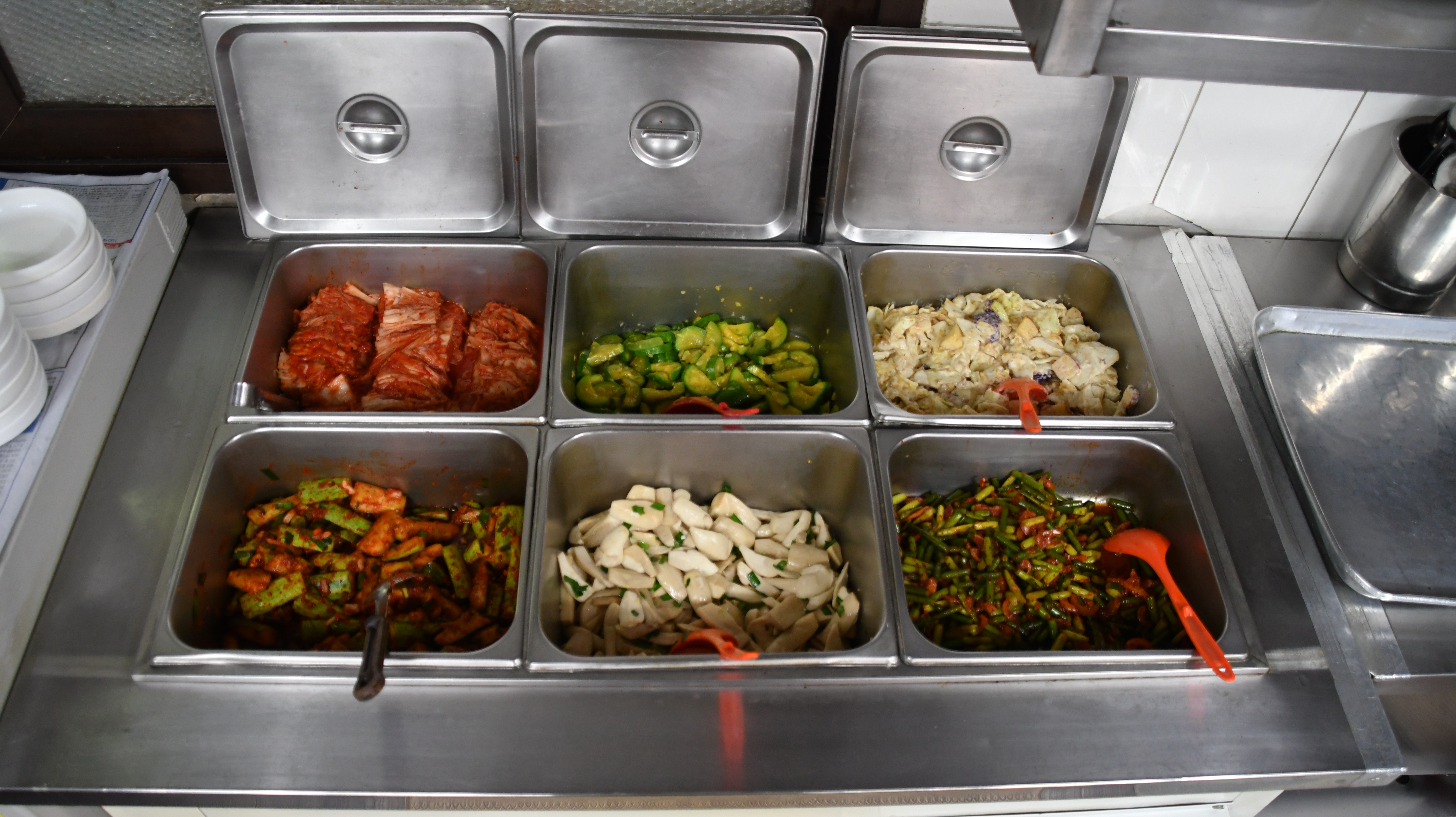 왼쪽의 밥통이 국통이다. 국물 없는 음식을 드시는 분에게 제공한다.