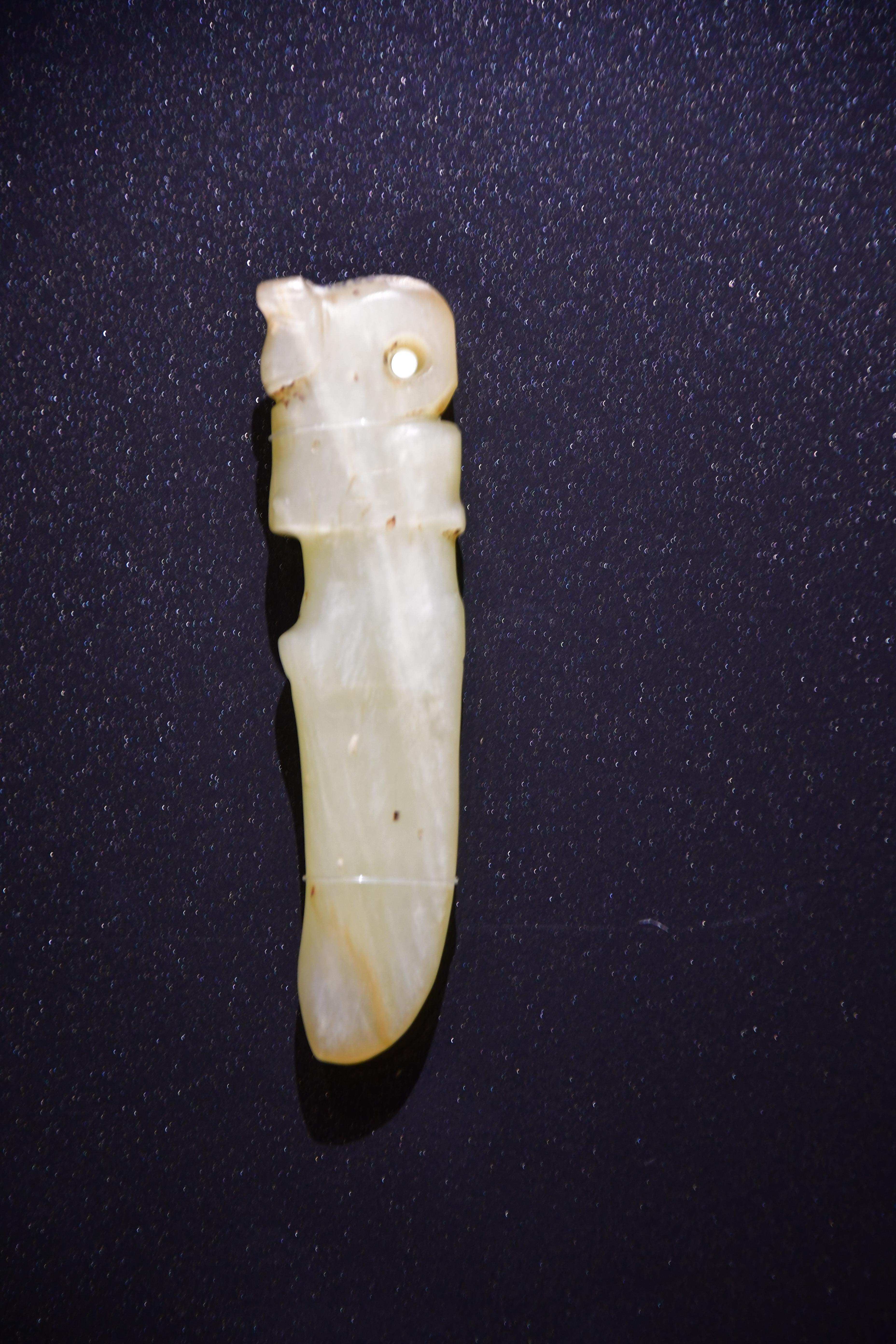 - 아장(亞長)의 무덤에서는 모두 옥으로 만든 공구 8건이 출토되었는데, <이 중에는> 송곳[觽], 조각칼, 가락바퀴 등이 포함되어 있다. 그중에서도 매듭을 푸는 데 쓰는 옥 송곳은 색이 선명하고 선이 정교하며, 촉감이 따뜻하여 가장 우수하다.