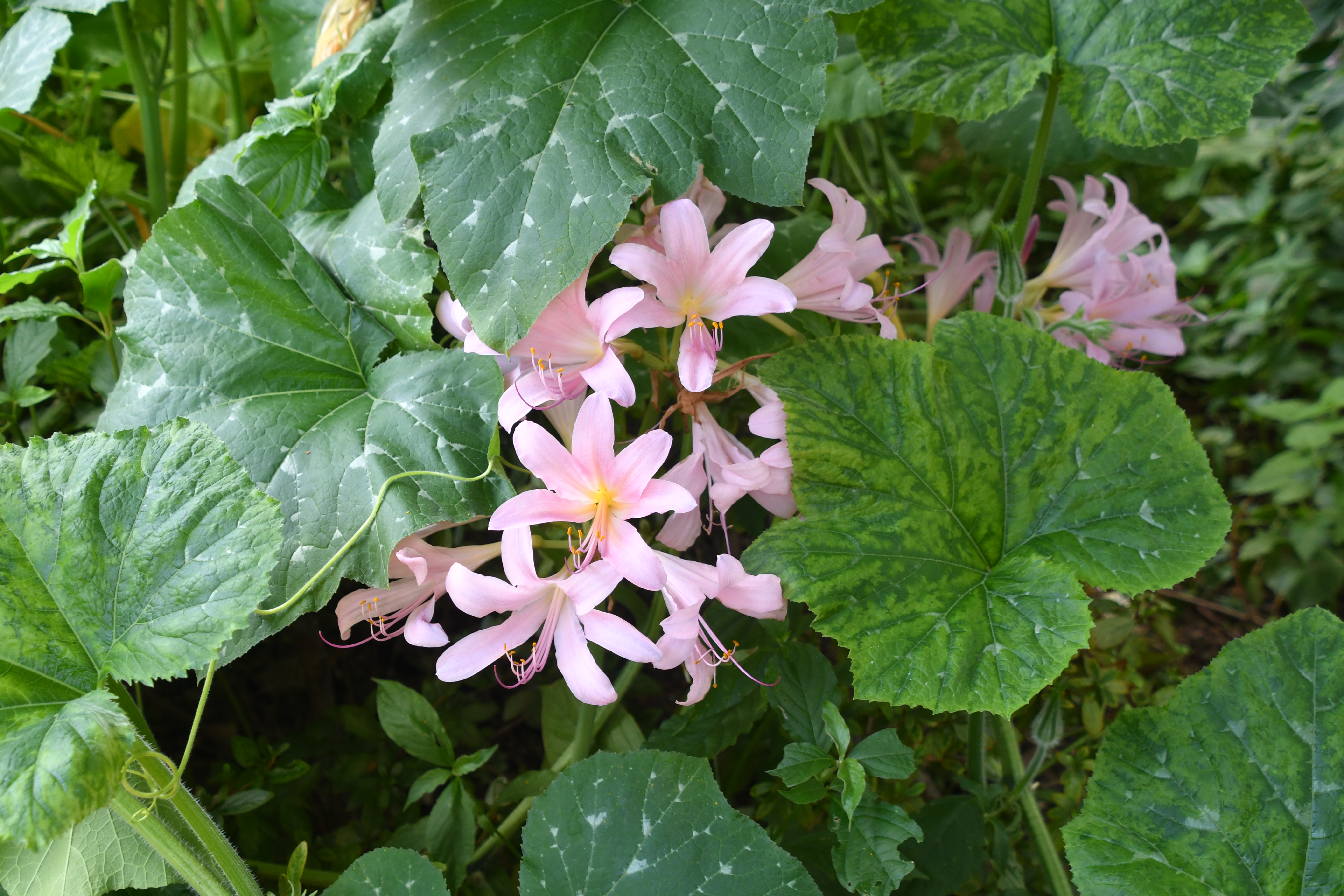 - 연녹색 호박잎과 연분홍 상사화의 색이 참 잘 어울린다.