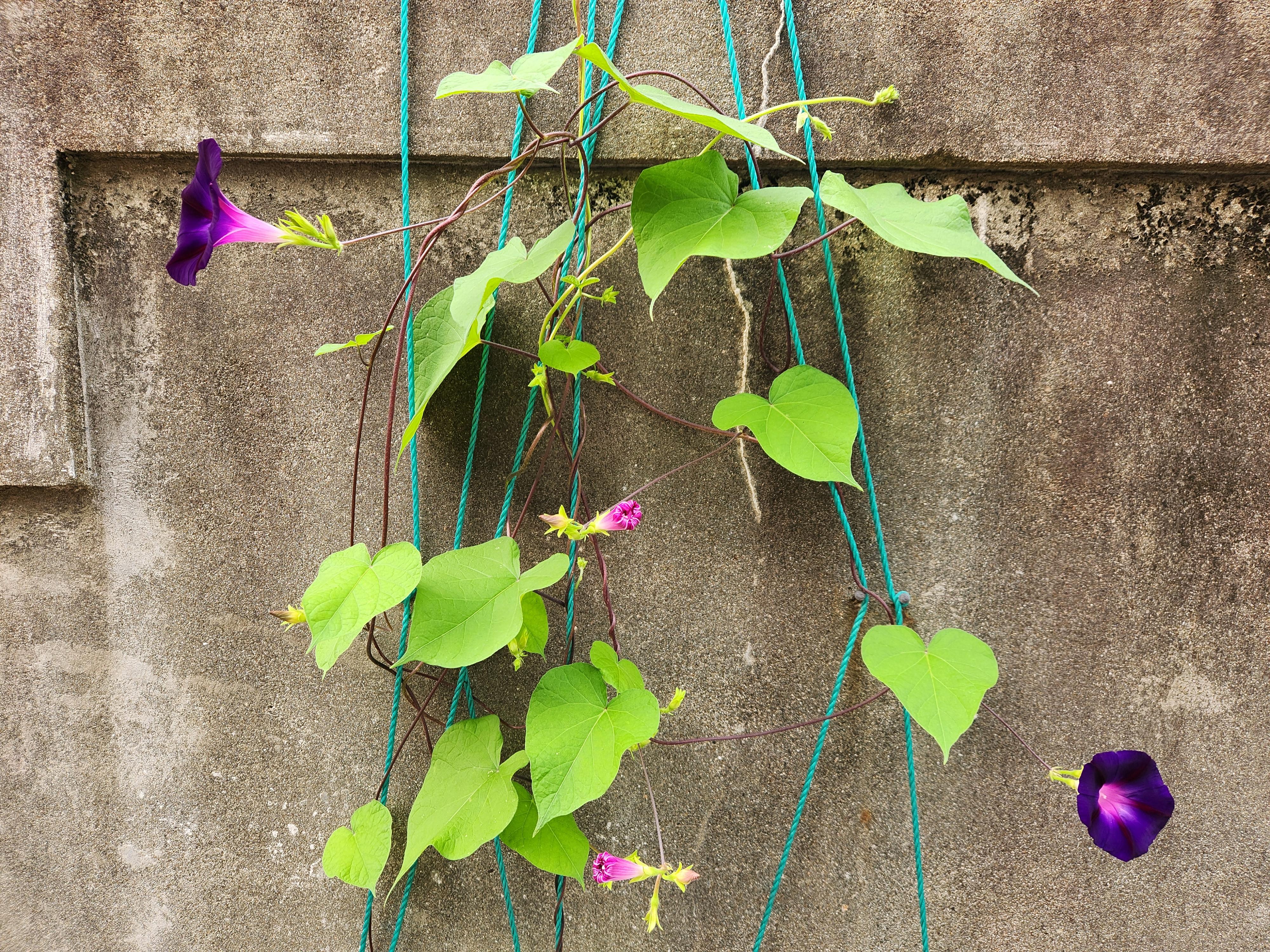 - 얼마 전 옥상에서 잡초가 무성한 화분 1개를 정리해서 1층으로 가져 왔다. 무엇을 심을까 생각하다가, 화분에 몇 종의 싹이 있기에 그냥 두었다. 한 참이 지나니 나팔꽃 한 포기가 자리고 있었다. 옆에 있는 꽃범의꼬리를 감고 올라가기에, 이참에 울타리를 만들어 주고기 했다.