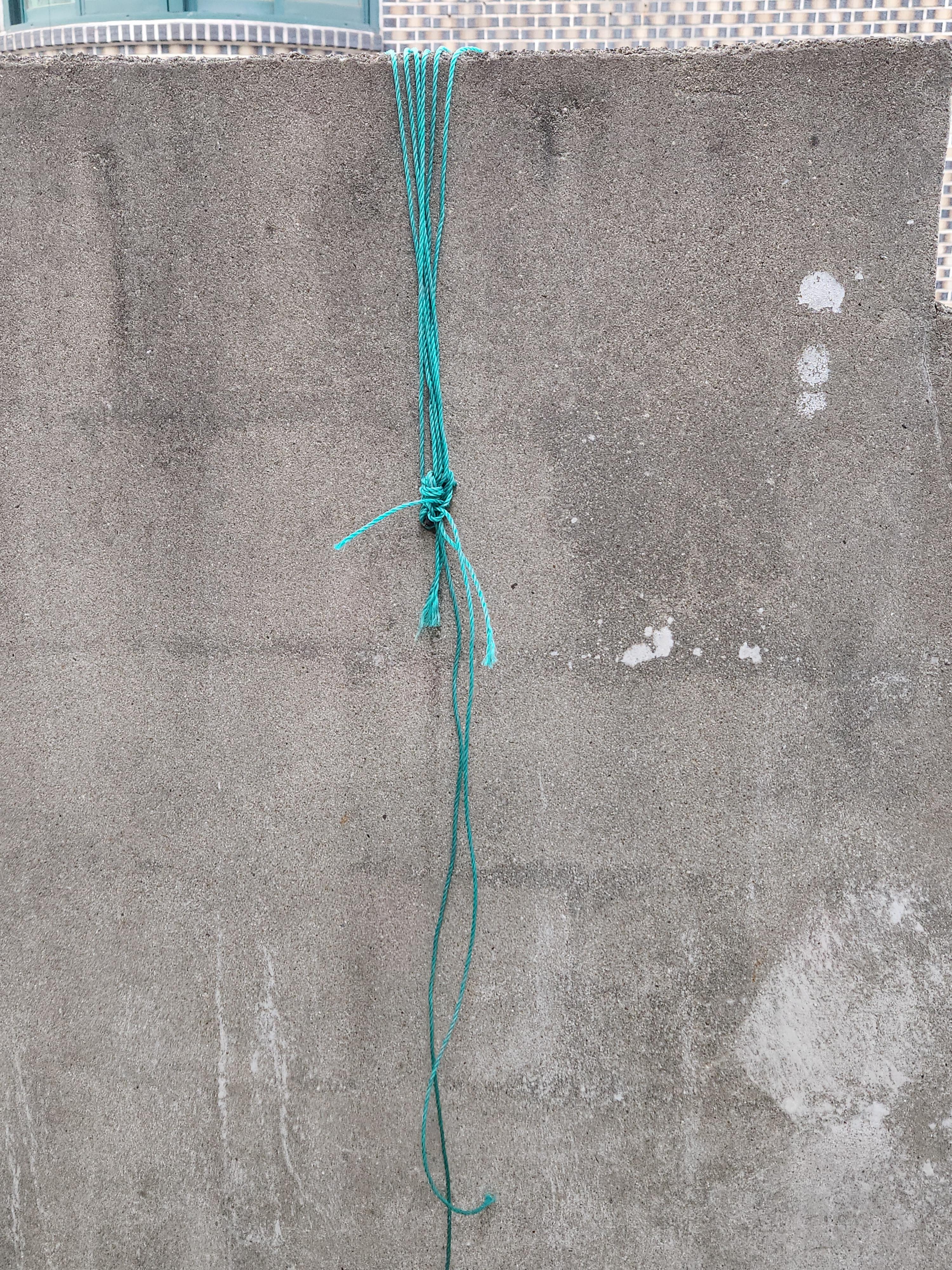 점심을 먹고 철물점에 갔더니 하필 오늘은 개인사정으로 15시 이후에 문을 연다고 해서, 5구역에서 폐품을 찾기로 했다. 담장에 쓰던 철제를 줍고 한참을 오는데 감나무에 나이론 줄이 감겨져 있었다. 손으로 당기니 긴 줄이 떨어졌다. 장장 6가닥이 묶여 있었다. 긴 줄 4개, 짧은 줄 2개. 마침 담장에도 앞에는 4개, 뒤에는 2개의 못이 박혀 있었다. 뒷편에 6개의 줄을 묶고 앞으로 던져, 철제에 사이사이 묶고, 긴 줄을 다시 뒷로 넘겨 못에 고정했다.