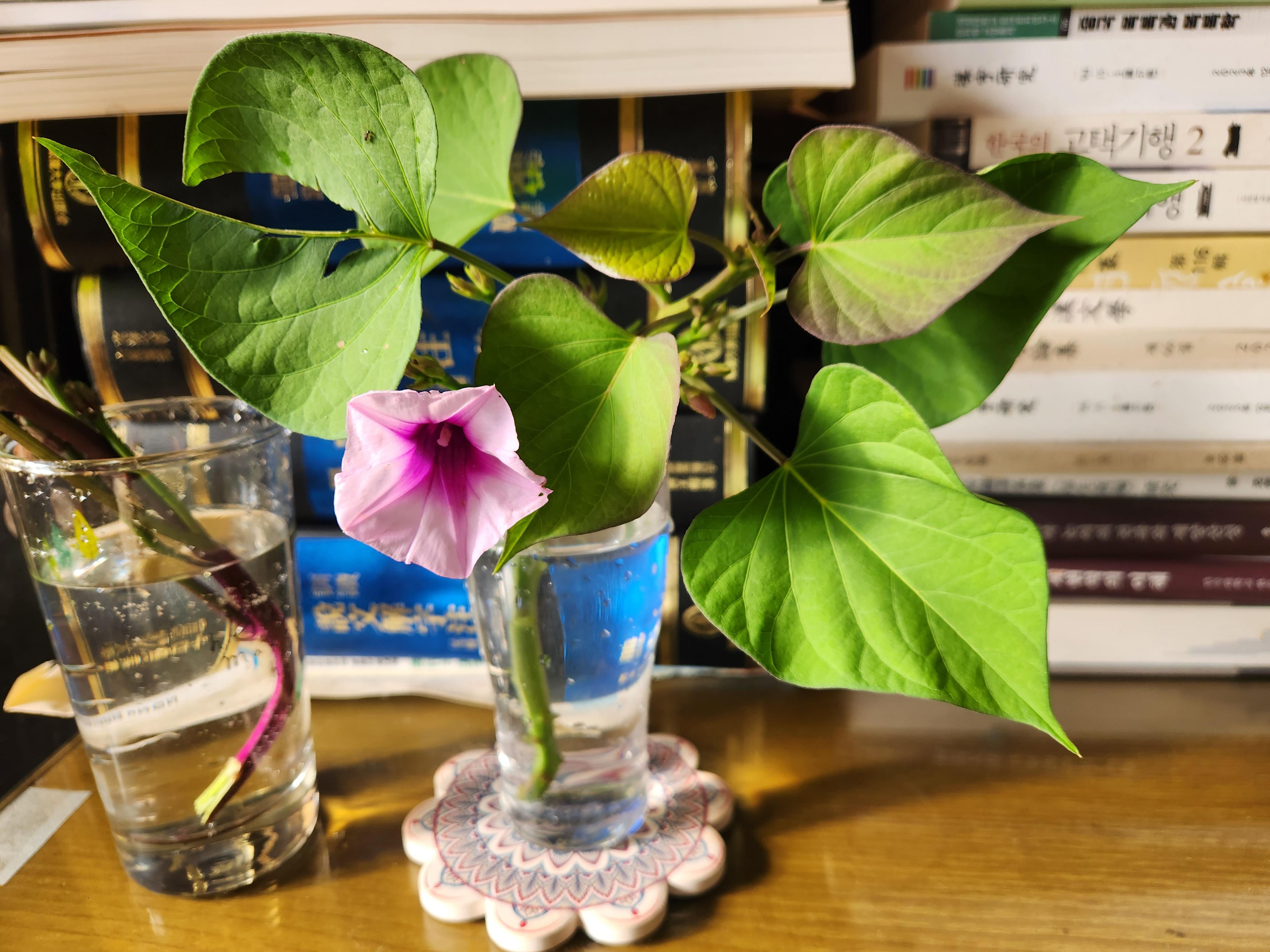 - 혼자 보기 아까워 안 핀 꽃몽오리 1개가 더 있을 때 시집보냈다.