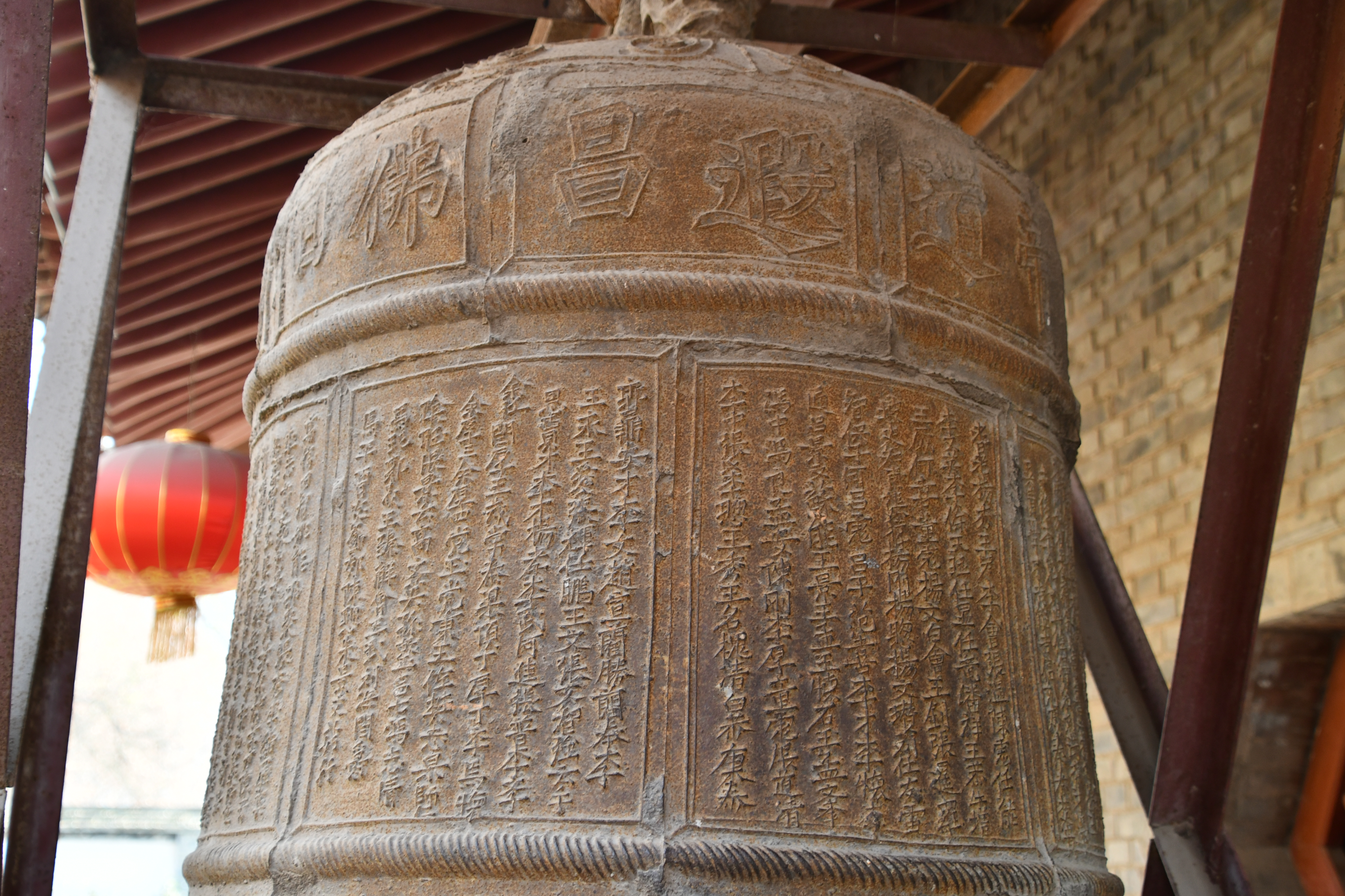 청나라. 벽돌과 나무로 지어진 이 건축물은 겹처마 팔작지붕을 특징으로 하며, 시간을 알리고 불교 의식을 거행하는 데 사용되었다. 명나라와 청나라 시대에 "안탑 아침 종"은 관중 8경 중 하나로 지정되었다.