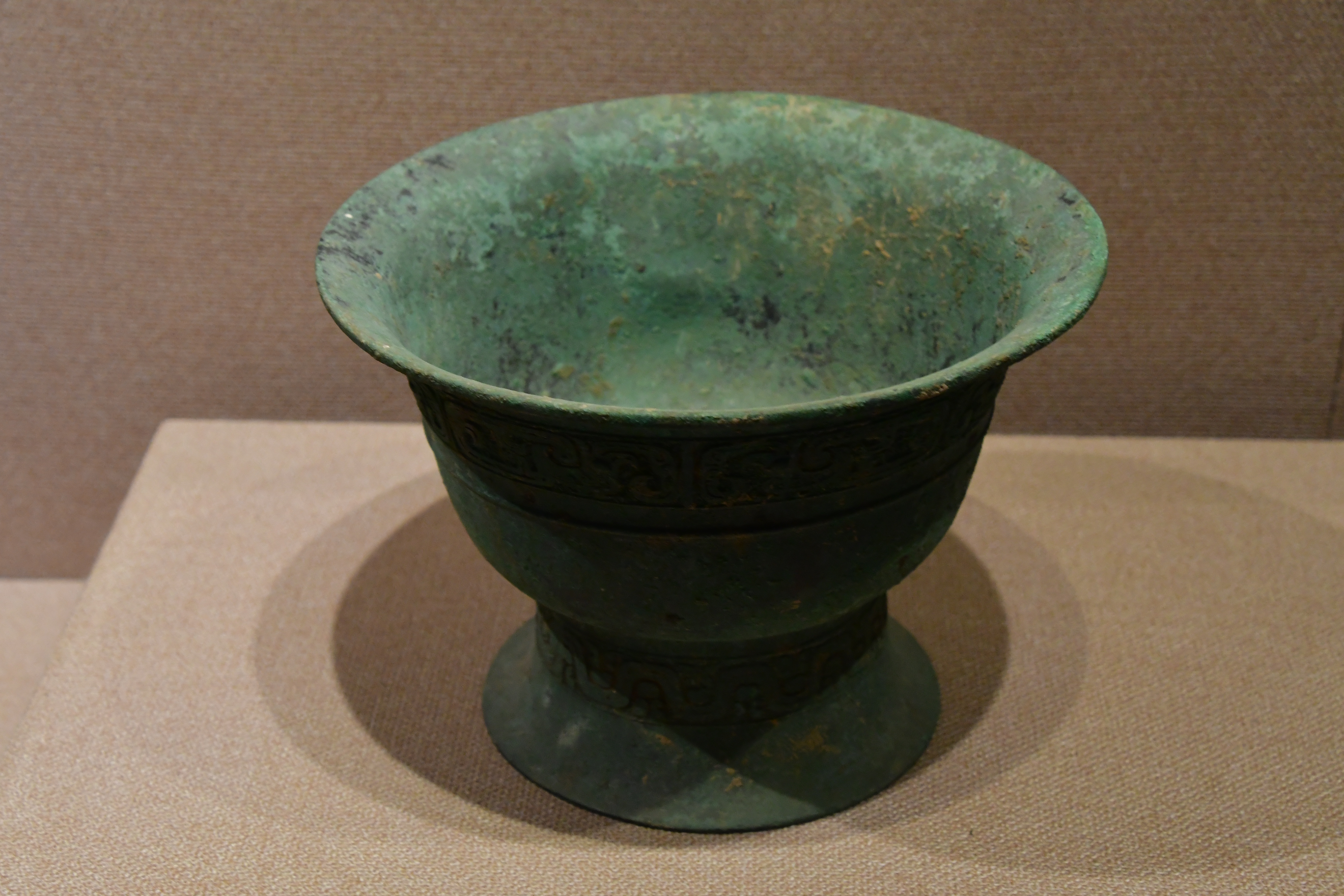 상(商)대에서 서주(西周) 초기까지의 청동기 문양은 복잡하고 추상적이며, 사납고 과장된 형태를 띠었다. 이는 <당시 > 사람들의 귀신 숭배와 짙은 종교적 사상과 밀접한 관련이 있다. 주(周) 사람들은 비록 은(殷)나라의 기법을 계승했으나, 청동기를 주조하는 이유가 조상 제사에 사용하며 선조의 덕을 기리는 데 중점을 두었다. 그 결과 서주 중기 이후에는, 신비롭고 기괴한 문양 대신 자유롭게 이어진 물결무늬, 비늘띠무늬 등이 사용되어, 한층 밝고 생동감 있는 분위기를 보였다. 춘추·전국 시대에는 휘감긴 용무늬, 얽힌 이무기무늬 가 주류를 이루었다. 이 시기의 문양들은 인몰법(印模法: 주형 찍기 방식)으로 주조한 문식이 천편일률적이어서 가벼워 얕은 인상을 주었다. 비록 이 시기에 금·은 상감, 선각 등의 장식 기법이 있었으나 마치 석양에 반사된 것처럼, 의연하게 청동기가 몰락으로 향하는 흐름을 되돌리기에는 역부족이었다.