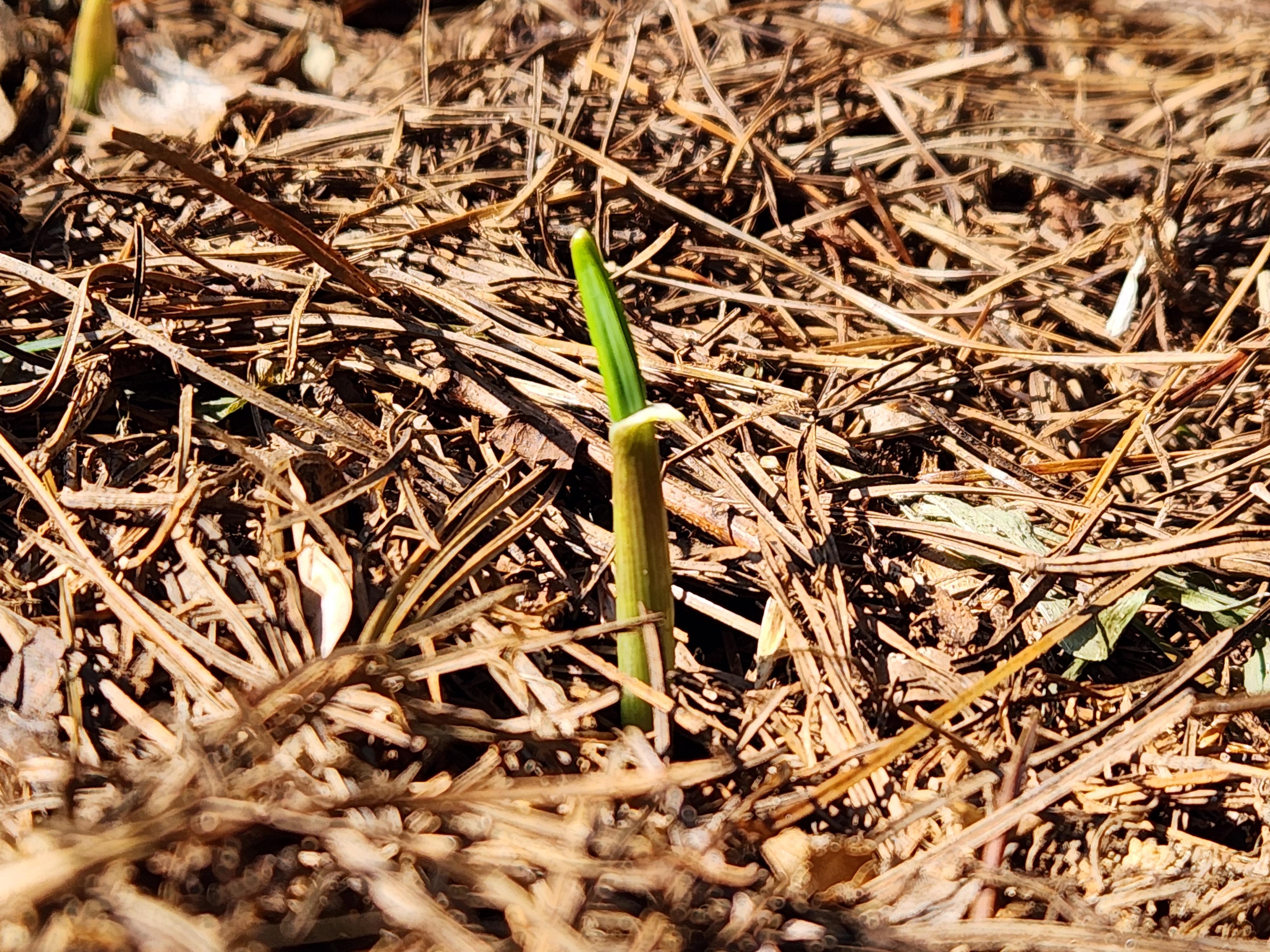 ◆ 지난주 심은 마늘이 이불을 덮은 지 1주일만에 싹이 올라왔다.
