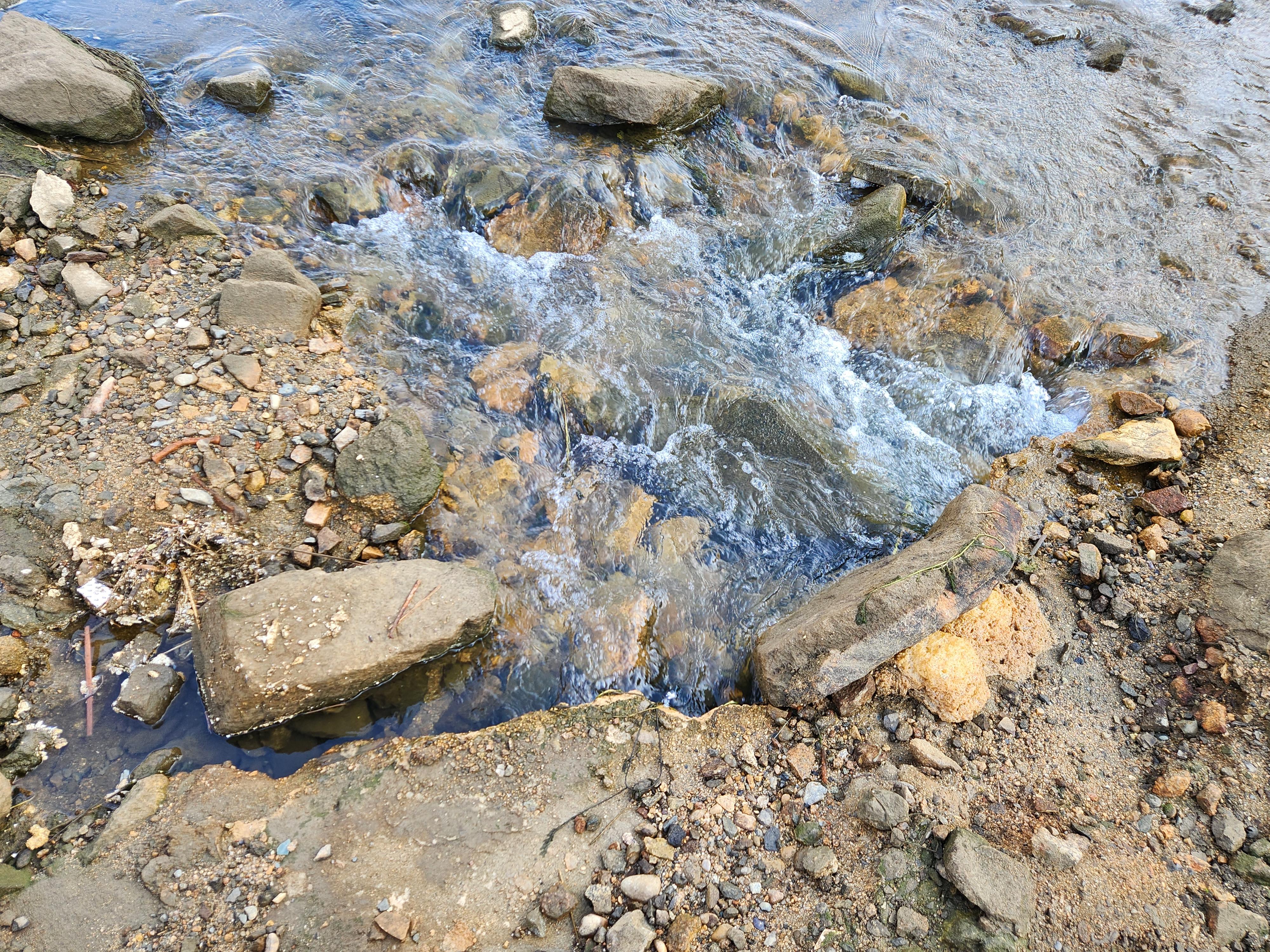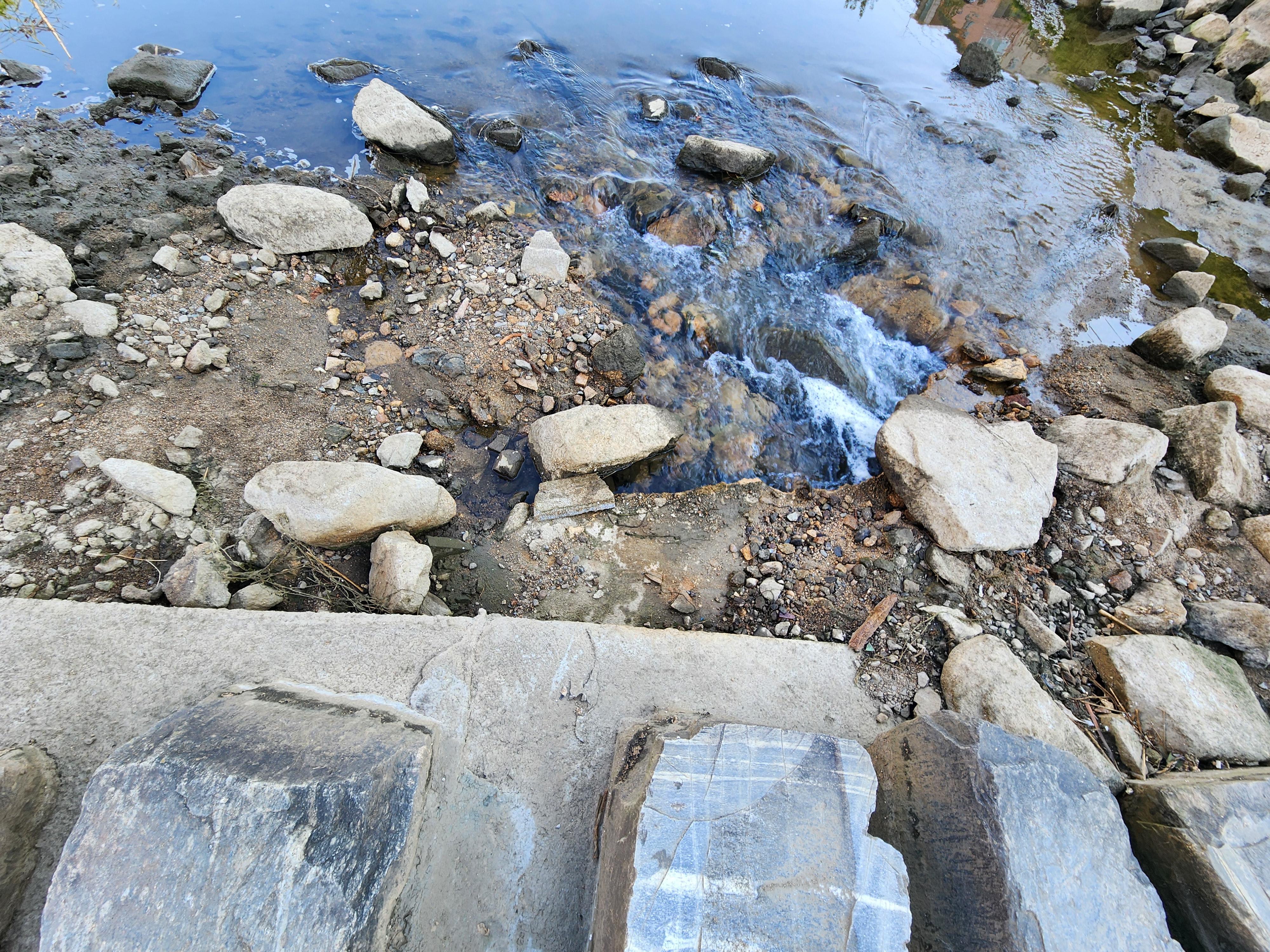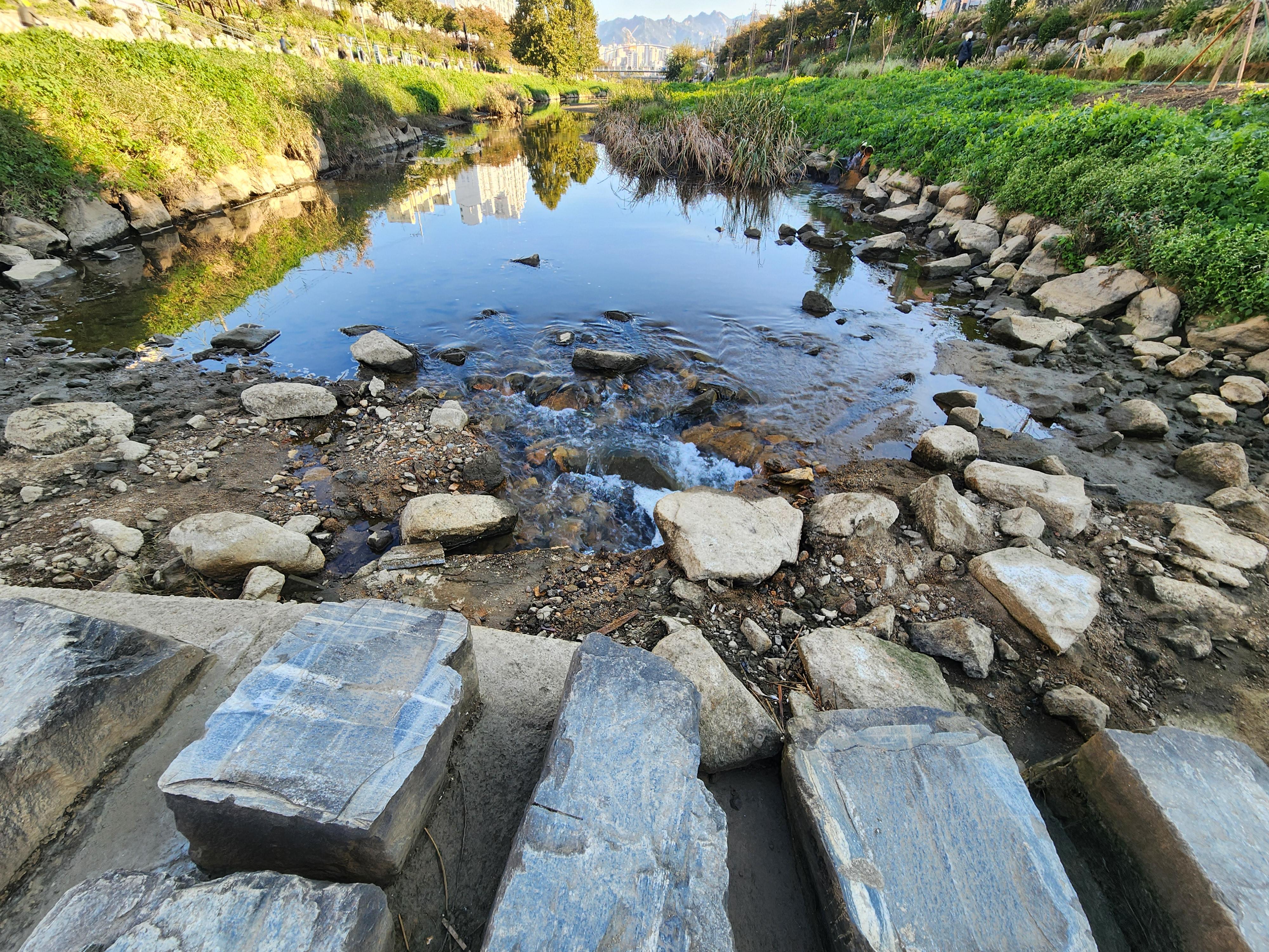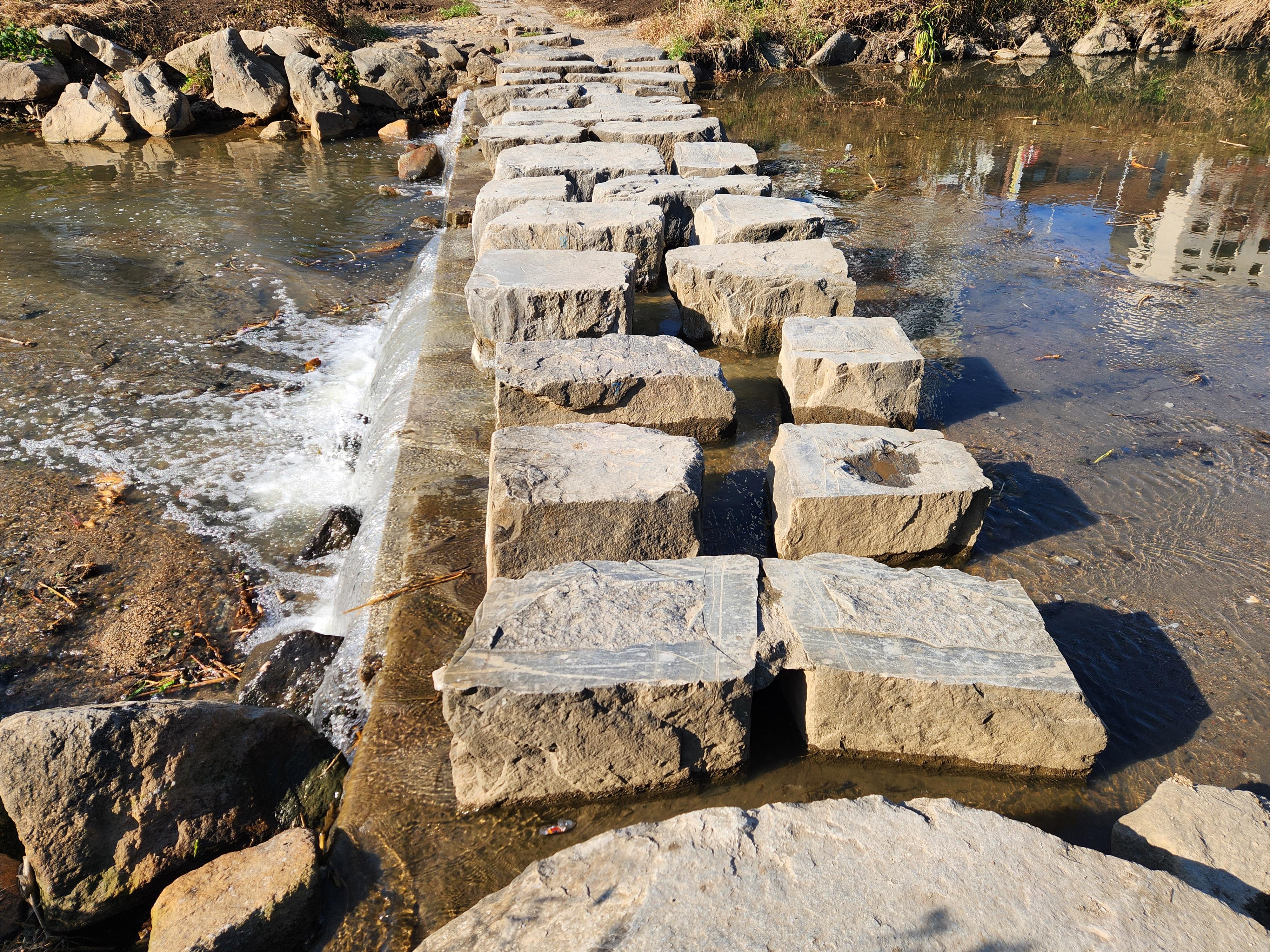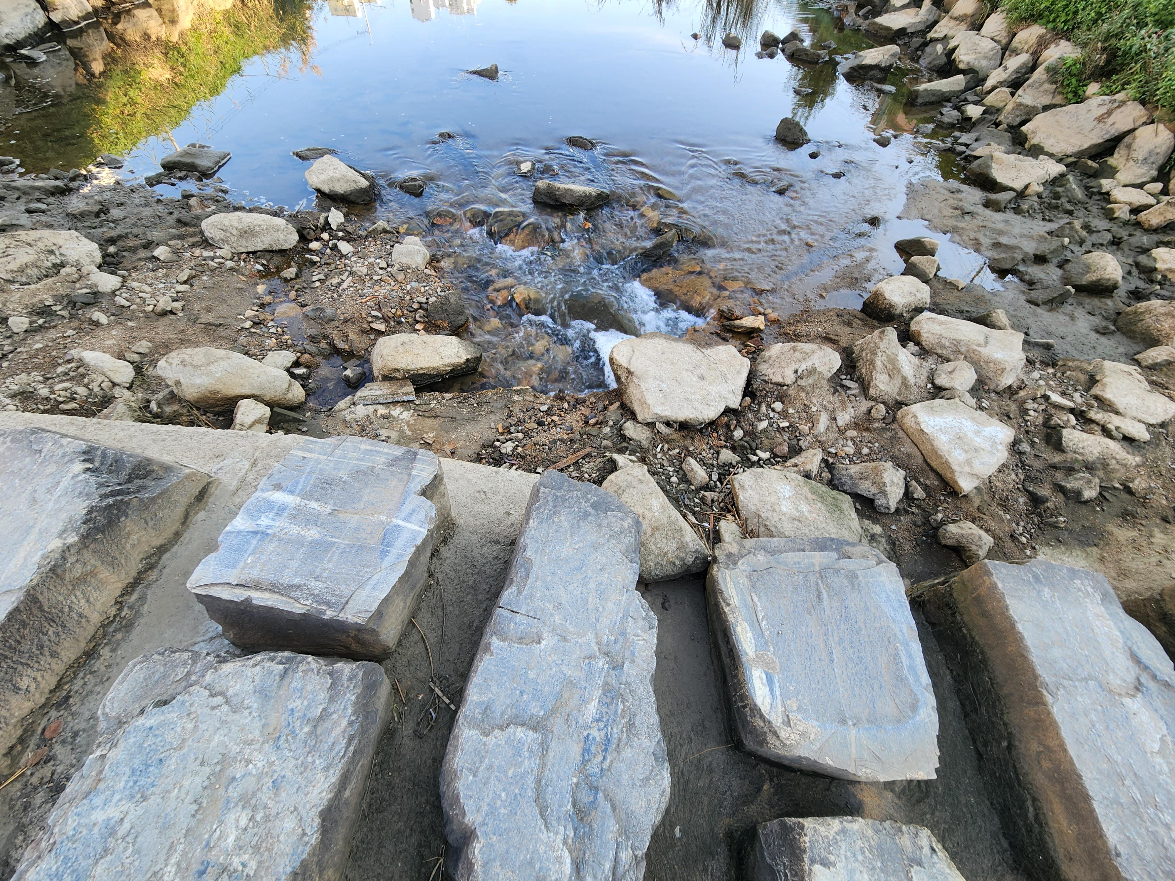 - 드디어 돌다리 사이로 물이 흐른다.