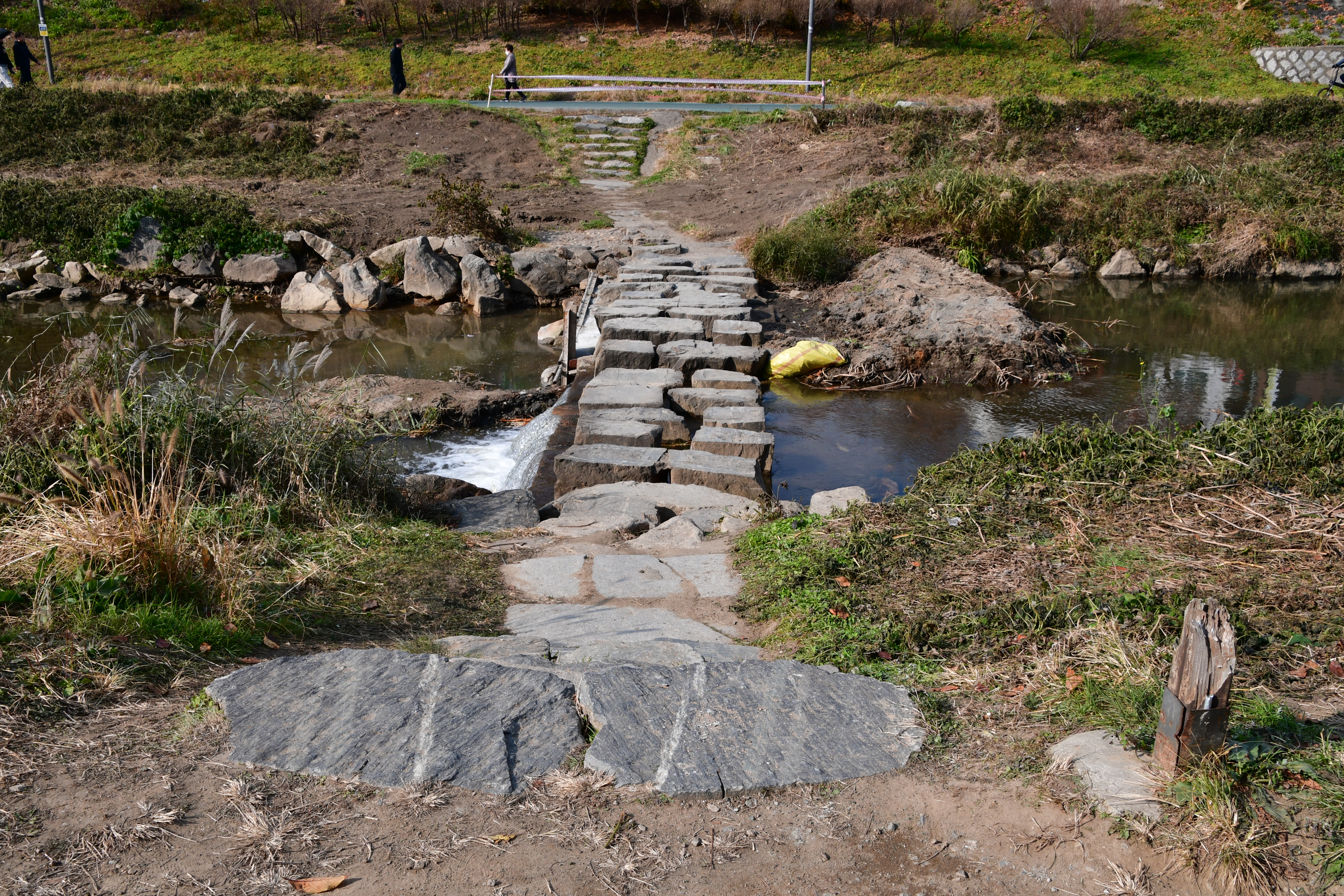동쪽은 다리 속으로 흐러던 것을 흙으로 채워서 물이 돌다리 사이로 흐르게 했다. 하루도 안 걸릴 일을 왜 몇 년을 미루었는지 진짜 이해가 되지 않았다. 시멘트가 굳으면 흙더미를 치우면 물이 돌다리 사이로 흐른다고 믿는다.
