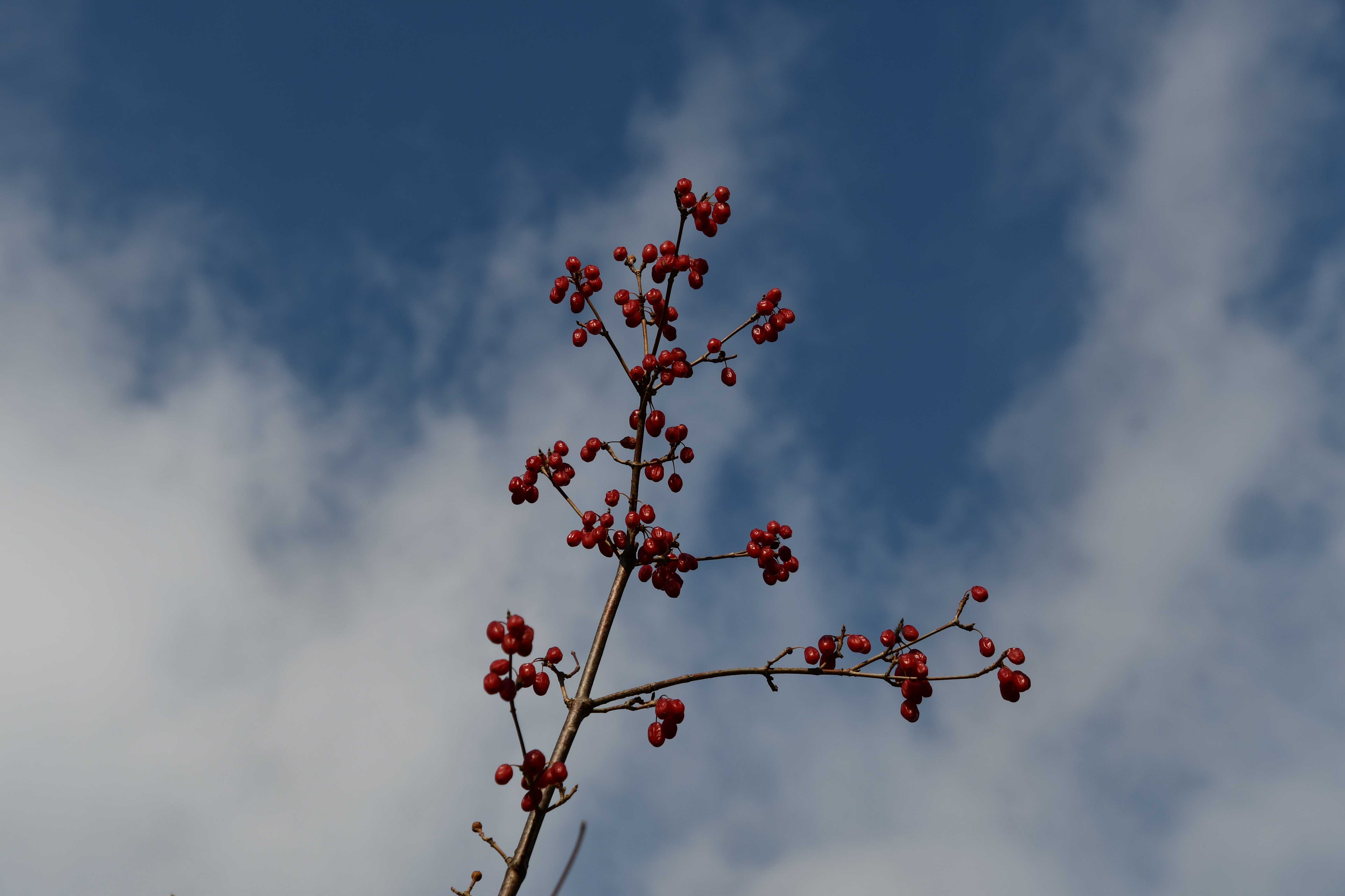 - 하늘에 구름이 많아 색이 흐리다. 열매가 떨어진 나무에는 벌써 꽃몽오리가 자라고 있다.