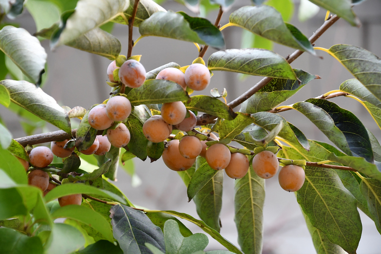 - 옆에 키가 낮은 산수유는 할아버지가 가지를 휘어서 따고 있는데, 고욤나무는 경사지에 있고 키가 커서 아무도 손대지 않았다.