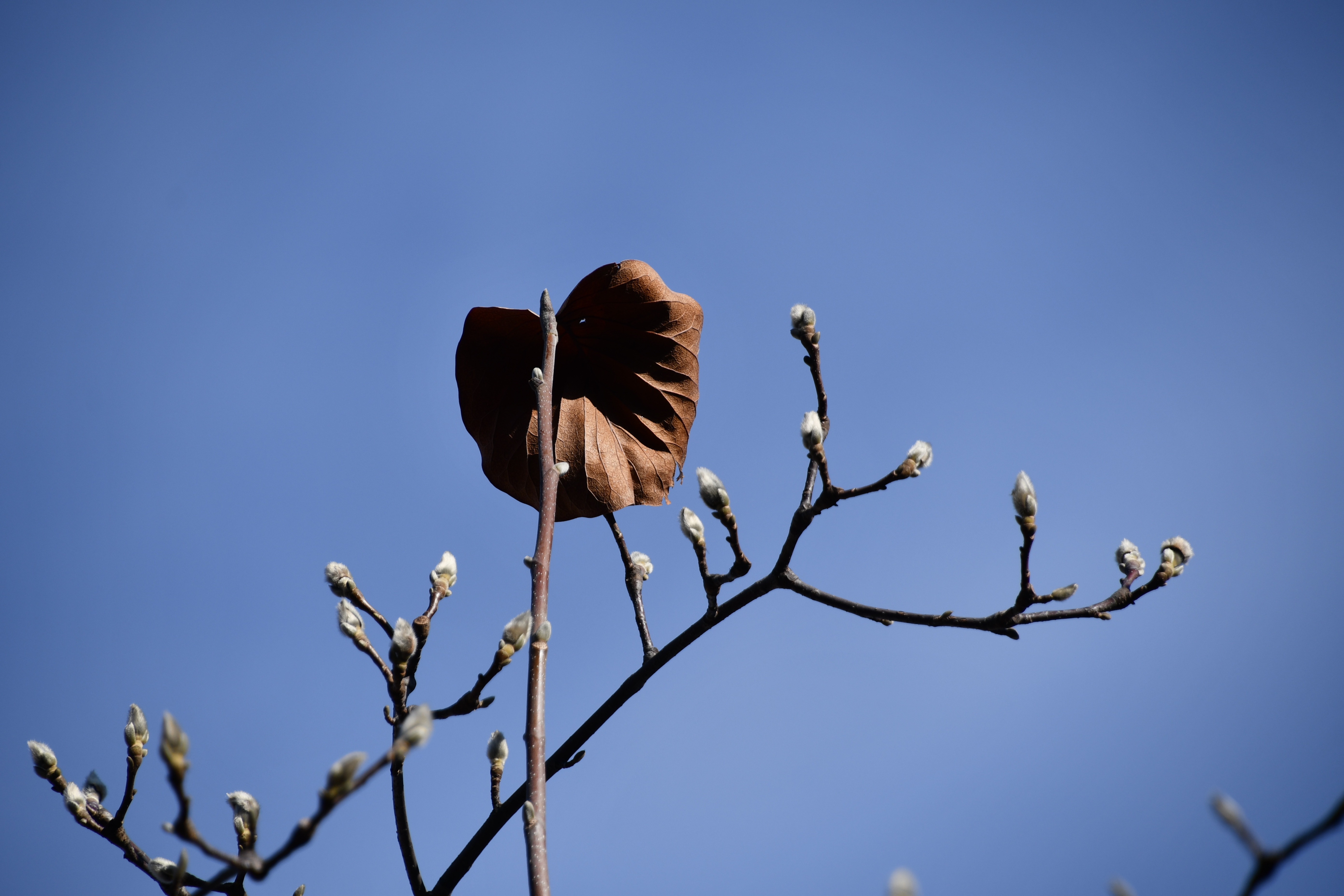 - 맨 꼭대기에 갈대 목련 잎이 하나 매달려 있다.