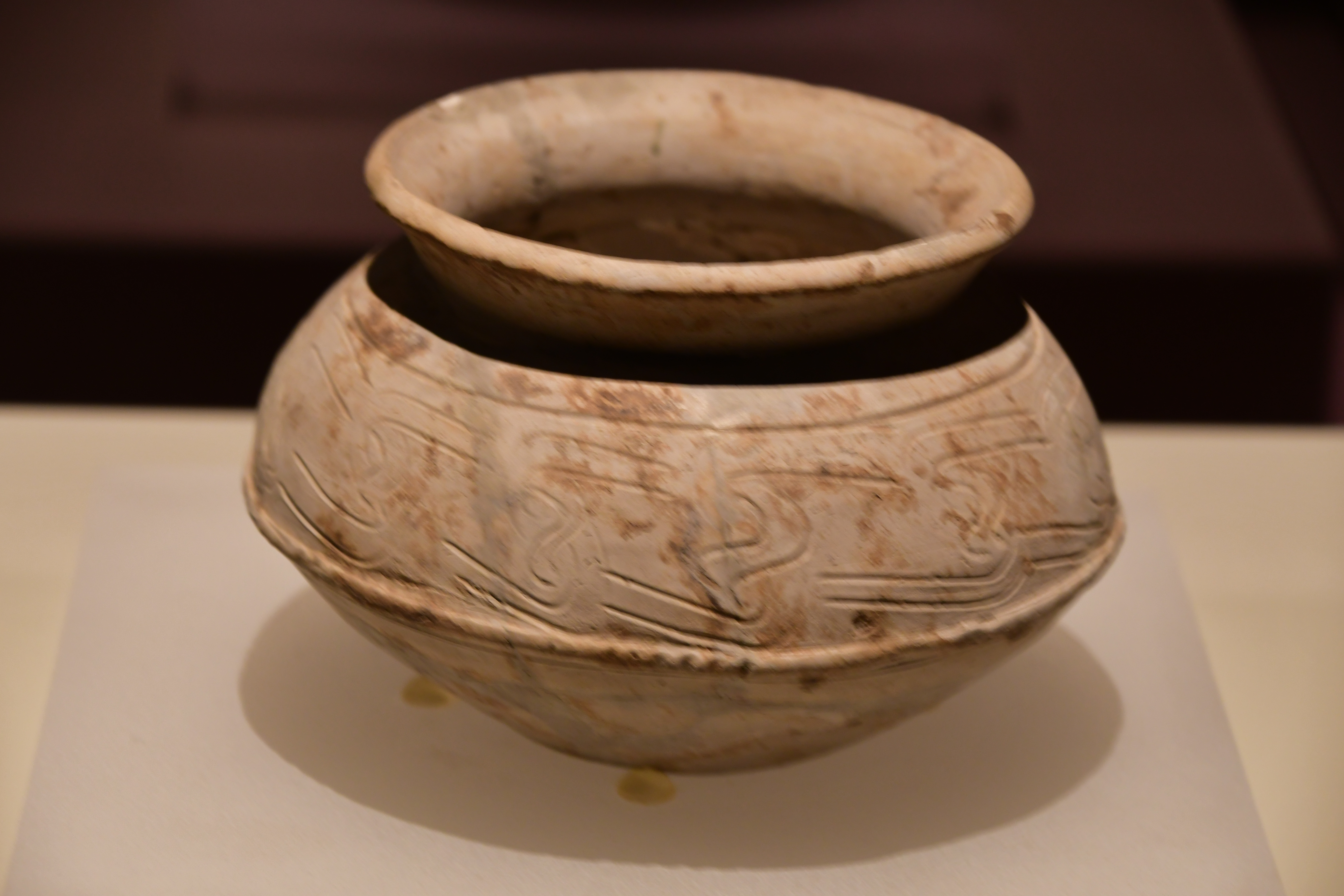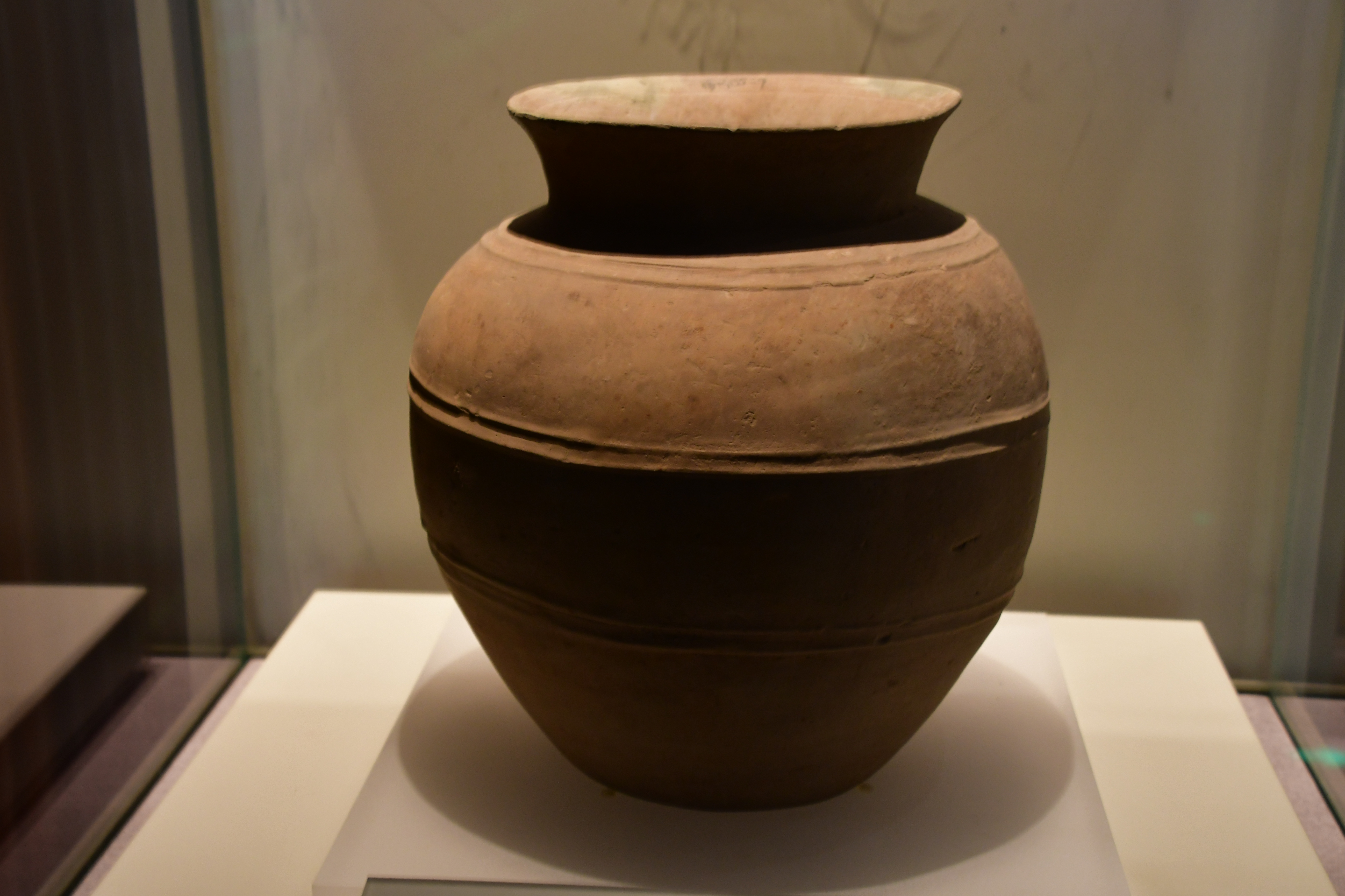 崧澤文化的代表性陶器, 爲盛貯器, 用以盛水或食物等。爲崧澤文化早期的陶罐器型。
