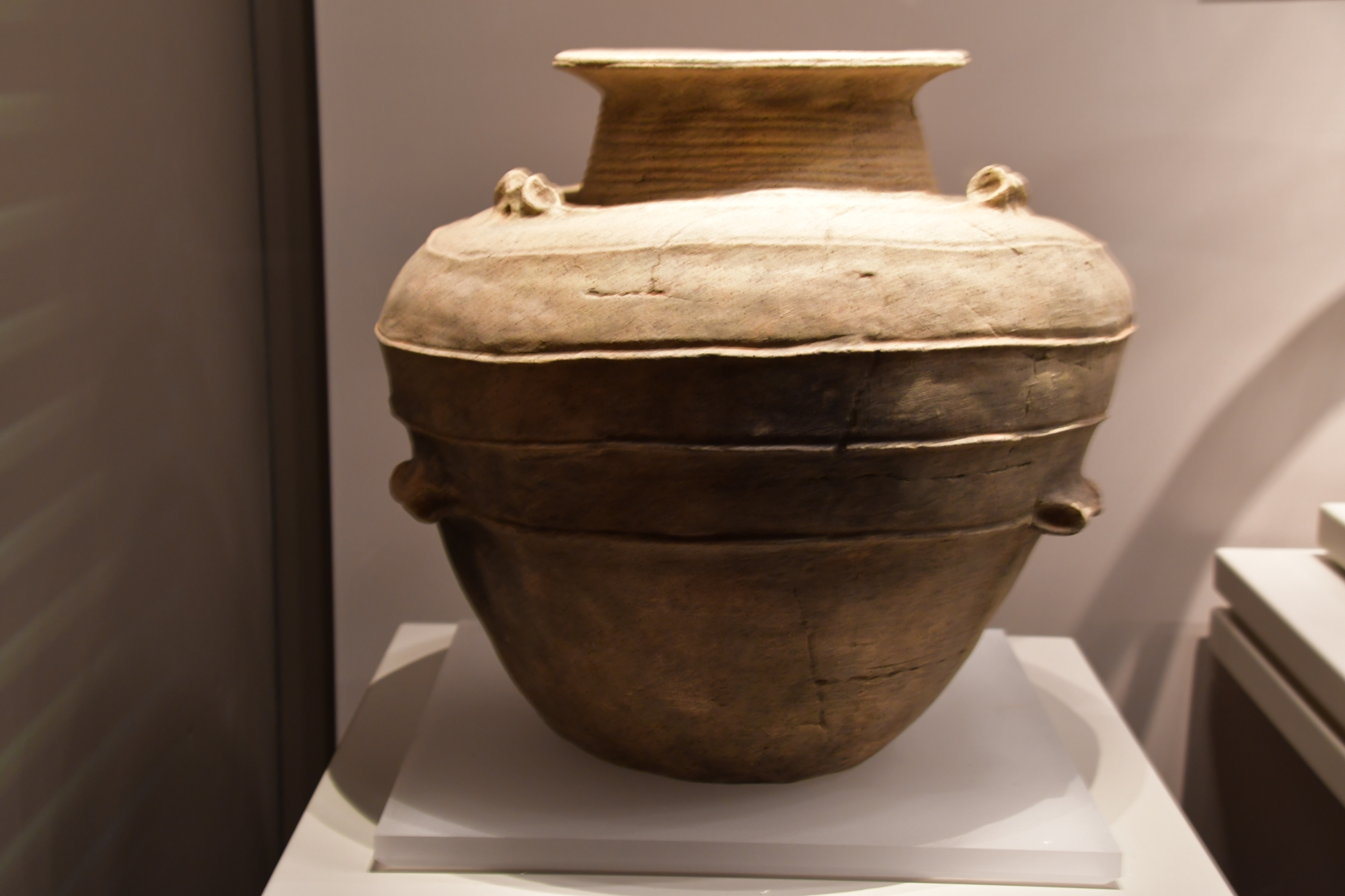 # 숭택문화의 대표적인 토기는 저장용 그릇으로, 물이나 음식 등을 담는 데 사용되었다. 이는 숭택문화 초기의 토기 항아리형 기물이다.