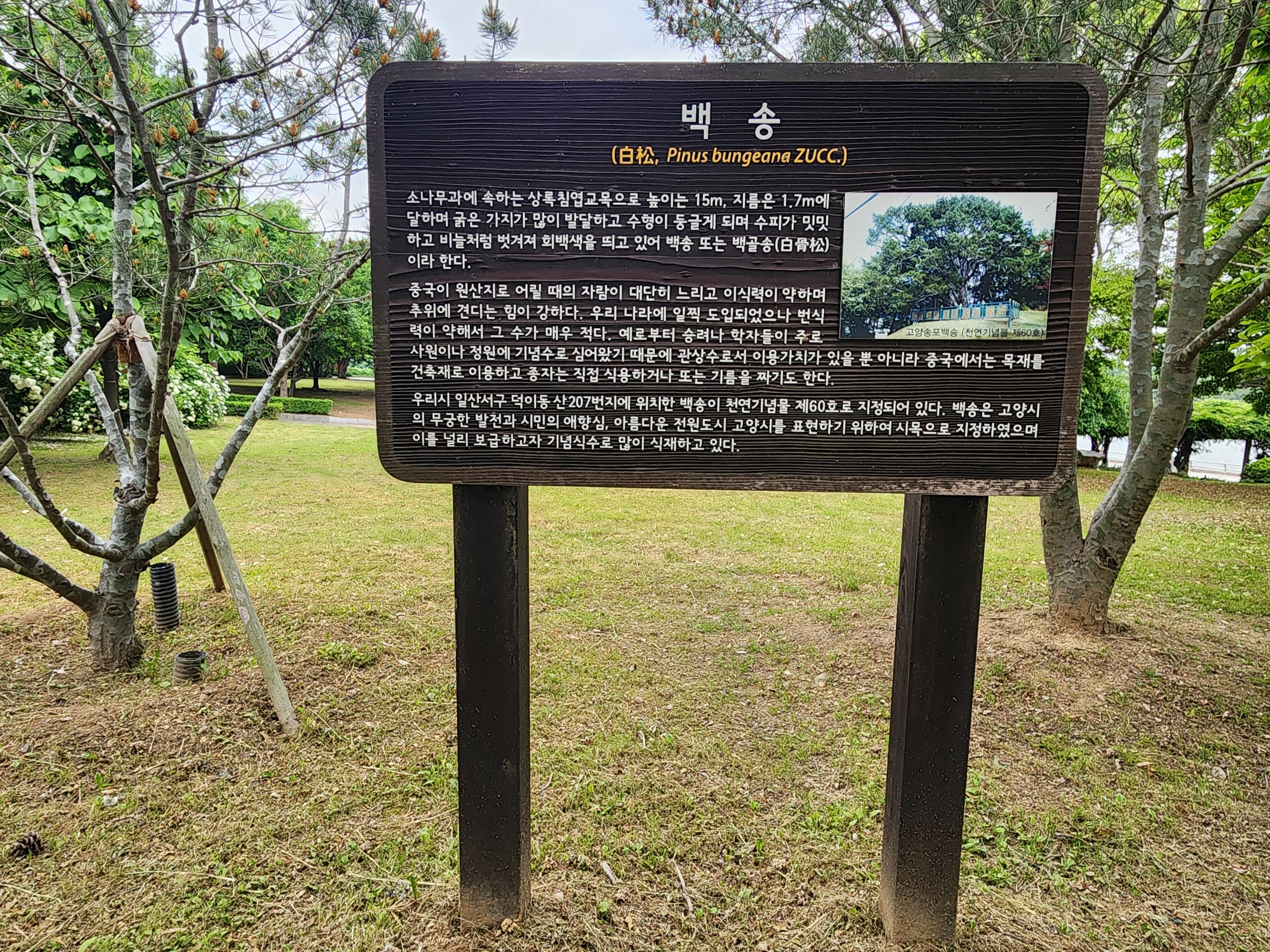 - 백송은 나무껍질이 하얗고 껍질 조각이 오래되면 저절로 떨어지는 특징이 있으며 잎은 3개씩 모여 난다. 백송은 중국이 원산지인 희구한 나무이다. 조선시대에 중국을 왕래하던 사신들이 가져다 심었다. 현재는 대부분 천연기념물로 지정하여 보호하고 있다. 예산 추사고택에도 있다.