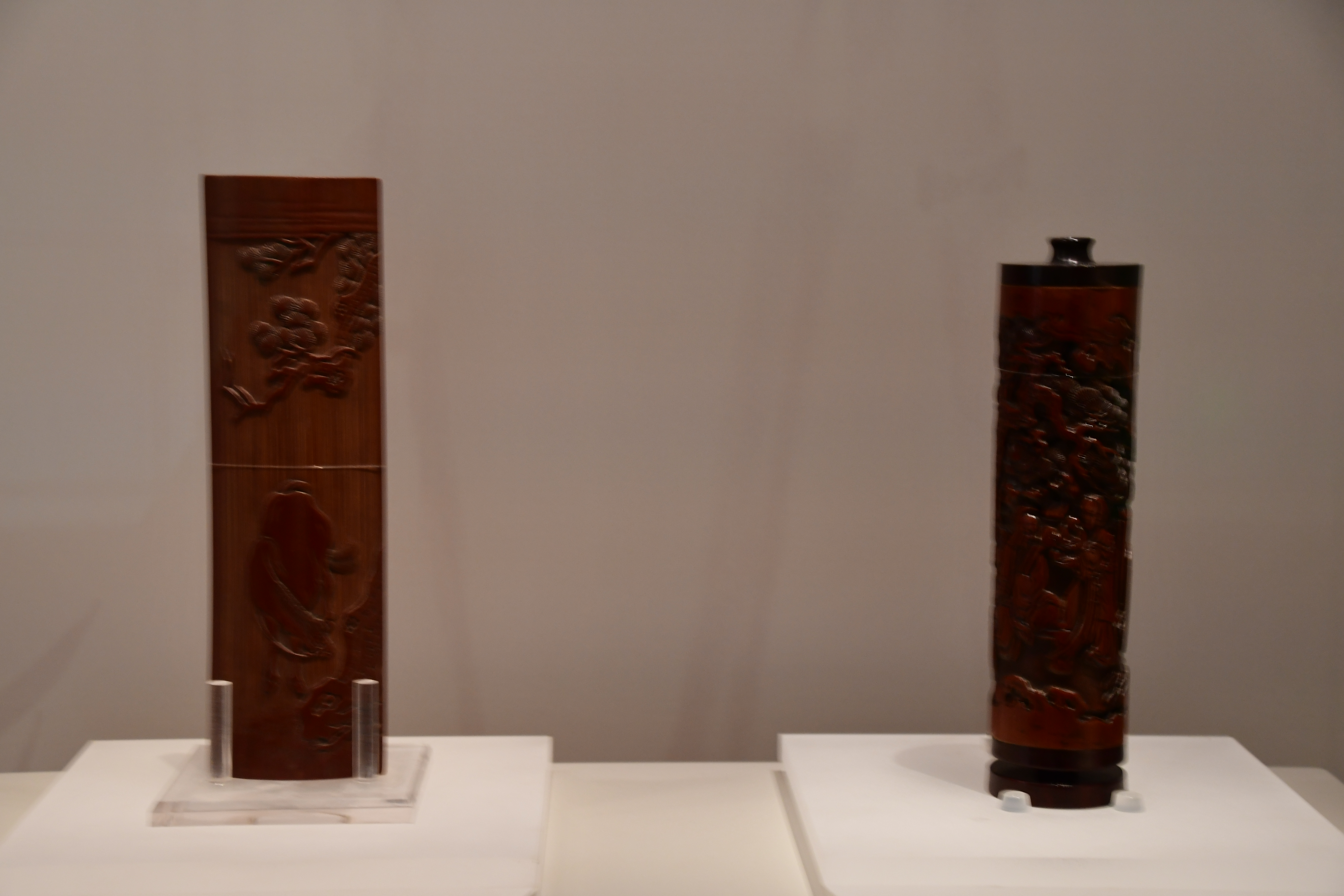 ◆ 좌: 대나무에 그림을 조각한 필통