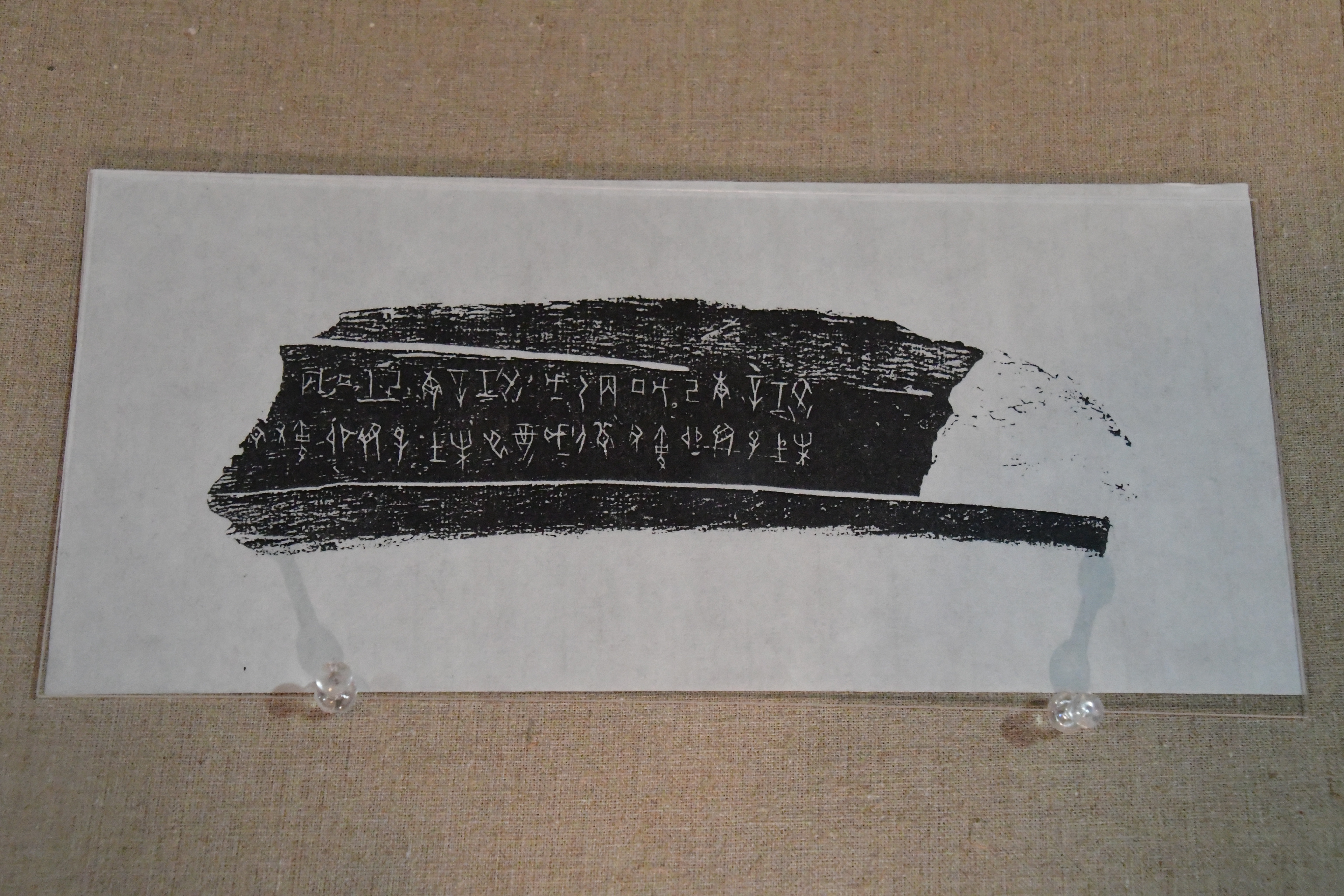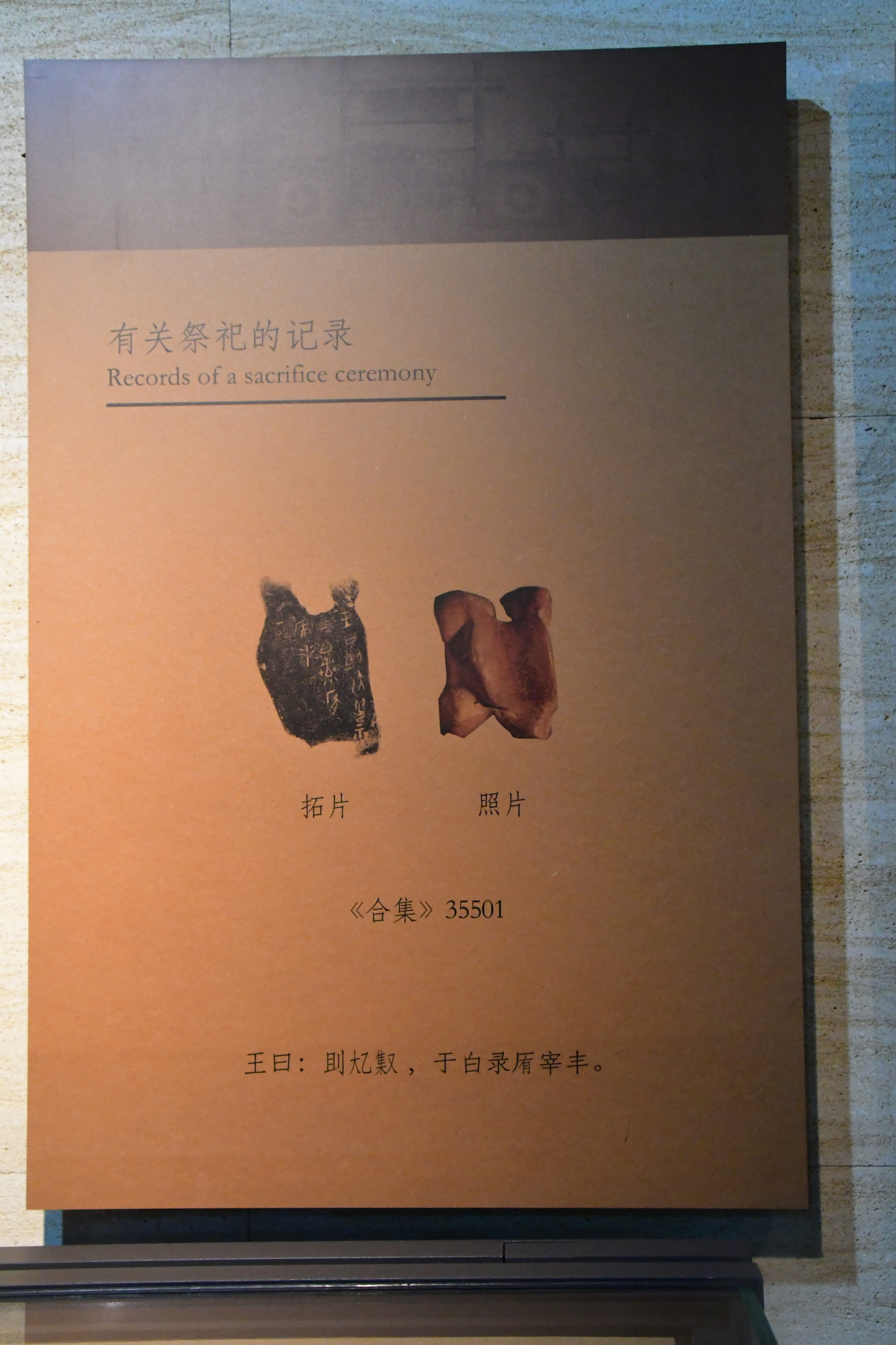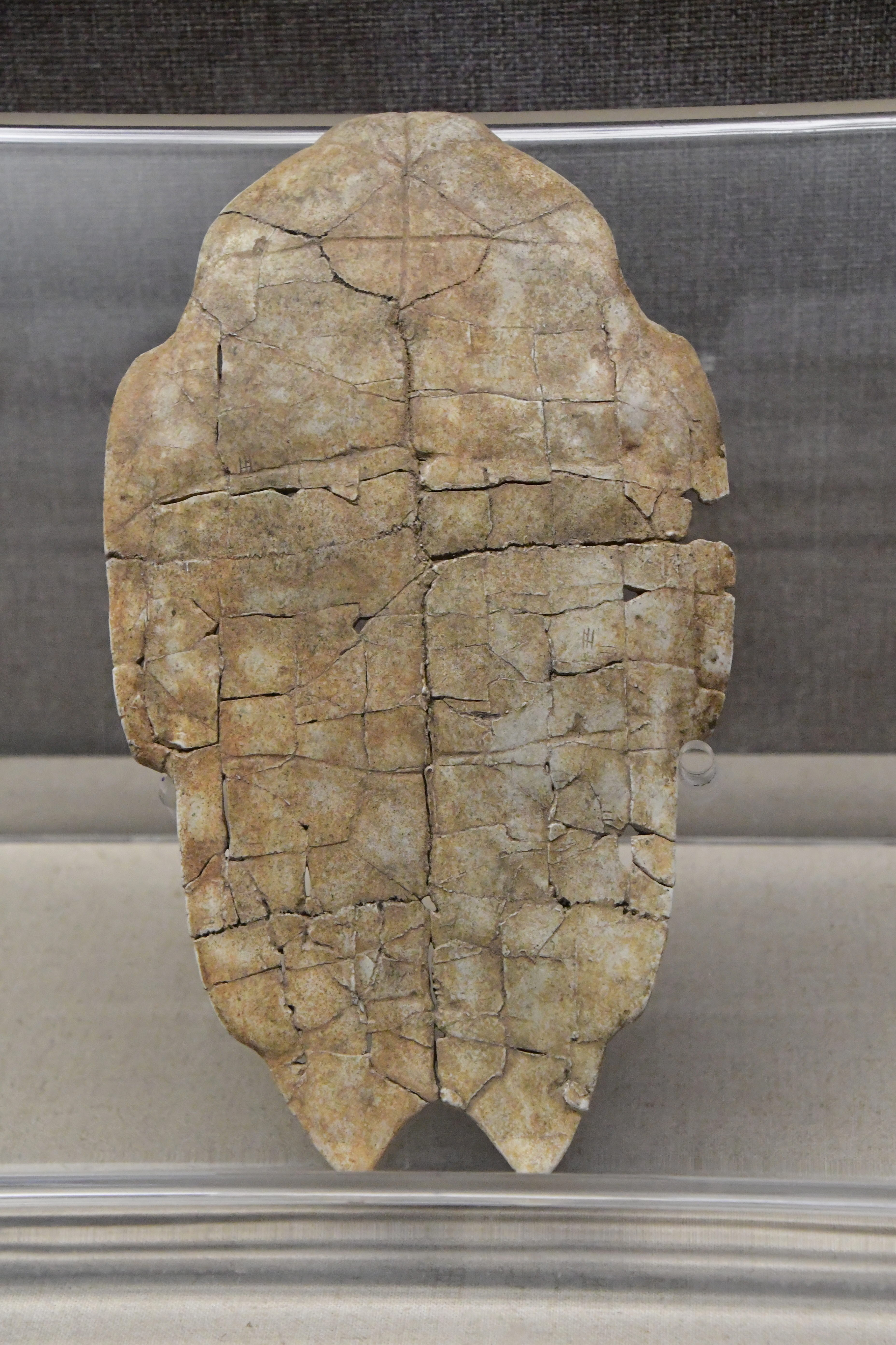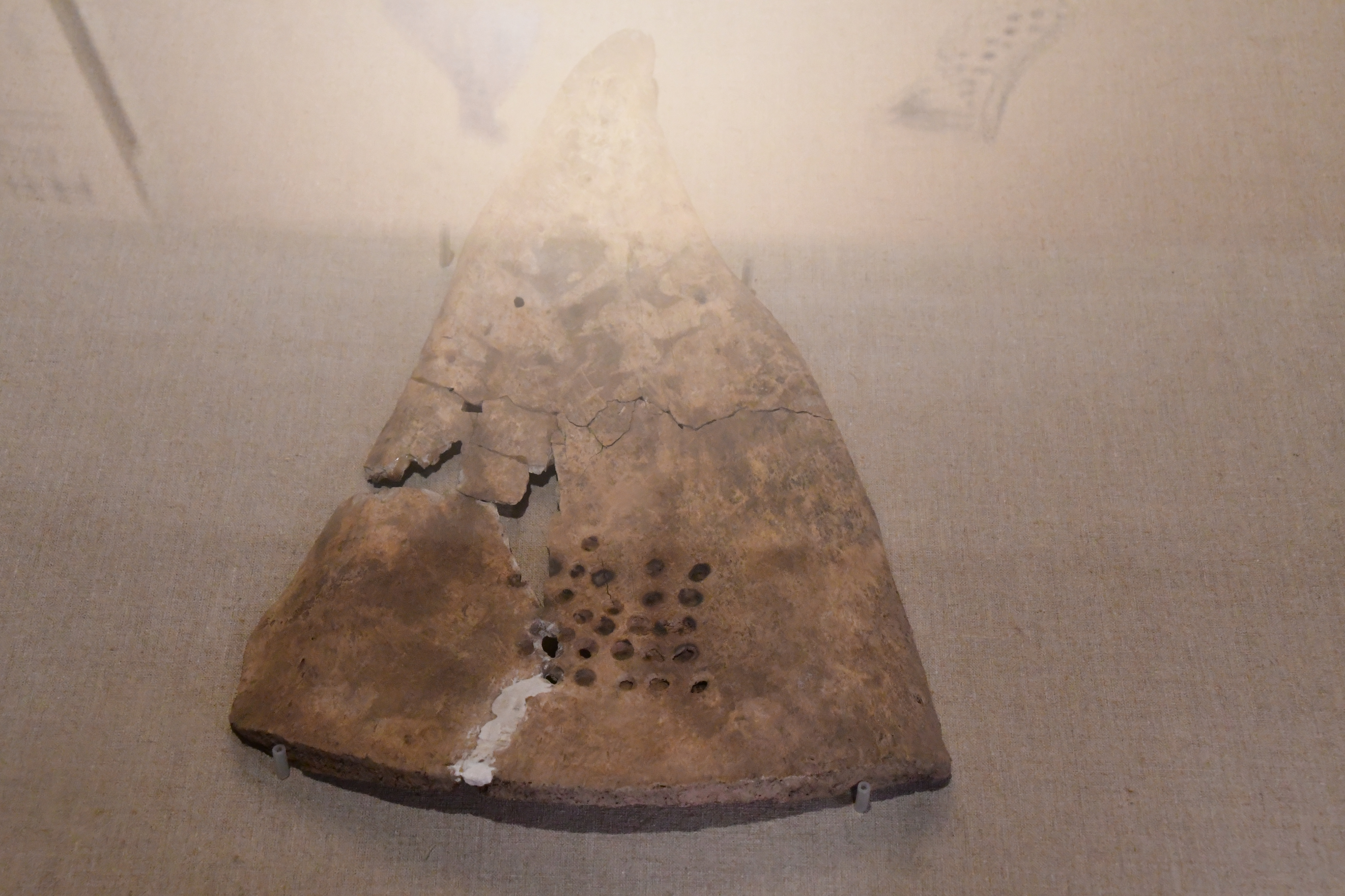 - 하남 정주 상성 출토. 글자가 없는 복골로, 뼈의 넓은 부분에 드릴로 뚫고 불로 지진 흔적이 있어 이 갑골이 점복에 사용되었음을 설명한다.