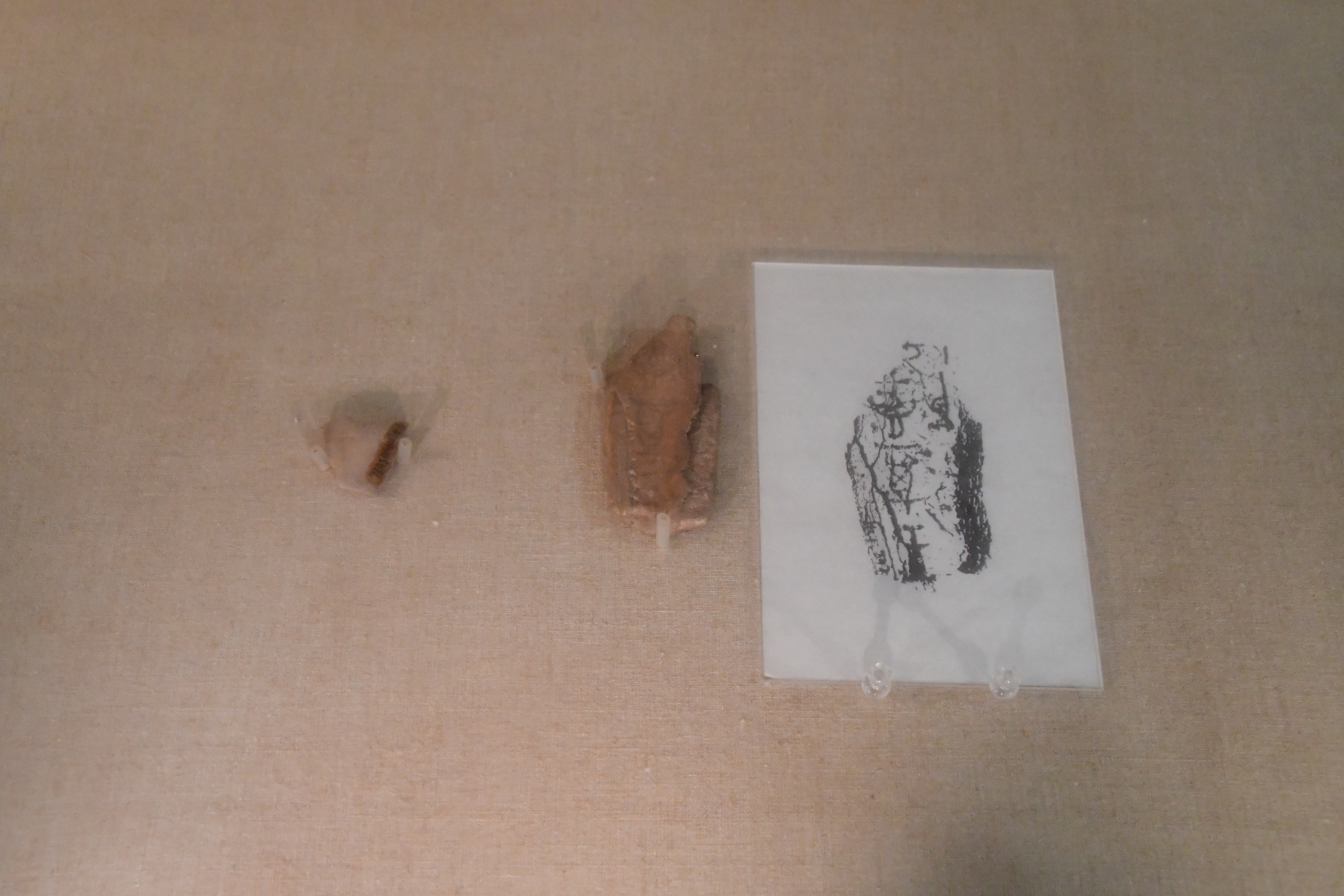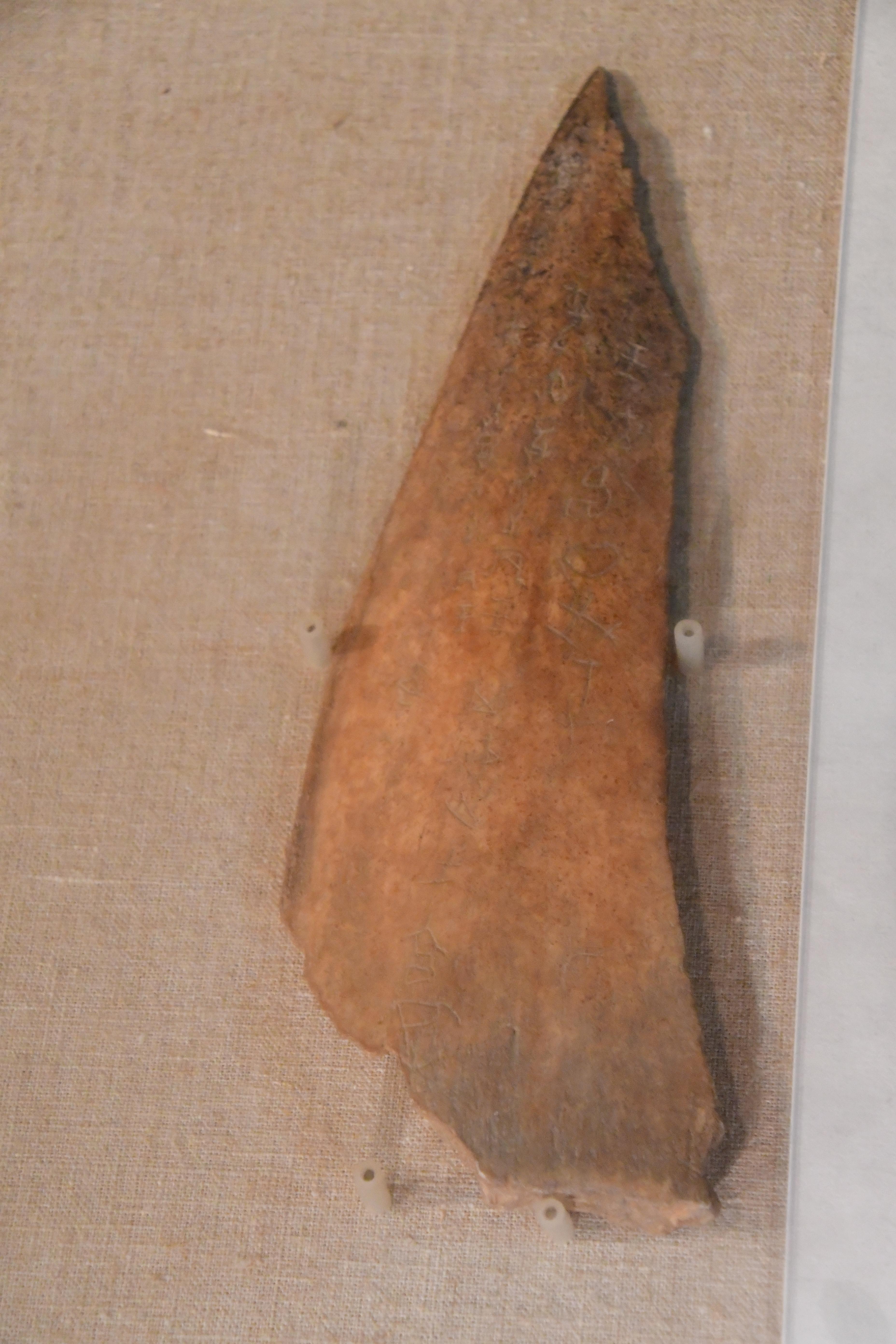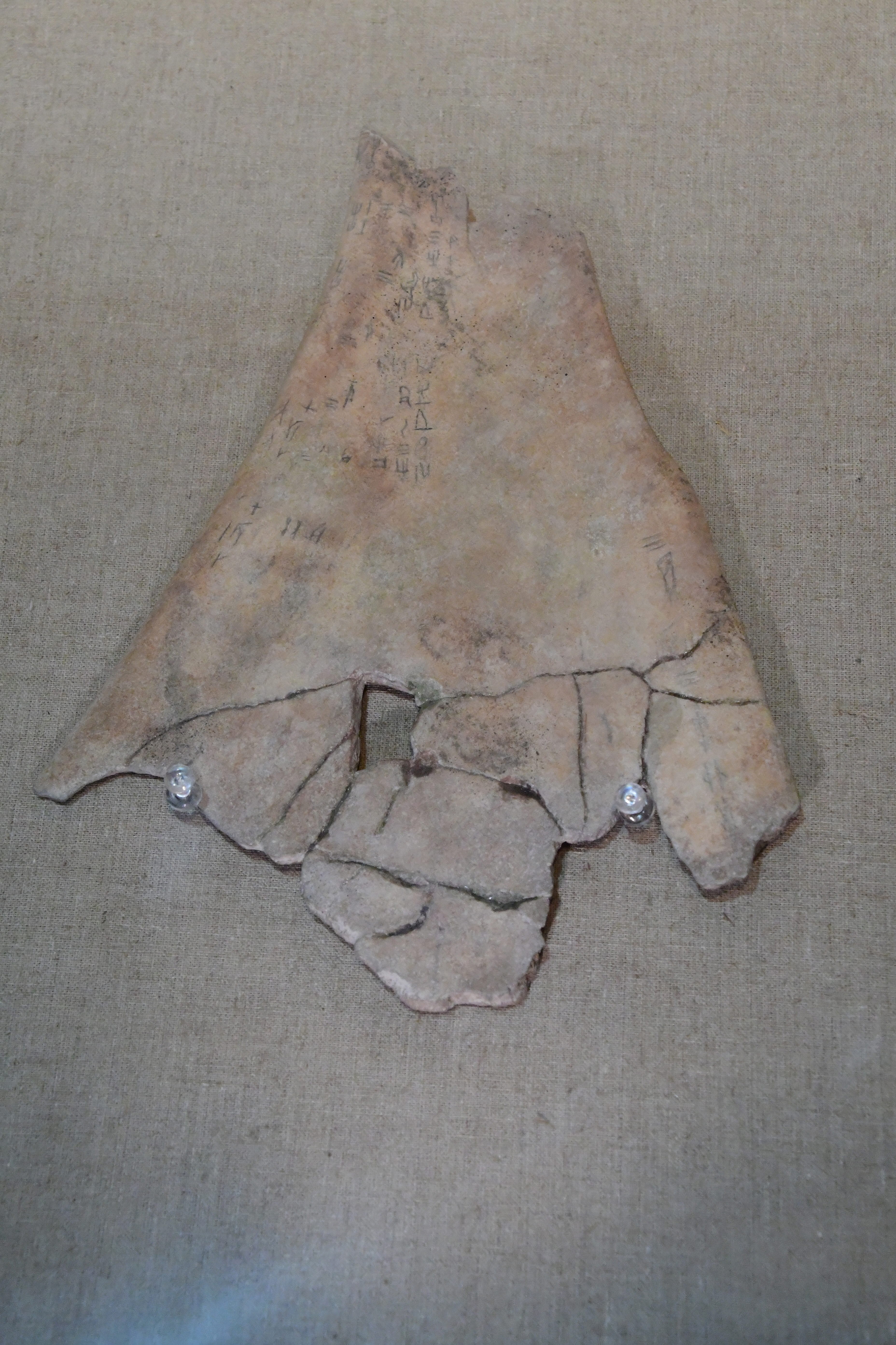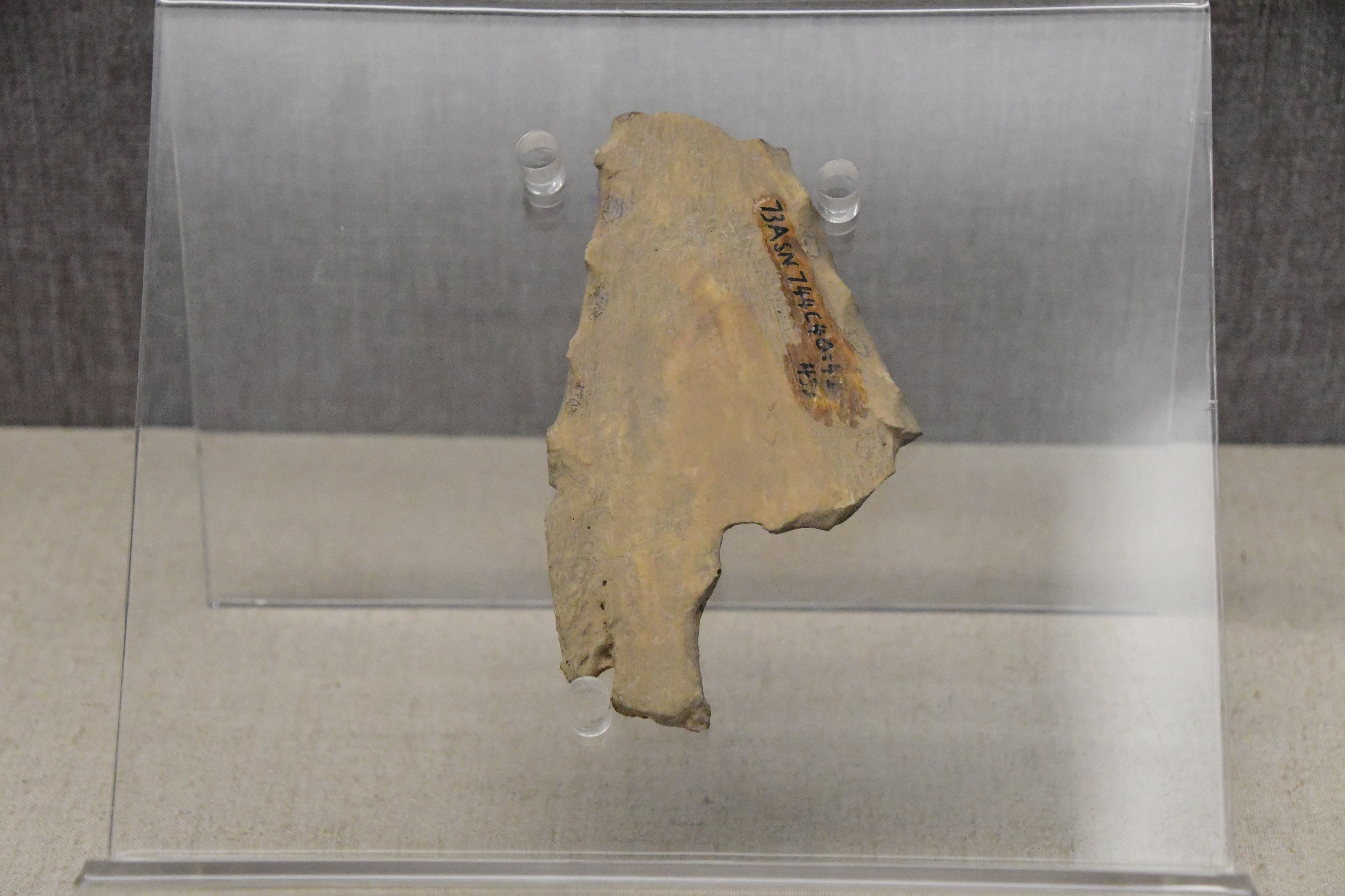 - 하남 정주 상성 출토. 글자가 없는 복골로, 뼈의 넓은 부분에 드릴로 뚫고 불로 지진 흔적이 있어 이 갑골이 점복에 사용되었음을 설명한다.