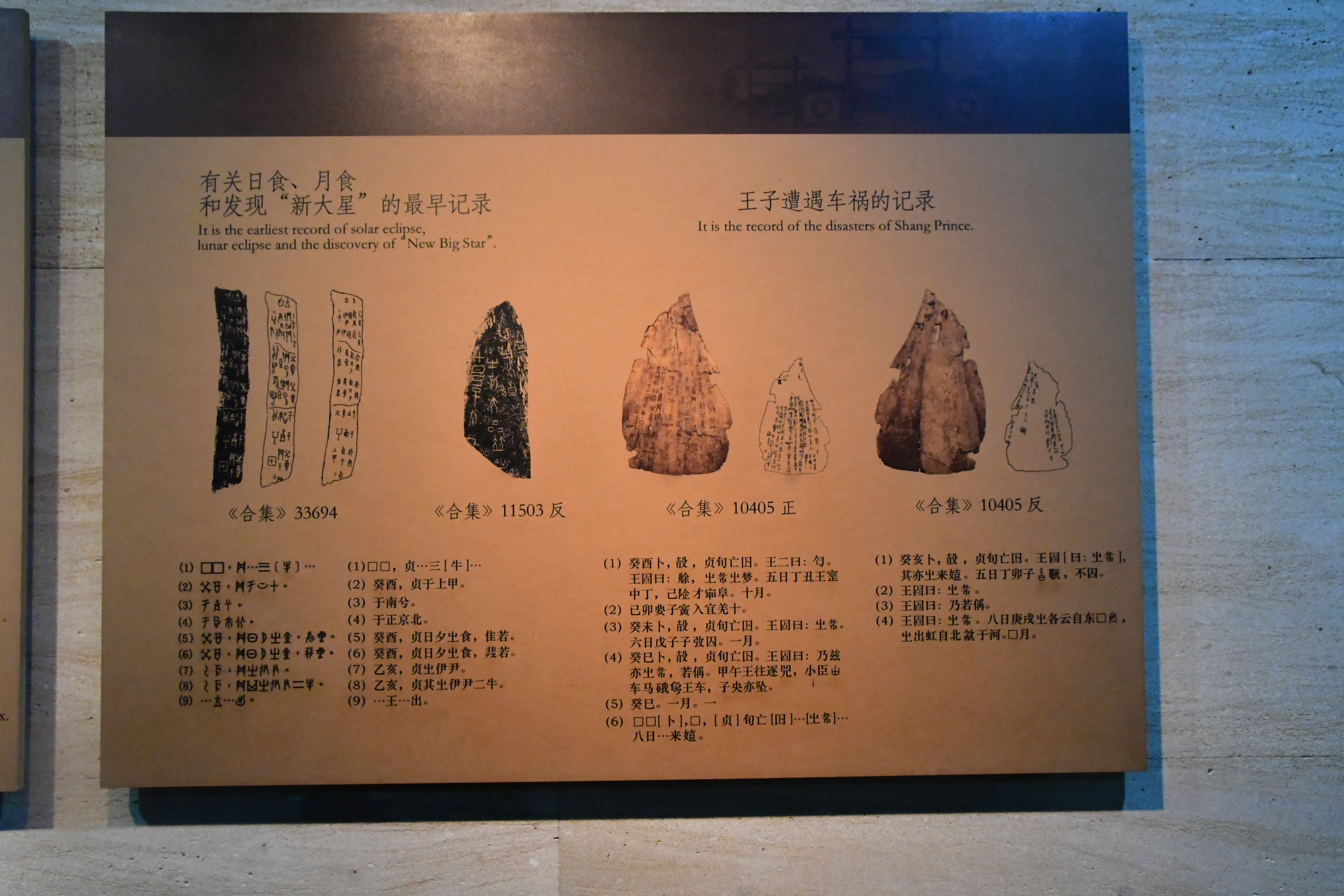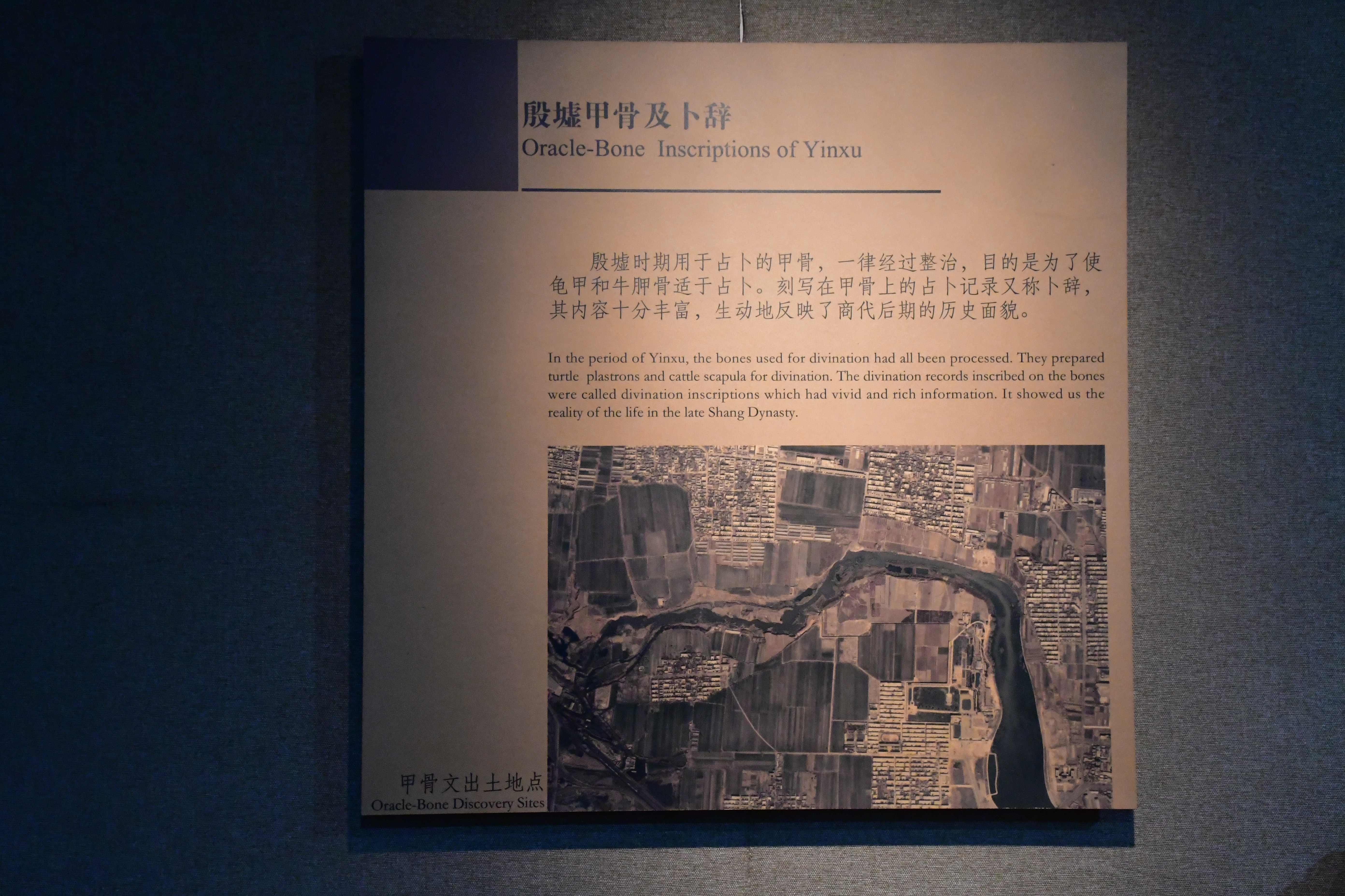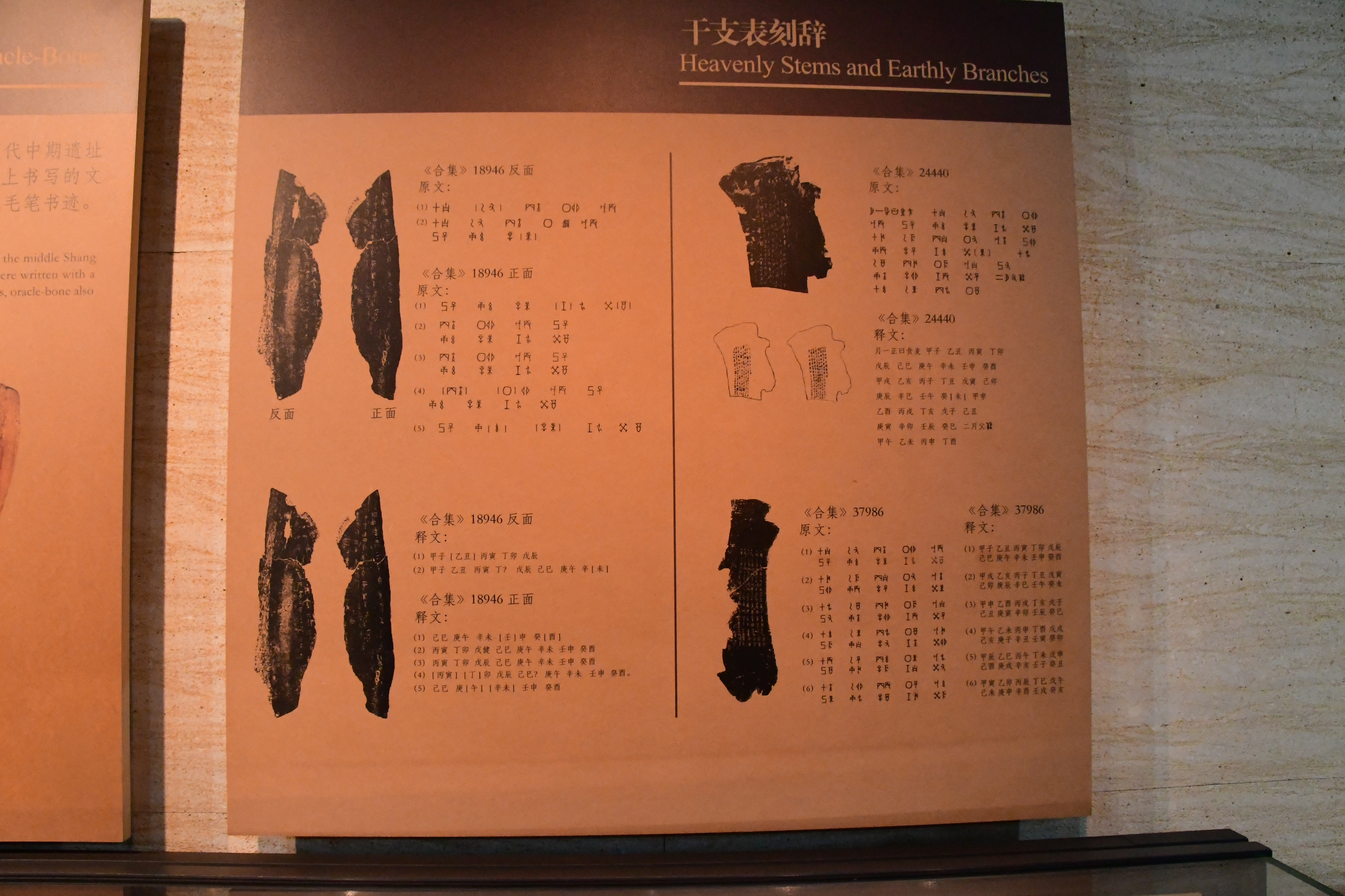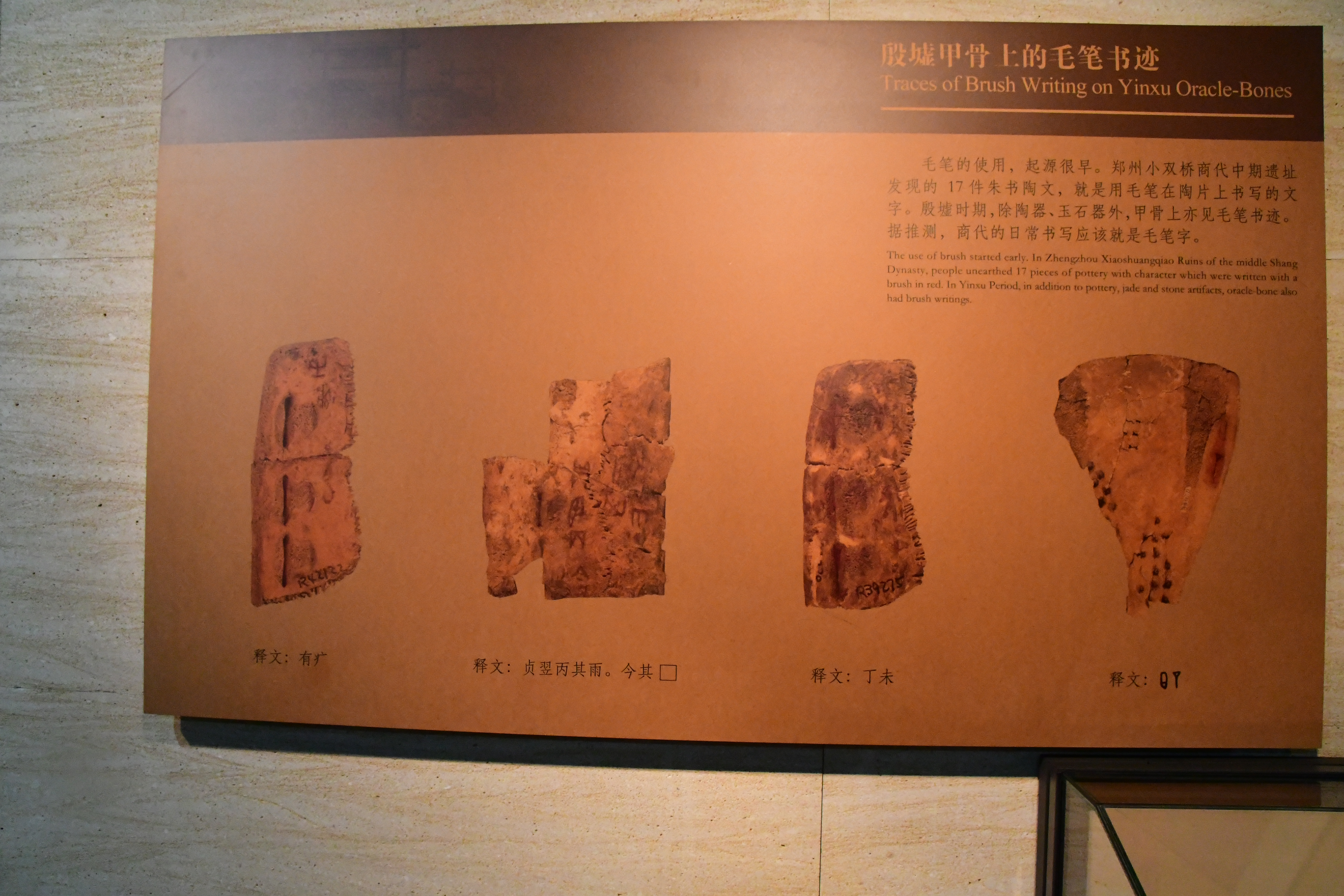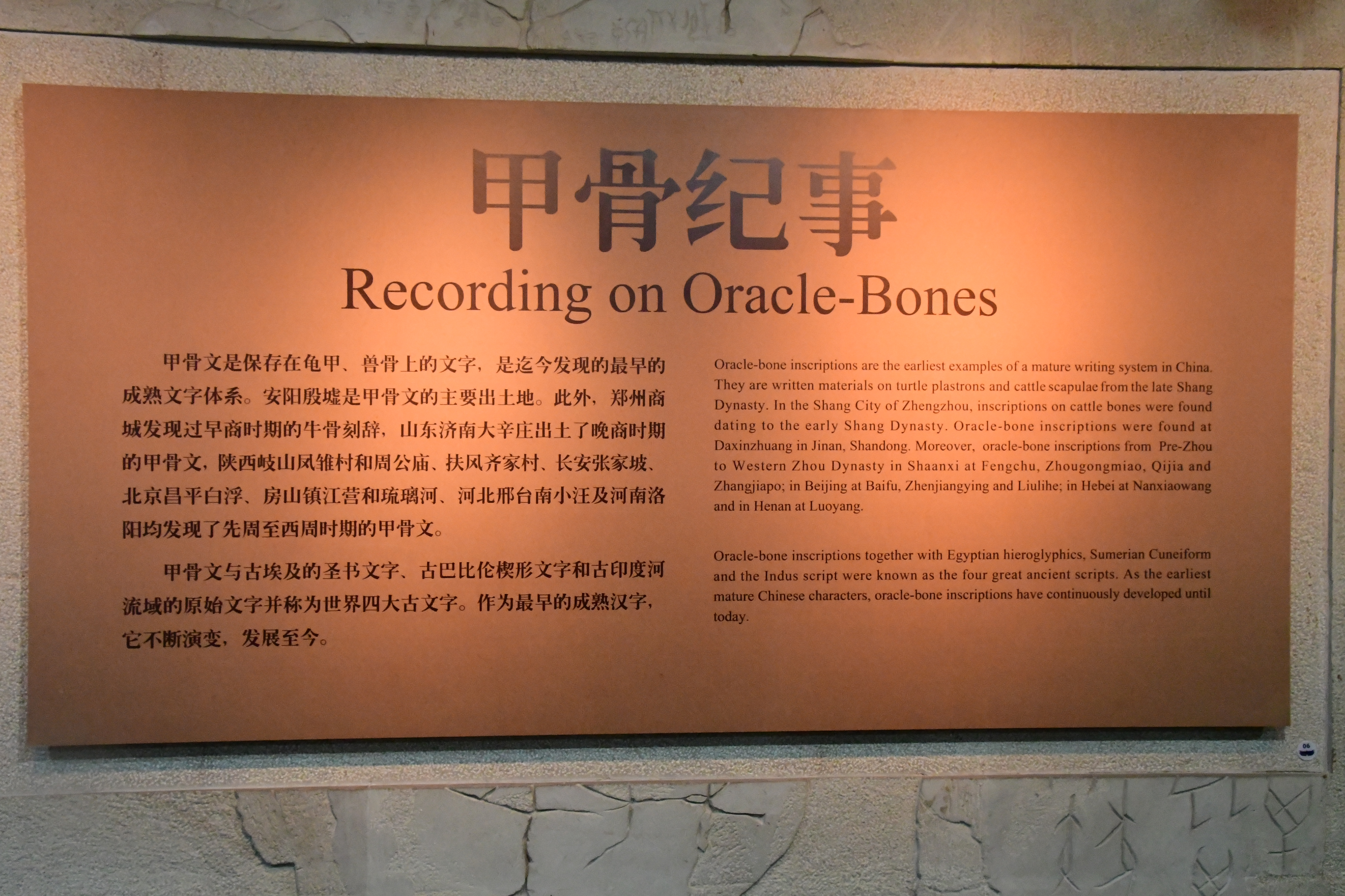 甲骨文是保存在龜甲、獸骨上的文字, 是迄今發現的最早的成熟文字體系。安陽殷墟是甲骨文的主要出土地。此外, 鄭州商城發現過早商時期的牛骨刻辭, 山東濟南大辛莊出土了晩商時期的甲骨文。陝西岐山鳳雛村和扶風齊家村 、長安張家坡 、 北京昌平白浮泉 、房山琉璃河 、 河北邢臺南小汪及河南洛陽均發現了先周至西周時期的甲骨文。