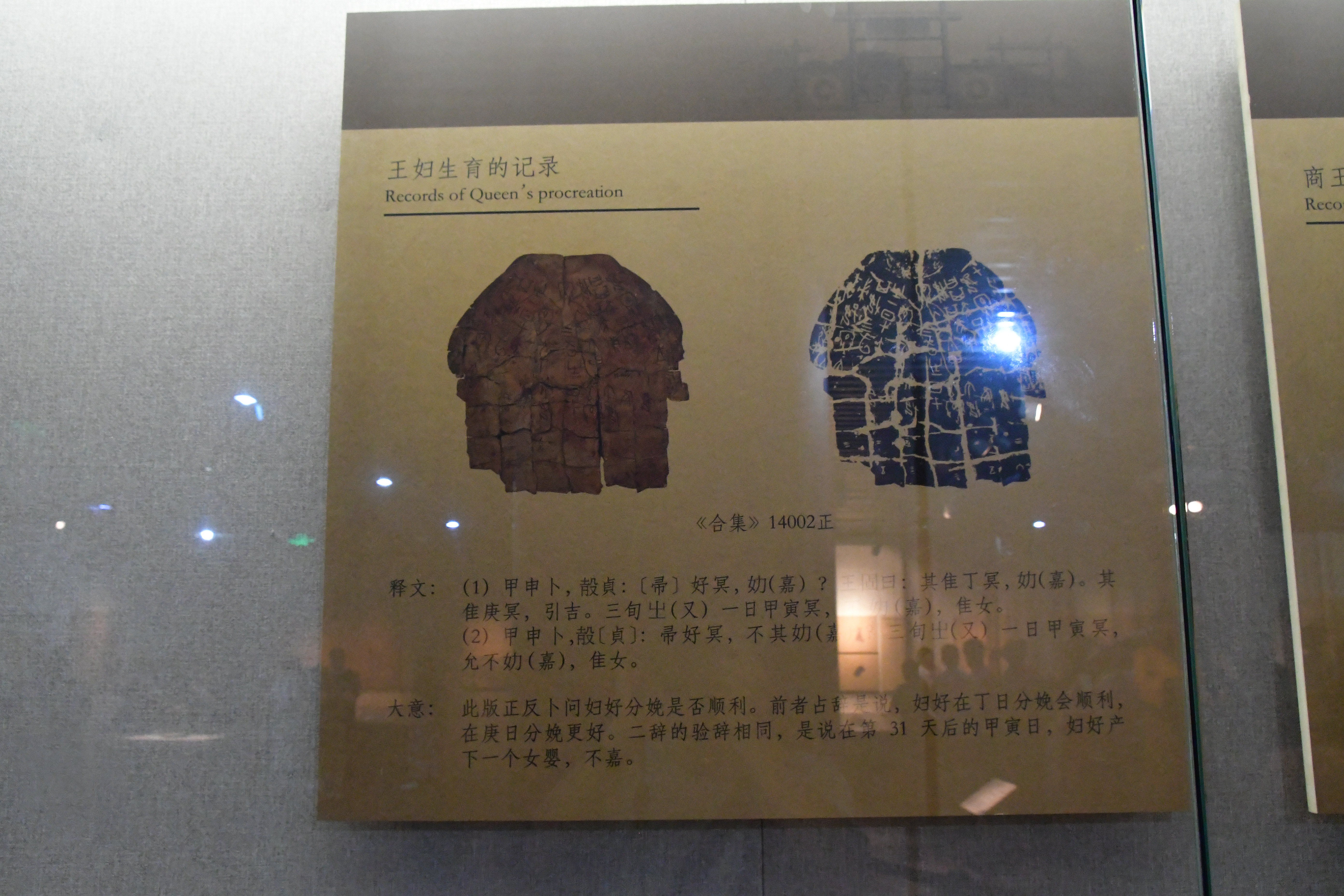 墟甲骨文材料迄今發現有 13 萬片左右, 其時代約在公元前 14 世紀到公元前 11 世紀, 按刻辭內容, 一般可分為占卜記錄和記事.