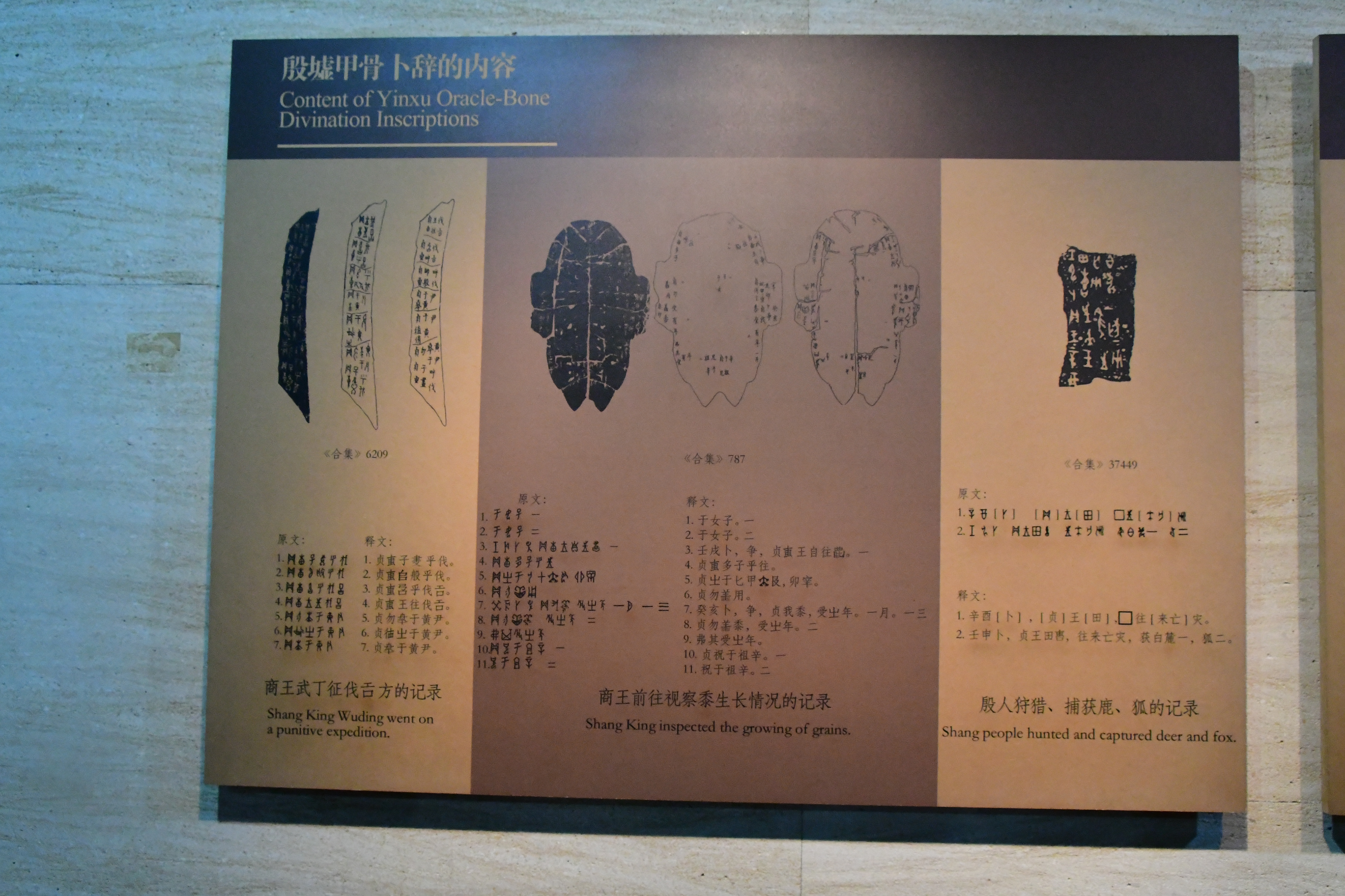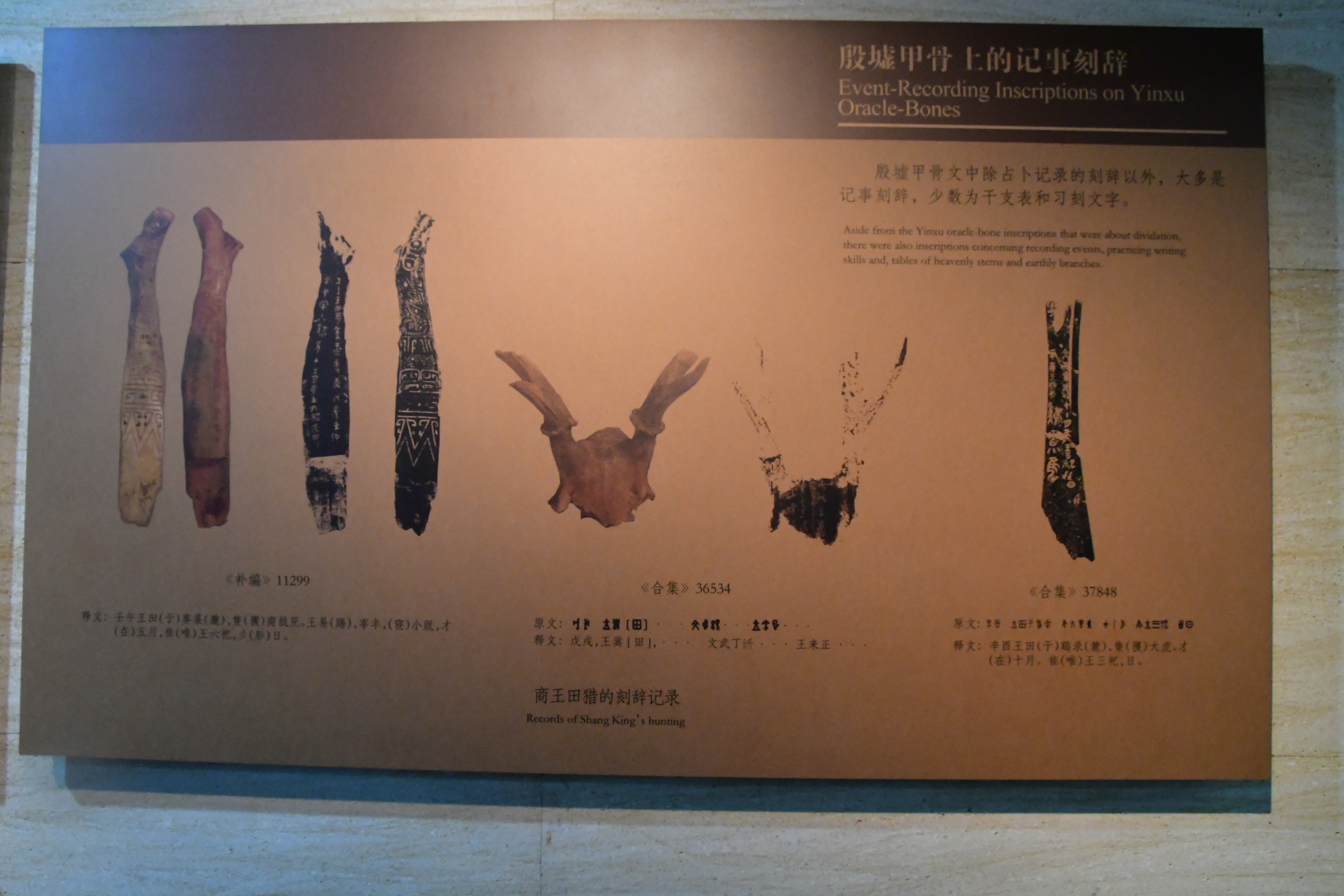 갑골문은 거북의 껍데기나 짐승의 뼈 위에 보존된 문자로, 지금까지 발견된 가장 이른 시기의 성숙한 문자 체계이다. 안양 은허는 갑골문의 주요 출토지이며, 이 외에도 정주 상성에서 상나라 초기 시대의 우골각사가 발견되었고, 산동 제남 대신장에서는 상나라 후기 시대의 갑골문이 출토되었으며, 섬서 기산 봉추촌과 주공묘, 부풍 제가촌, 장안 장가파, 북경 창평 백부, 방산 진강영과 유리하, 하북 형대 남소왕 및 하남 낙양 등지에서 모두 선주 시기부터 서주 시기까지의 갑골문이 발견되었다.