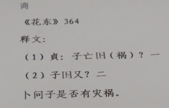 - 석문: 기해일에 점을 치다: 하신(河神)에게 곡식을 구하면, 곡식을 내려주겠는가?