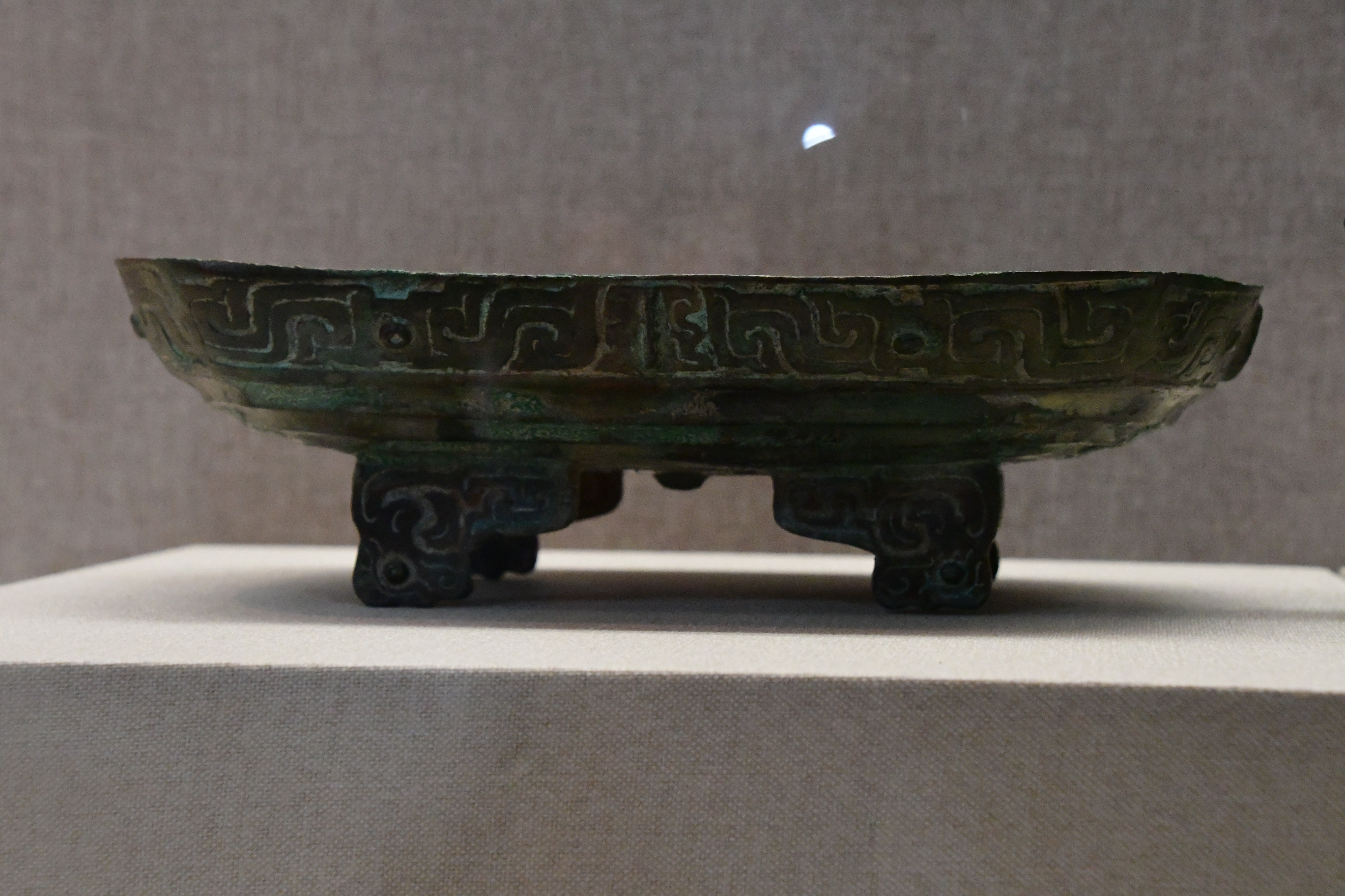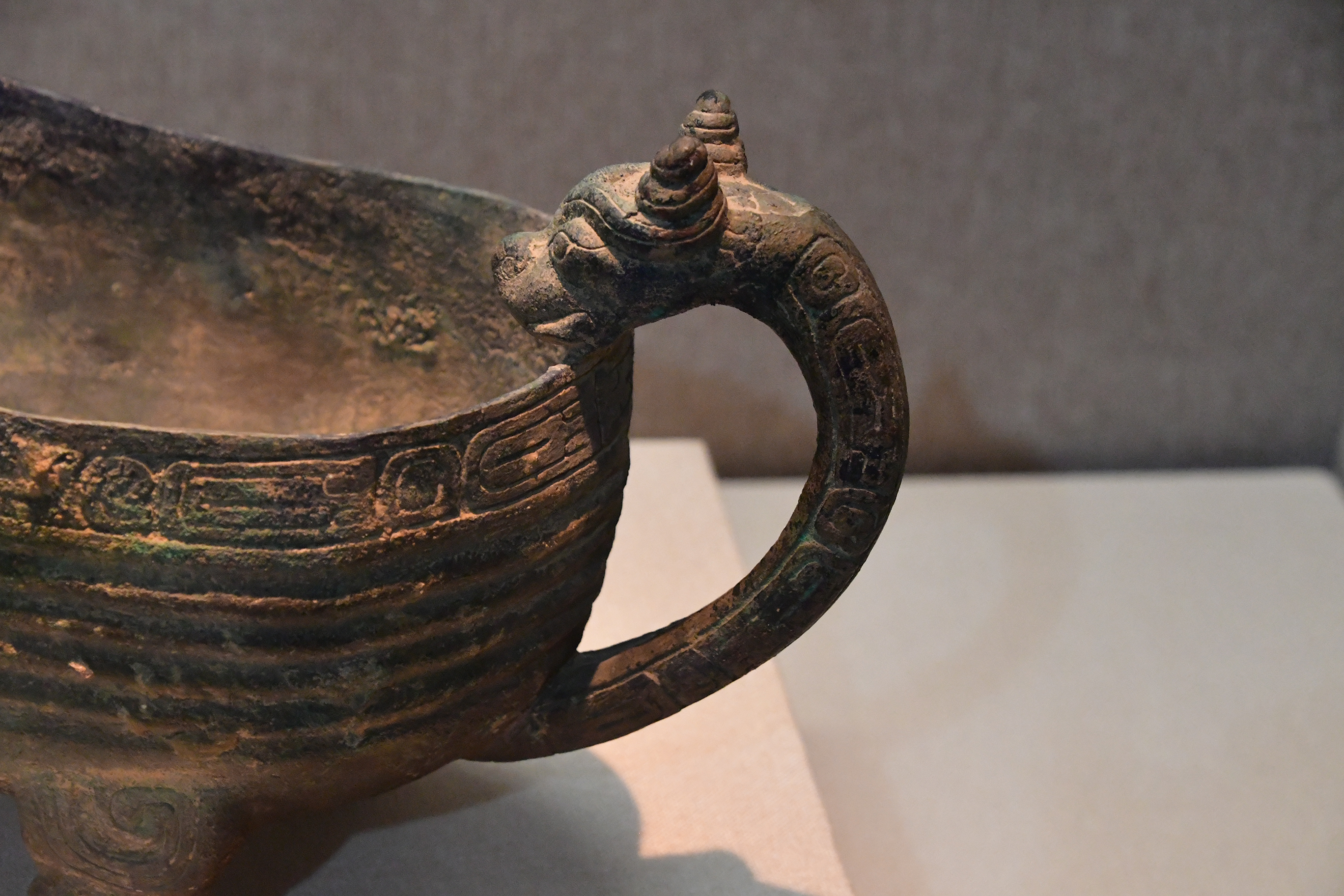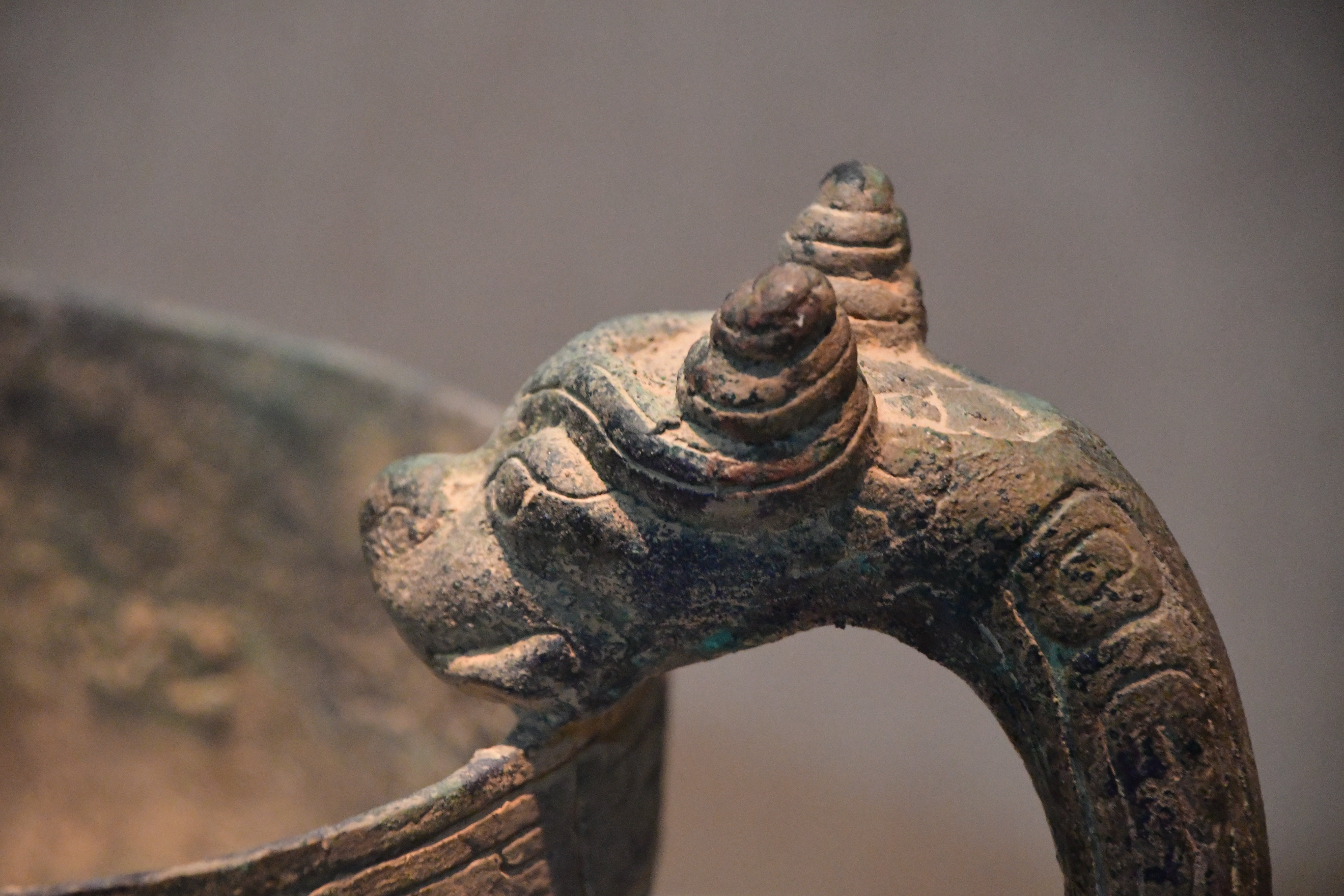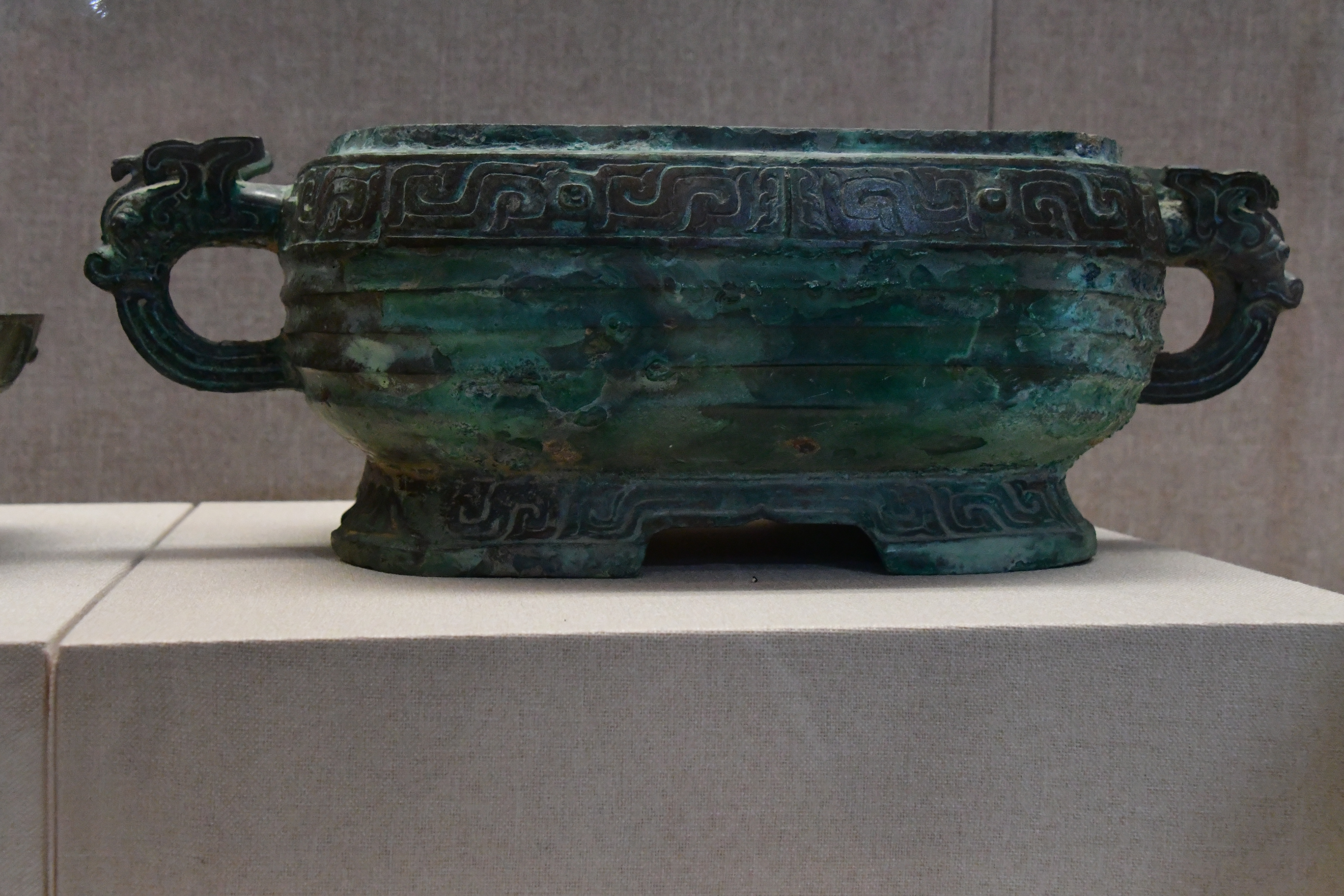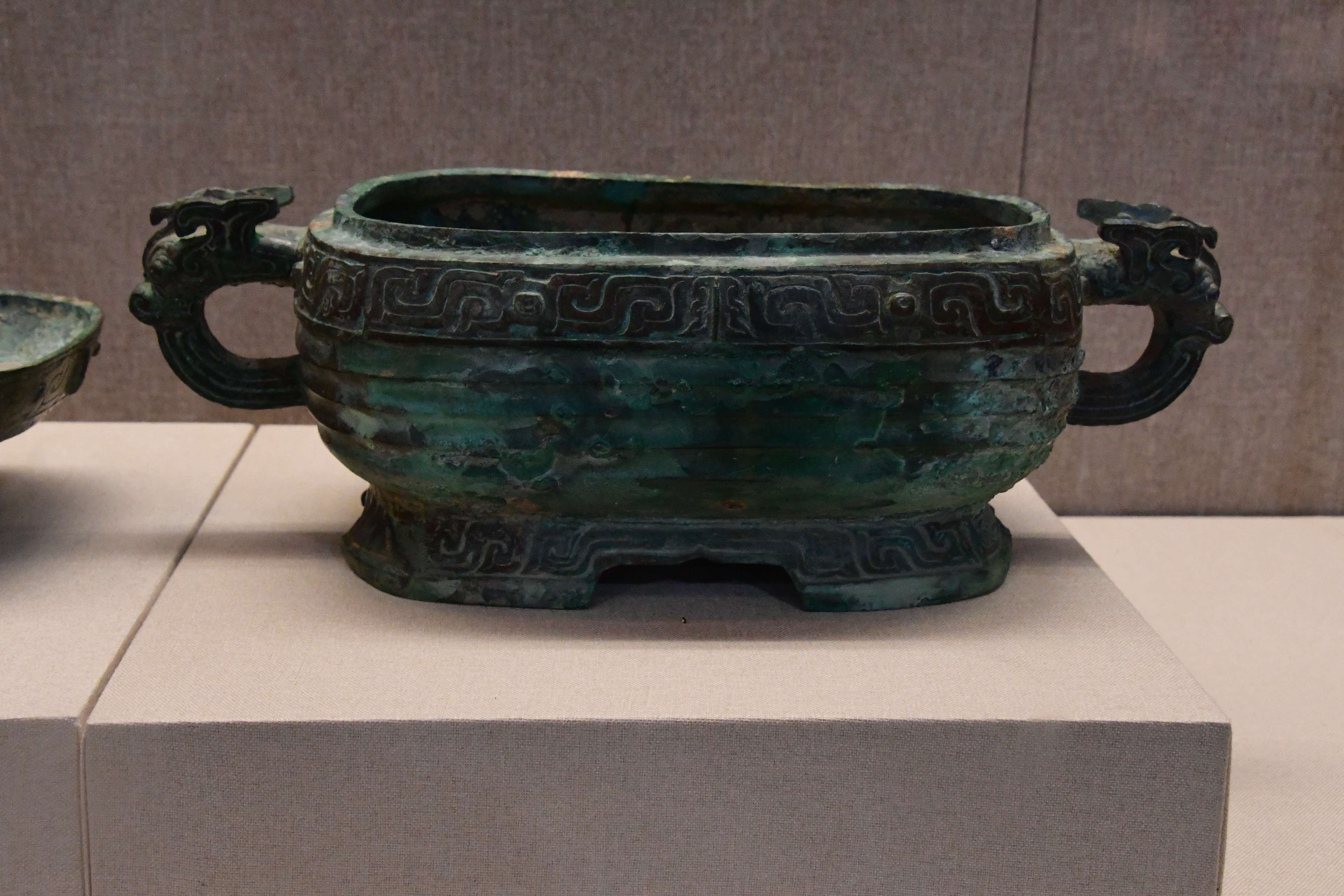 # 삼문협 괵국박물관에서 대여하여 전시하며, 삼문협시 상촌령 괵국묘지 M2009 괵중 묘에서 출토되었다. 해당 궤의 몸체는 타원형이며, 입구는 약간 오므라져 있고, 배가 불룩하며 굽(권족)이 있다. 짐승 머리 모양의 두 귀가 달려 있고, 굽의 한가운데에는 호형(부채꼴)으로 파인 부분이 있다. 뚜껑은 볼록하게 솟아올라 있어 분리하여 내려놓을 수 있으며, 위에는 서로 연결되지 않은 네 개의 날개 모양 고리(뉴)가 있다. 고리 위에는 머리를 돌린 기룡문이 장식되어 있고, 뚜껑 가장자리와 그릇의 입구 테두리, 그리고 굽에는 모두 S자 형태의 절곡문(절곡된 무늬)이 장식되어 있다. 뚜껑의 상단과 그릇의 배 부분에는 와롱문(기와골 무늬)이 장식되어 있다.