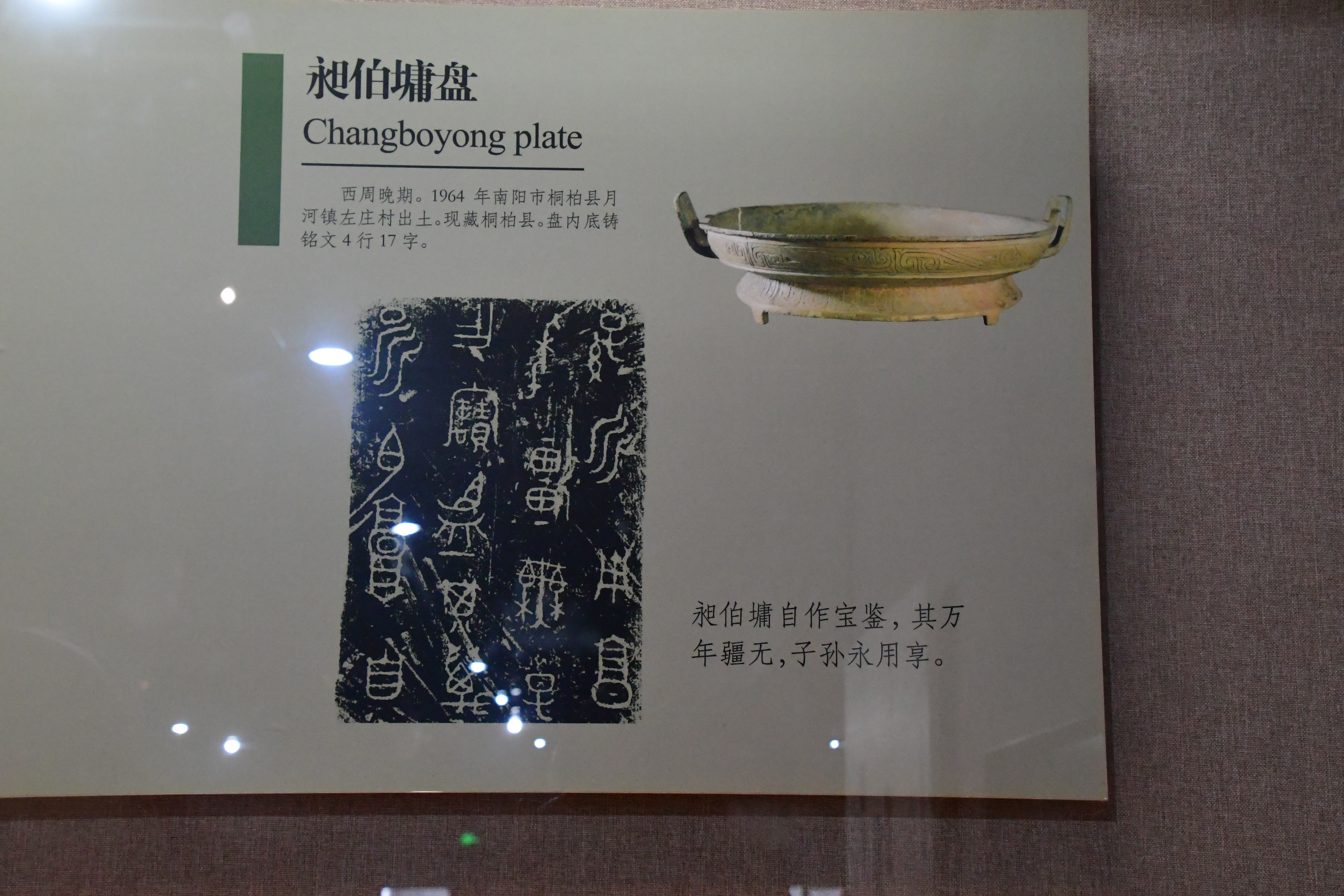 - 서주 말기 유물이다. 1964년 남양시(南陽市) 통백현(桐柏縣) 월하진(月河鎮) 좌장촌(左莊村)에서 출토되었다. 현재 통백현에 소장되어 있다. 반(盤, 대야 모양 그릇)의 안쪽 바닥에는 4행 17자의 명문이 주조되어 있다.