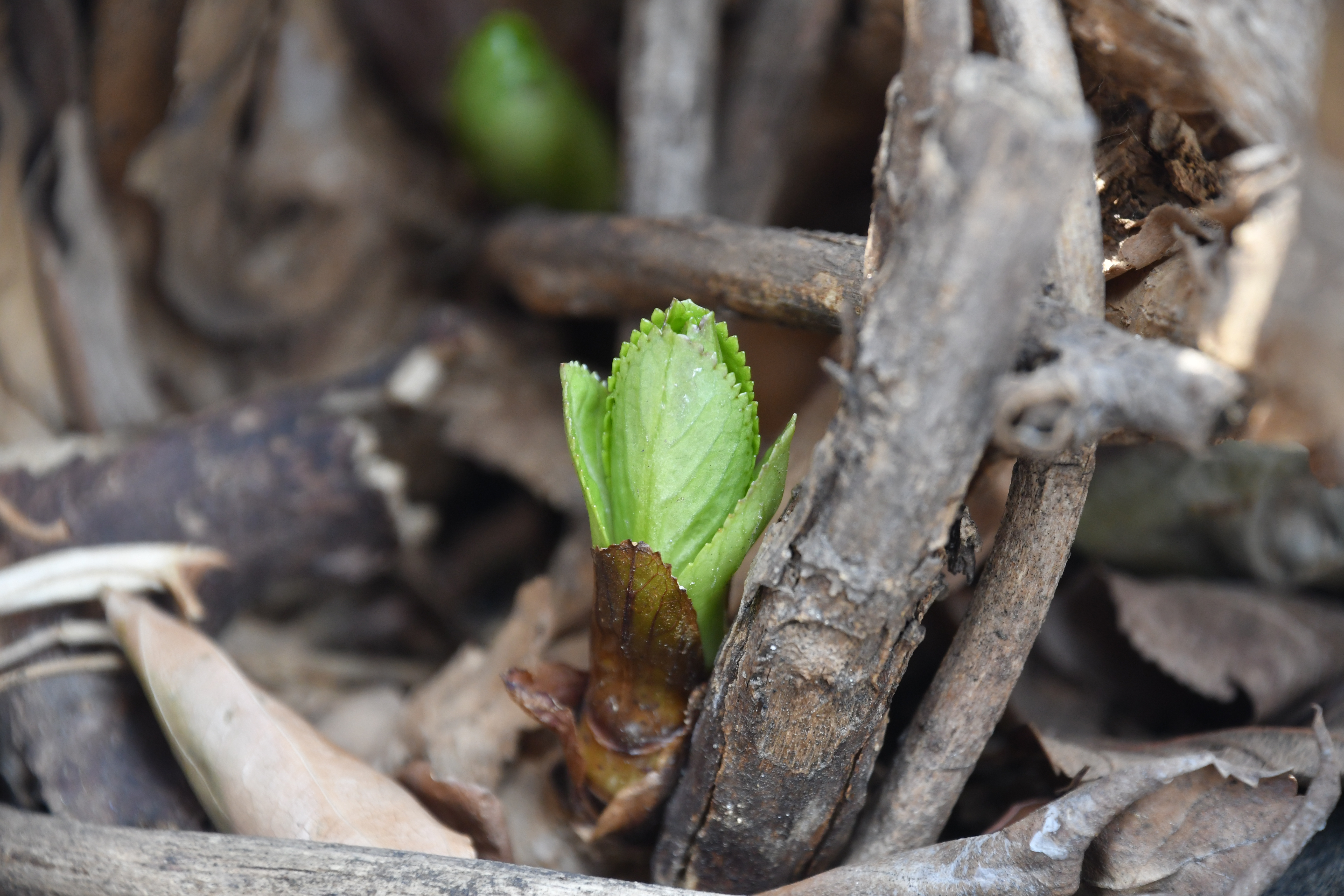 - 불두화에 정신을 팔려 잠시 잊고 있었던 수국 가지에서 새싹이 돋았다.