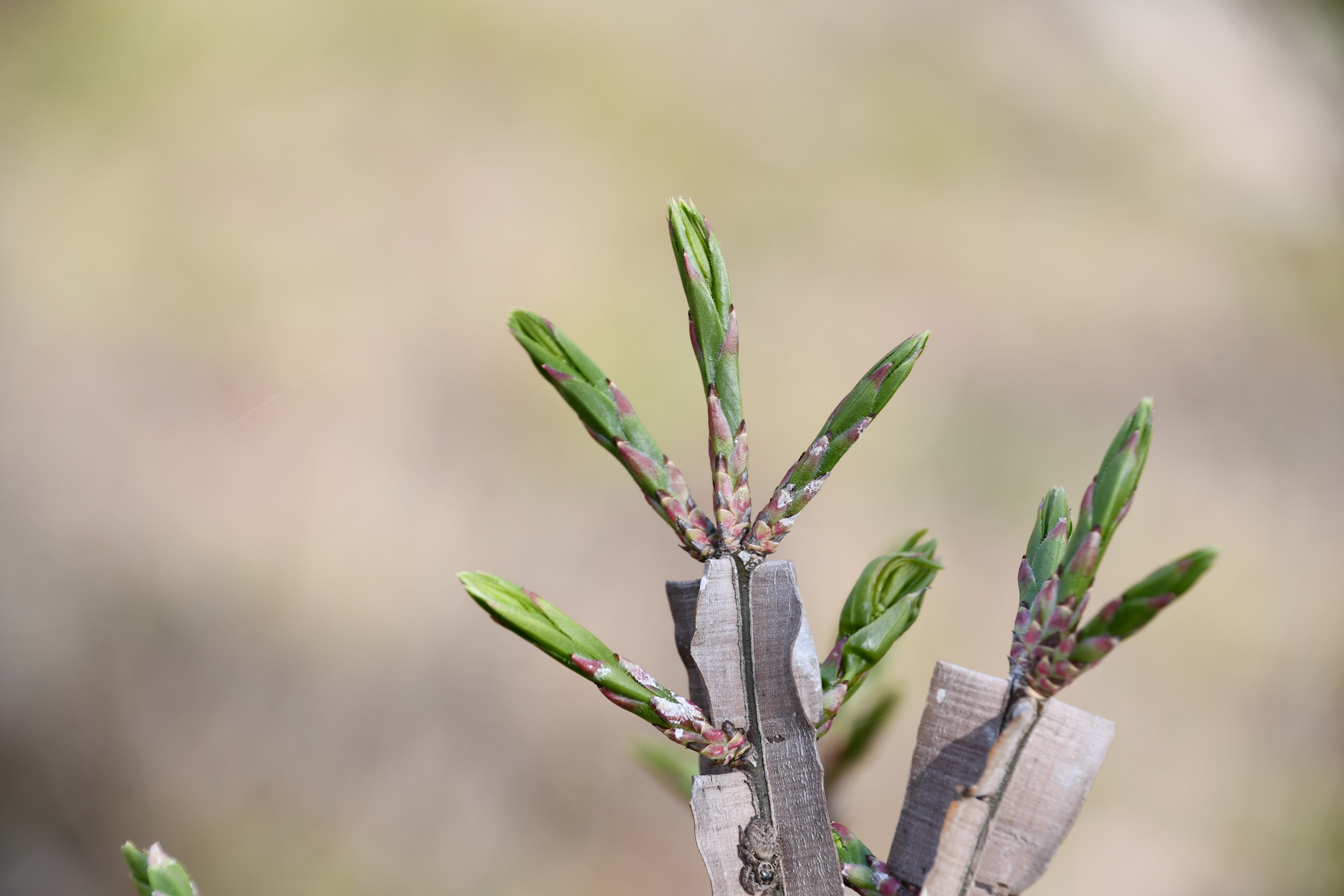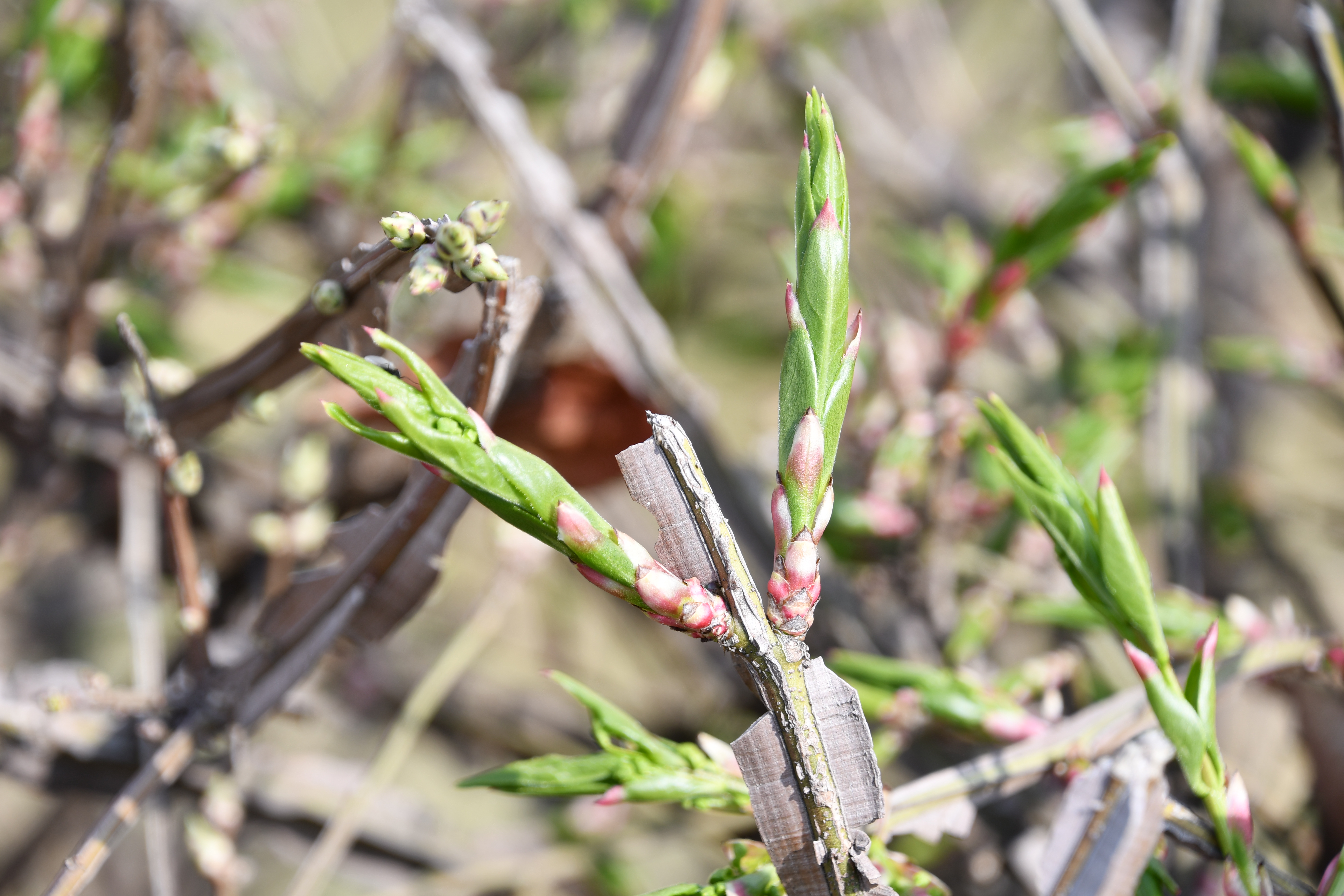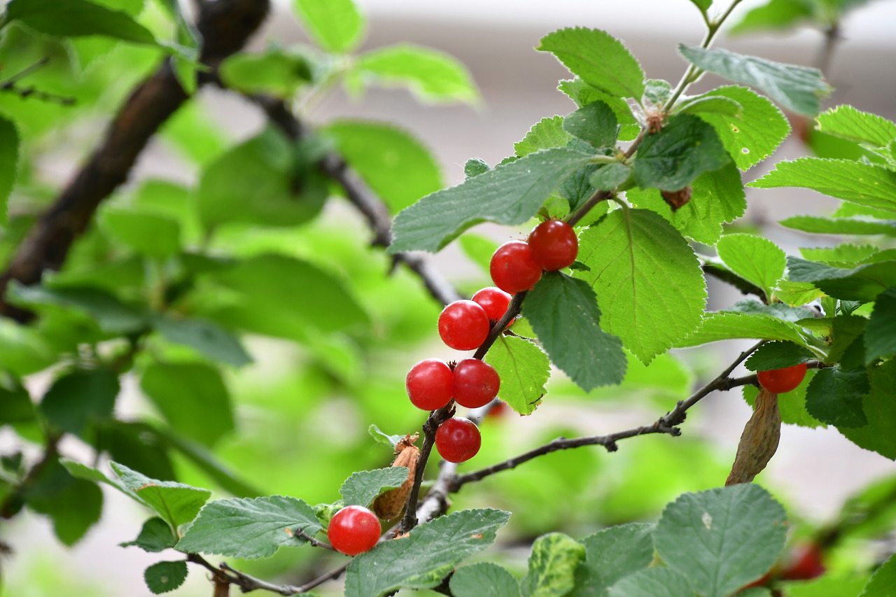 - 한쪽 가지에는 열매가 달려 있고, 다른 한쪽에서는 연록색 새순이 돋는다.
