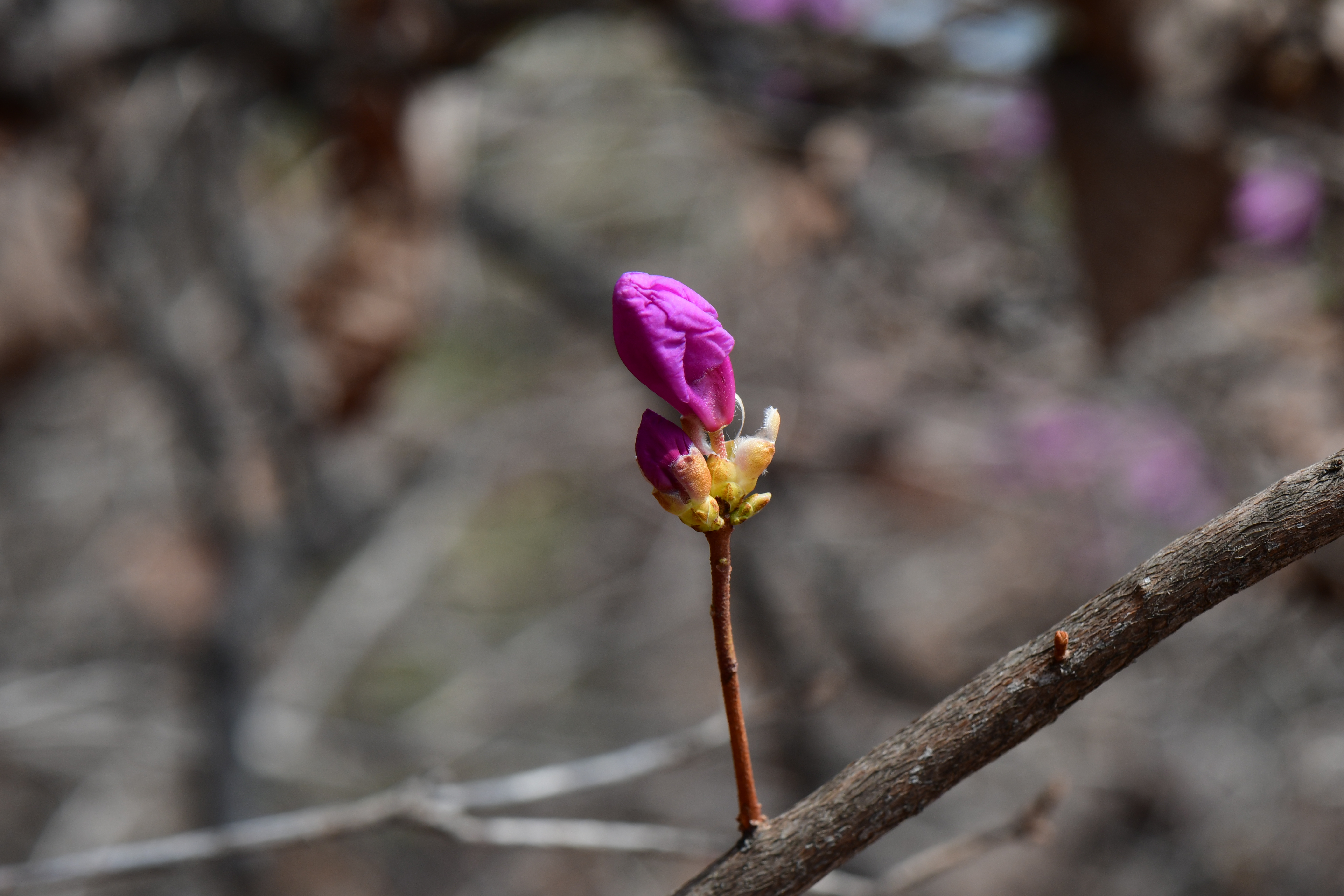 - 이틀 전에 산에 갔을 때는 아무 소식도 없었는데, 오늘 아침에 올라갔더니 몽오리가 반쯤 고개를 내밀었다. 다음주면 만개할 듯하다.