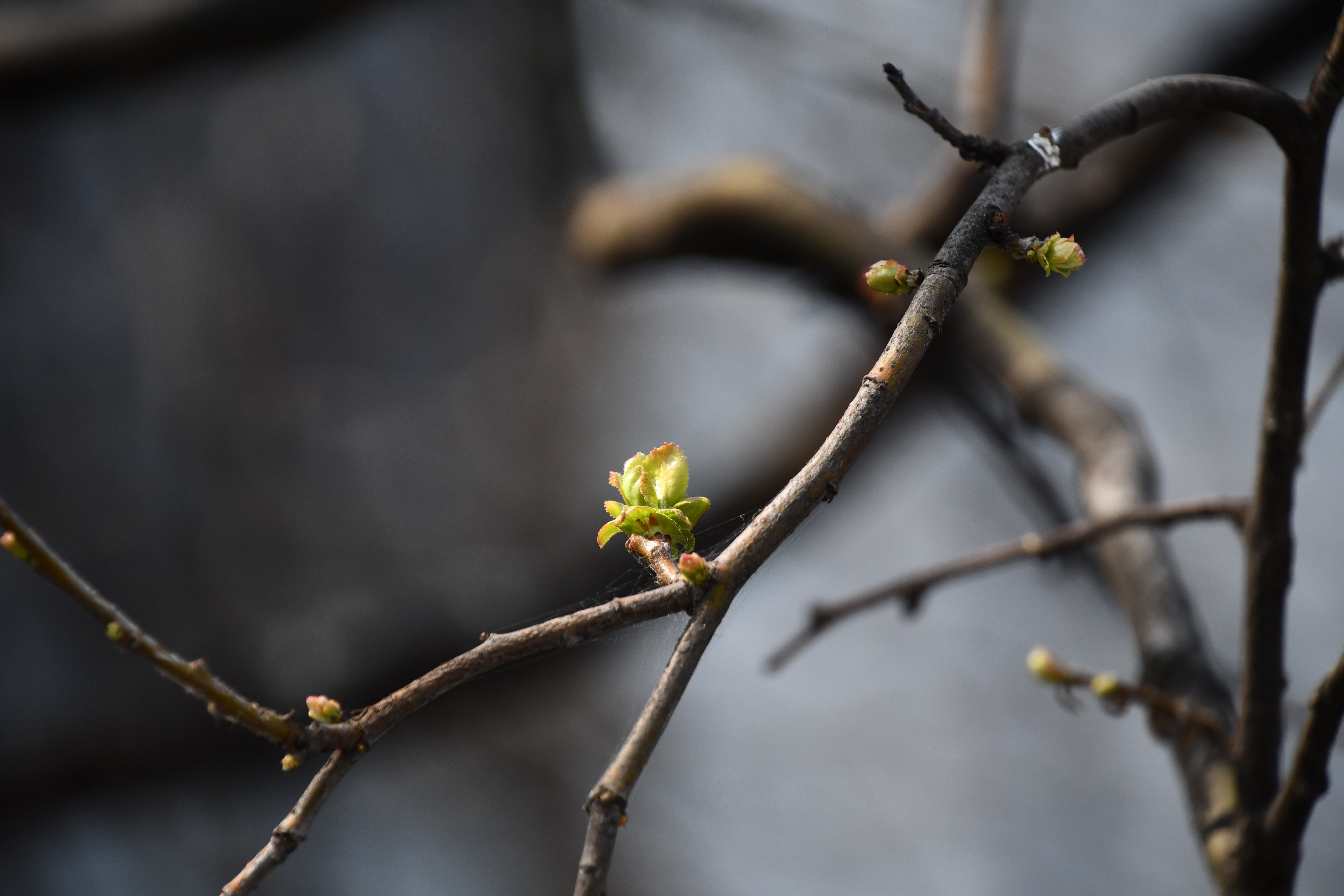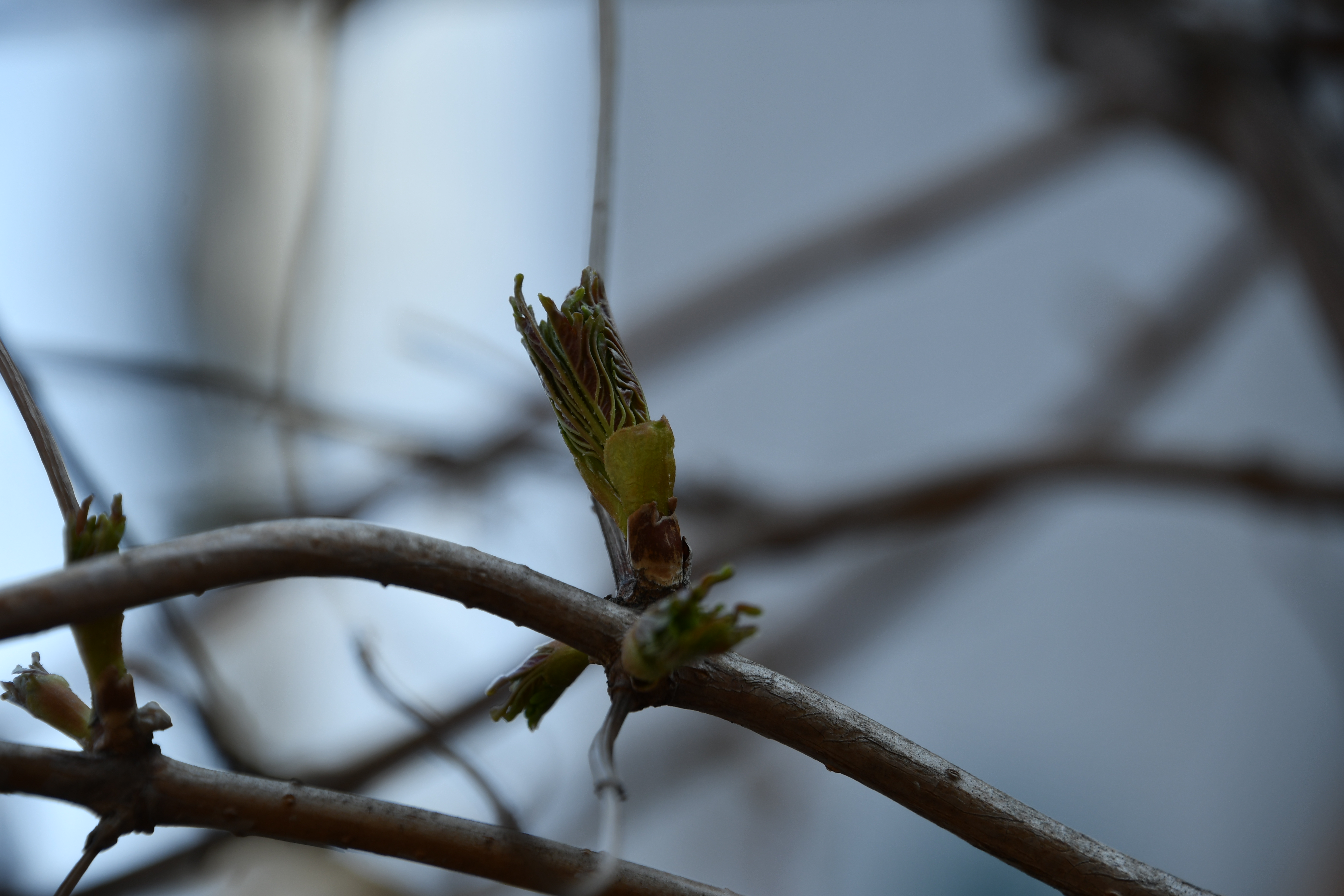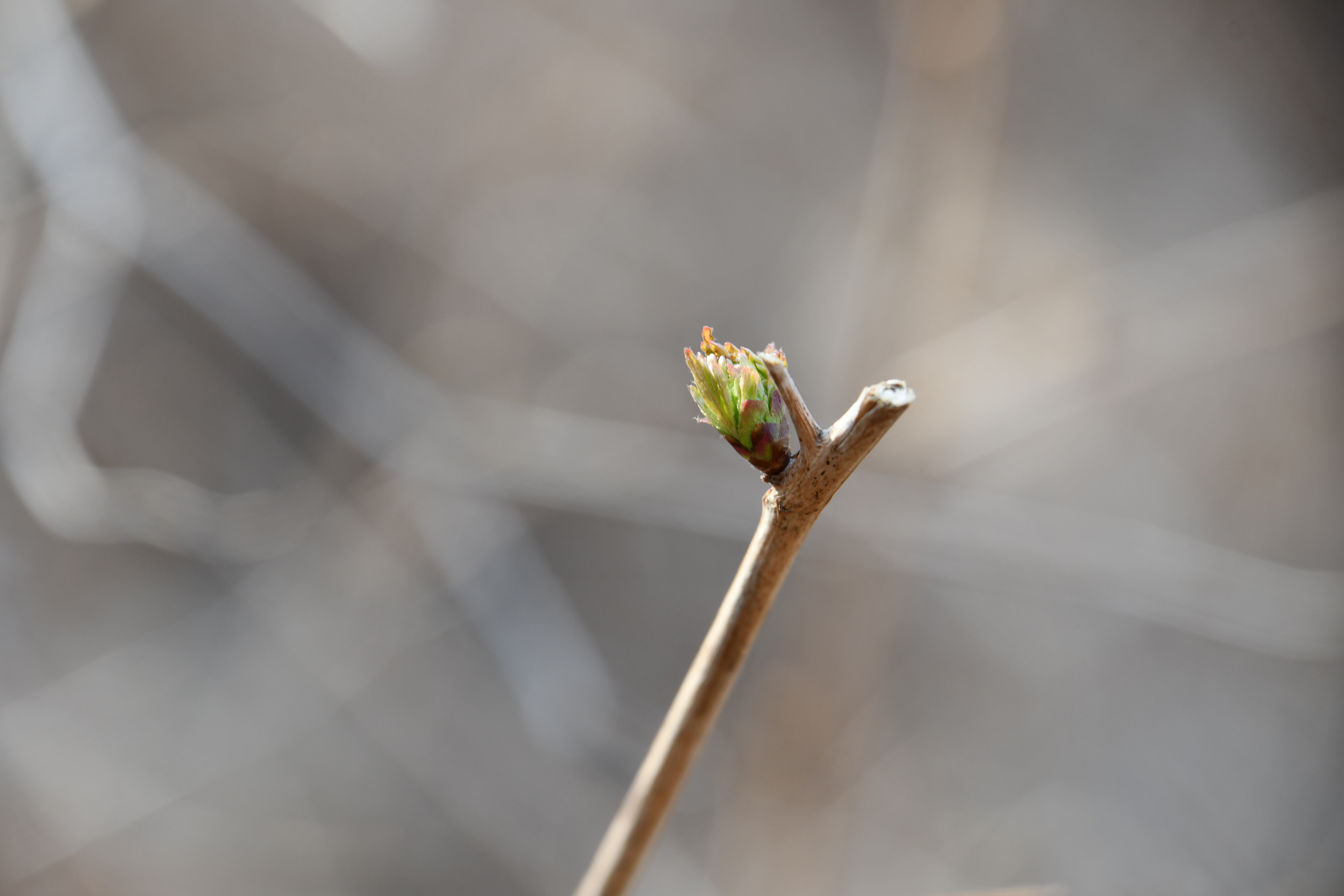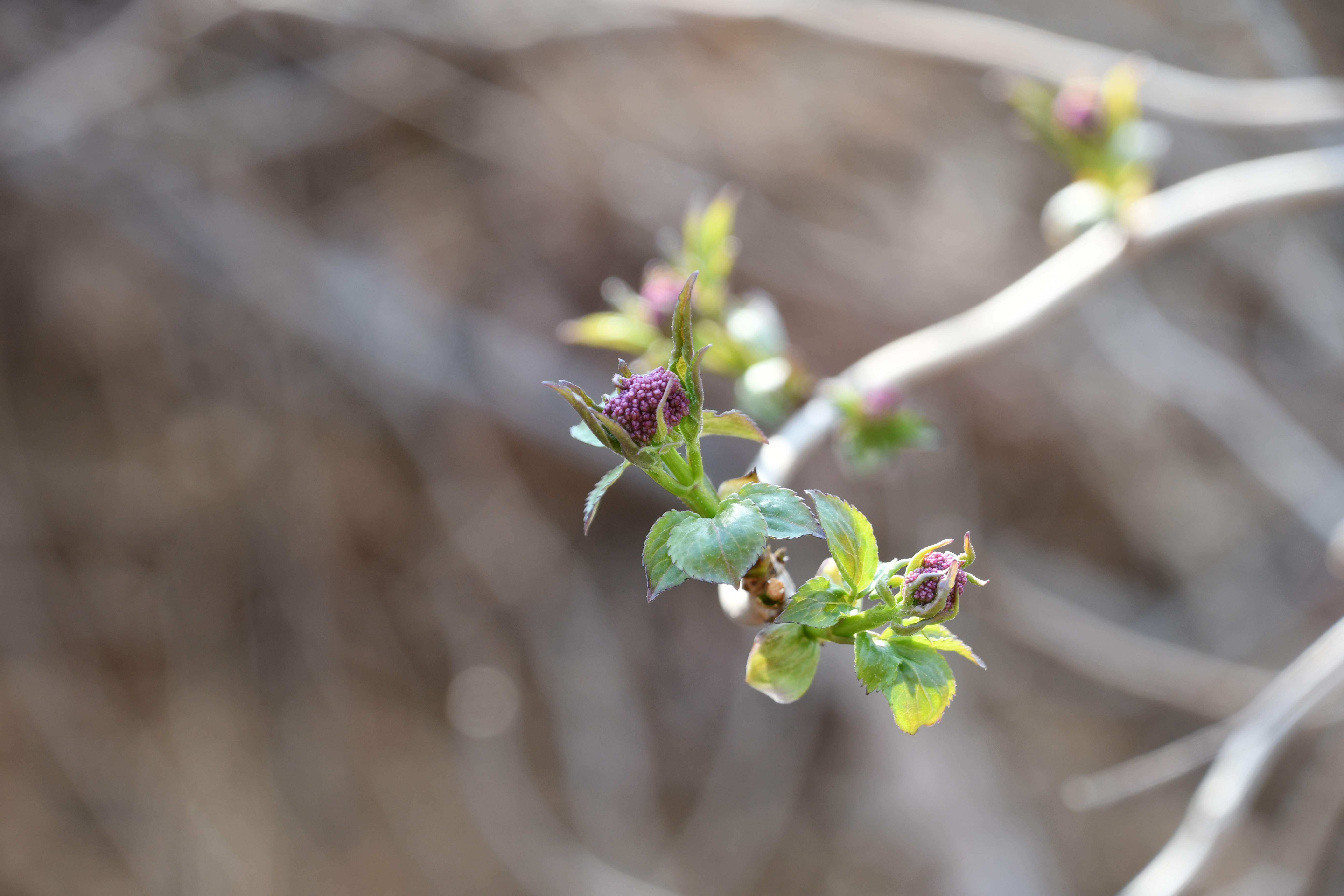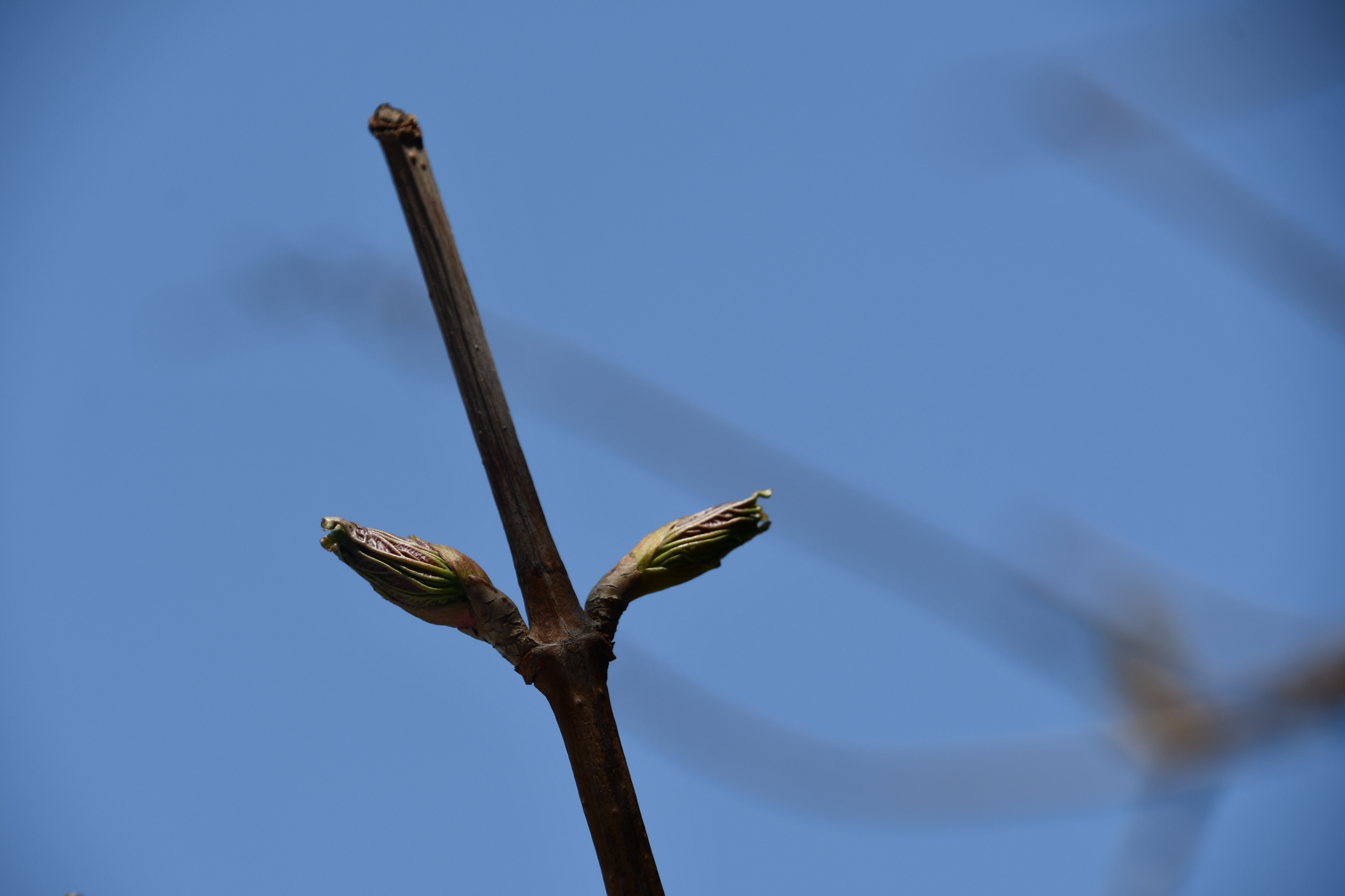 - 작년 열매와 새싹이 나란히 보인다.