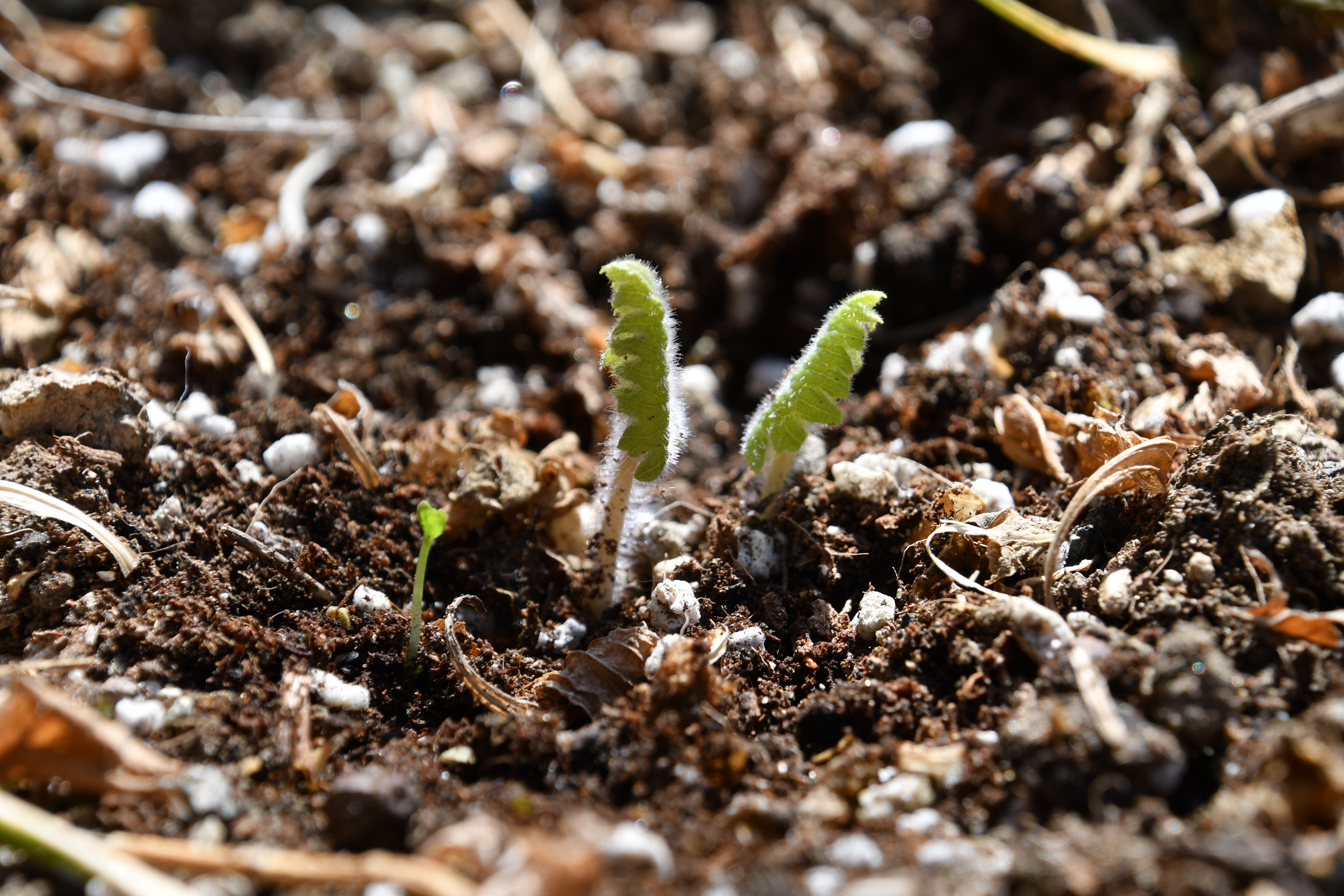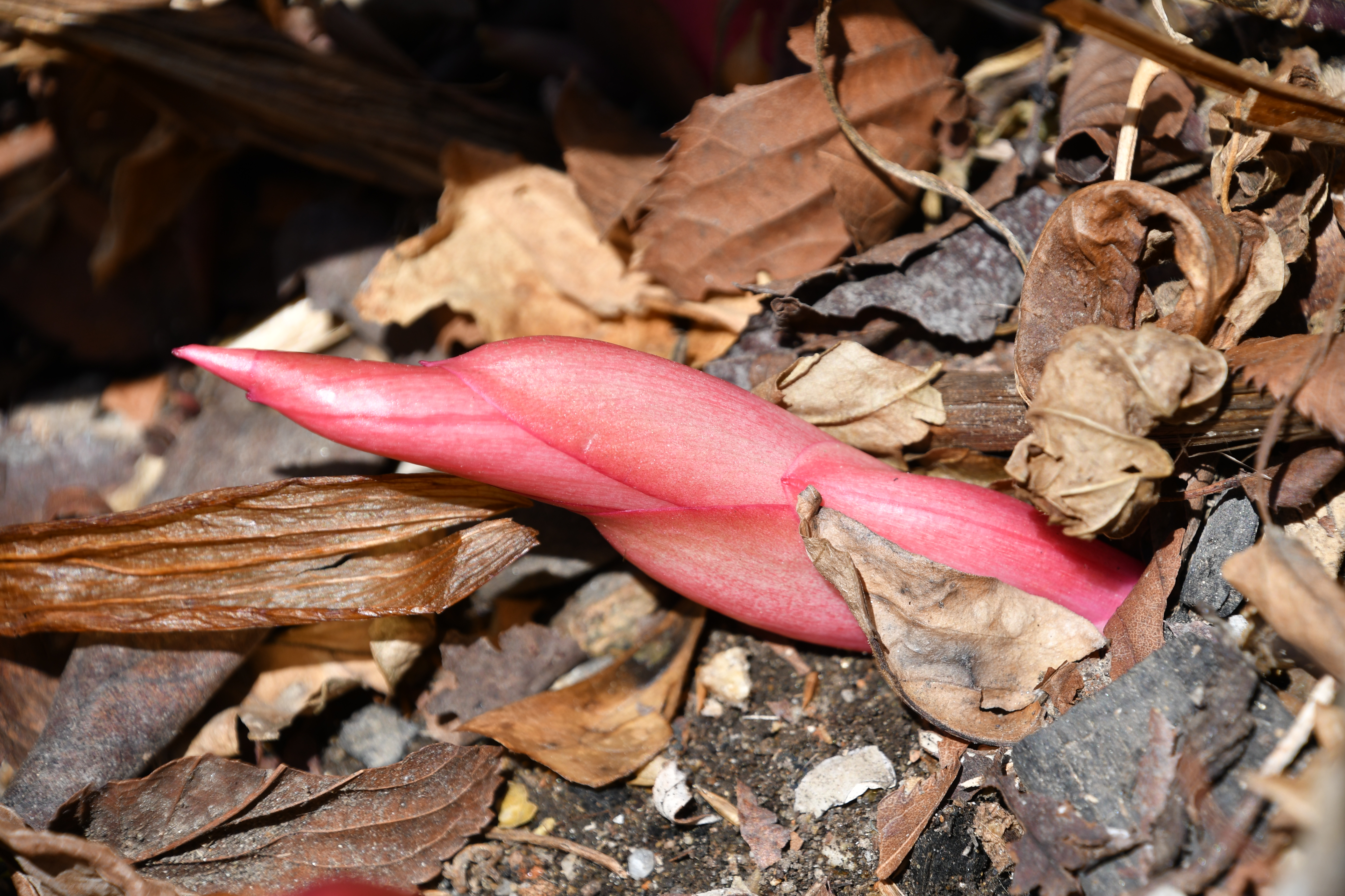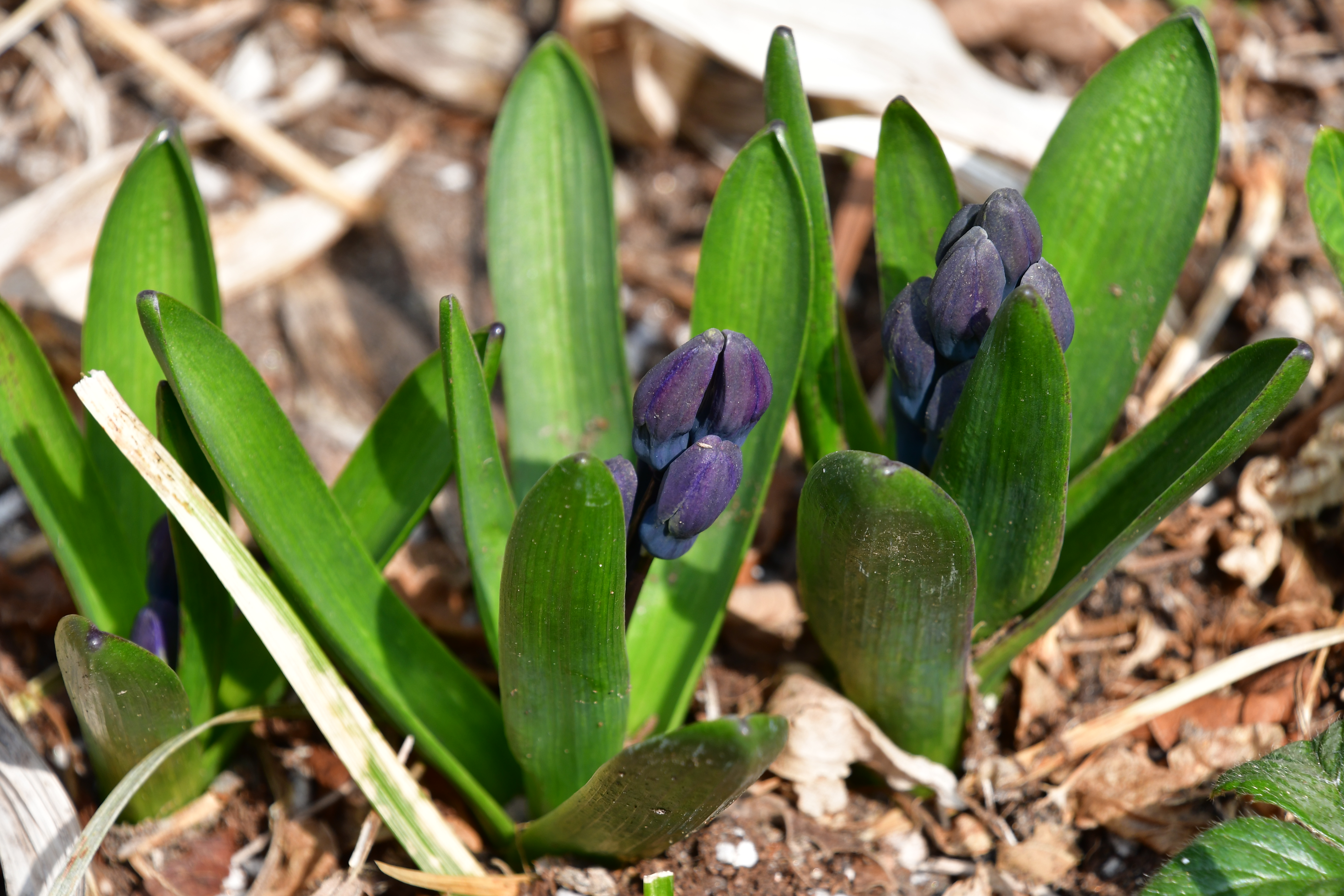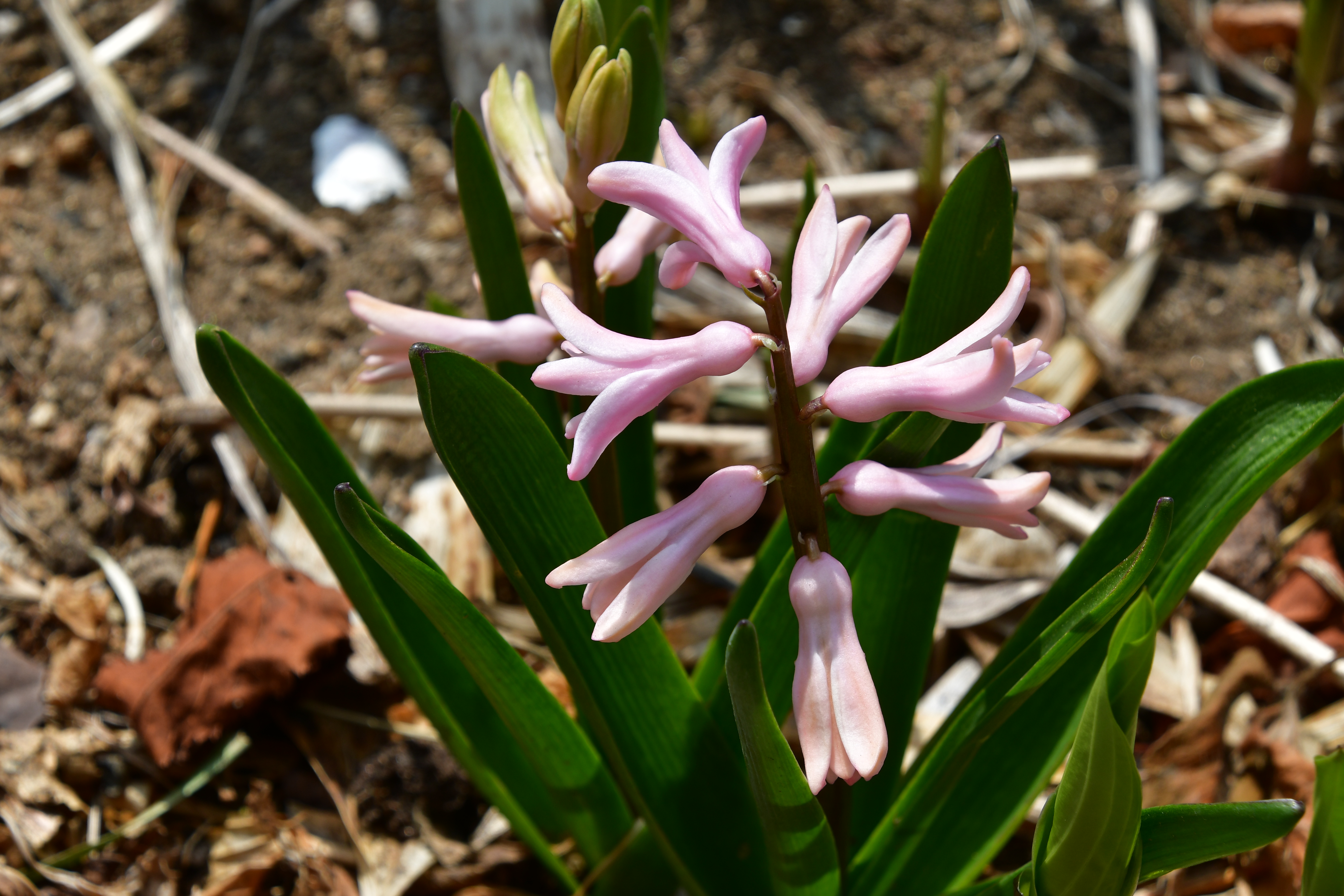 - 묵은 잎 사이로 새순이 돋았다. 포트에 심은 흔적이 그대로 남았다.