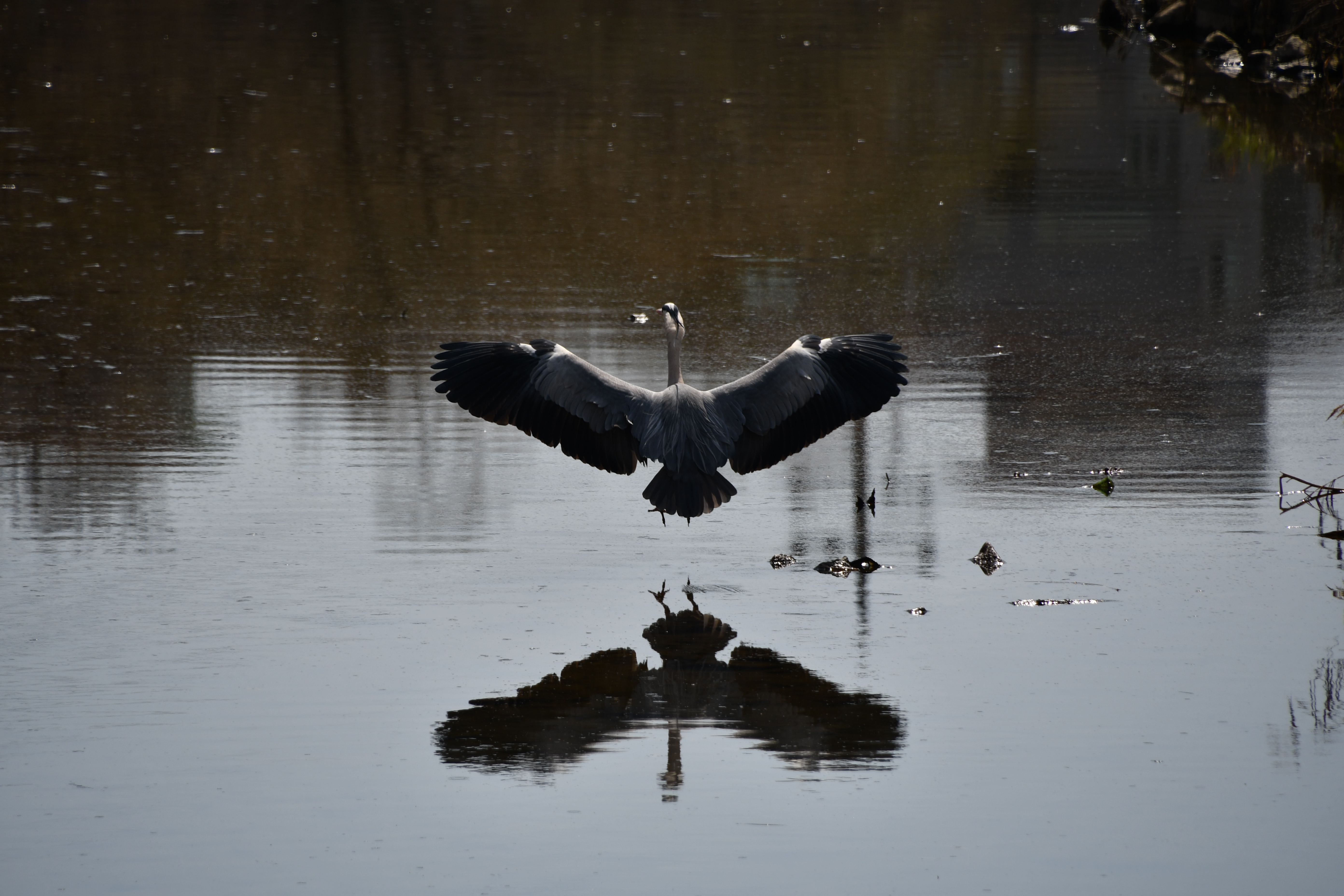 - 불광천에 착륙하는 왜가리.