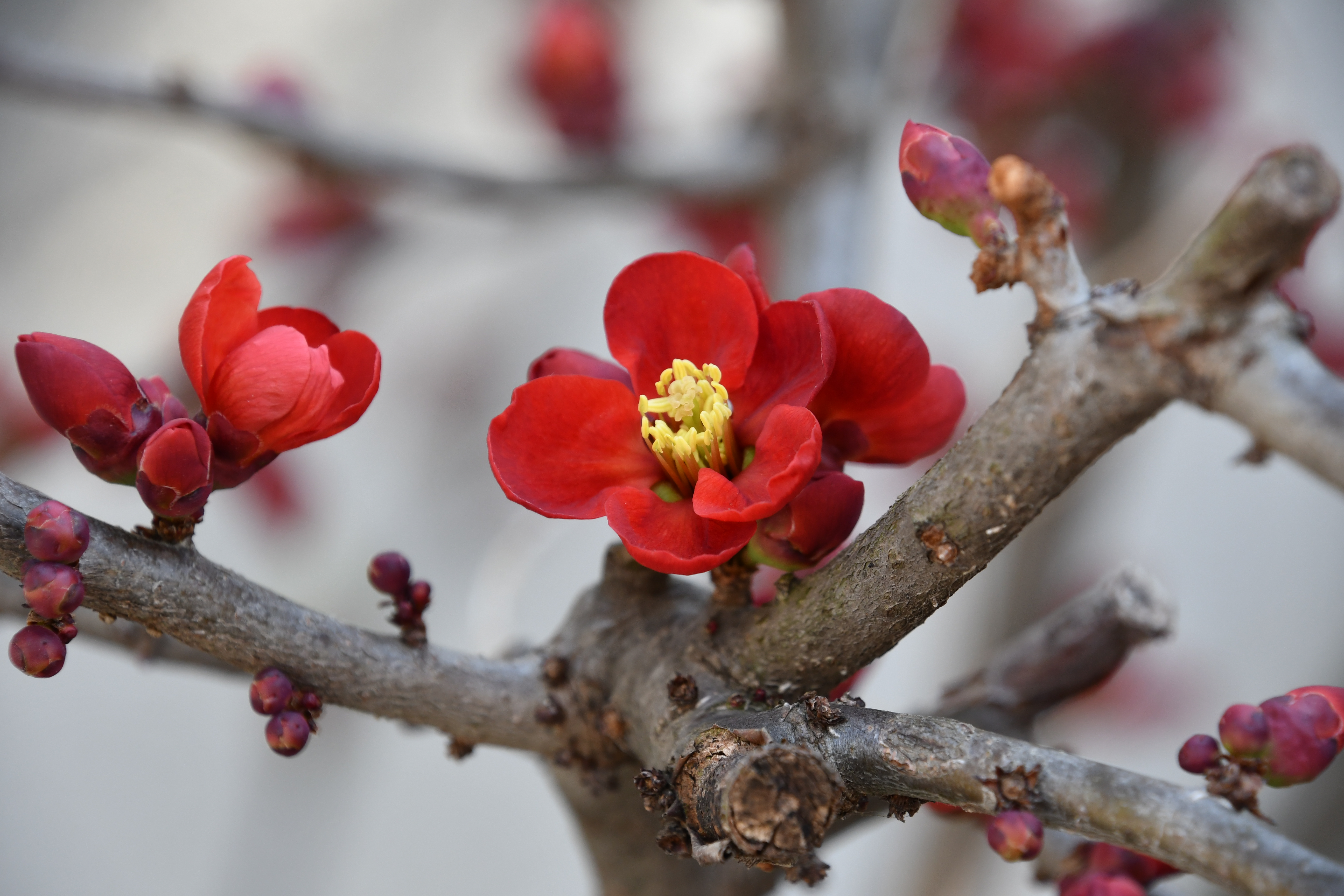 - 붉은 잎에 싸인 몽오리가 보이기 시작한다.