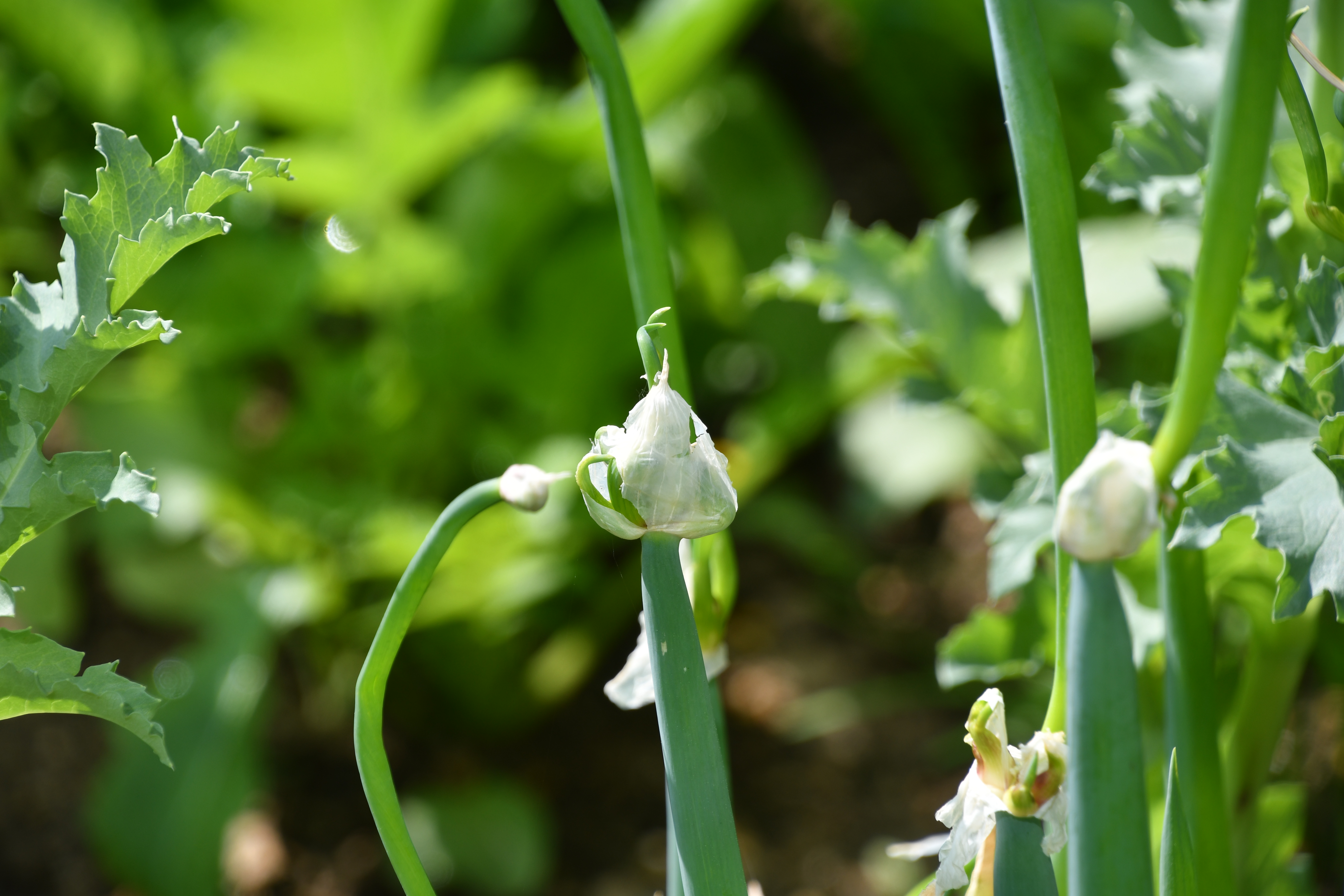 - 연녹색 파꽃이 몽오리 진다.