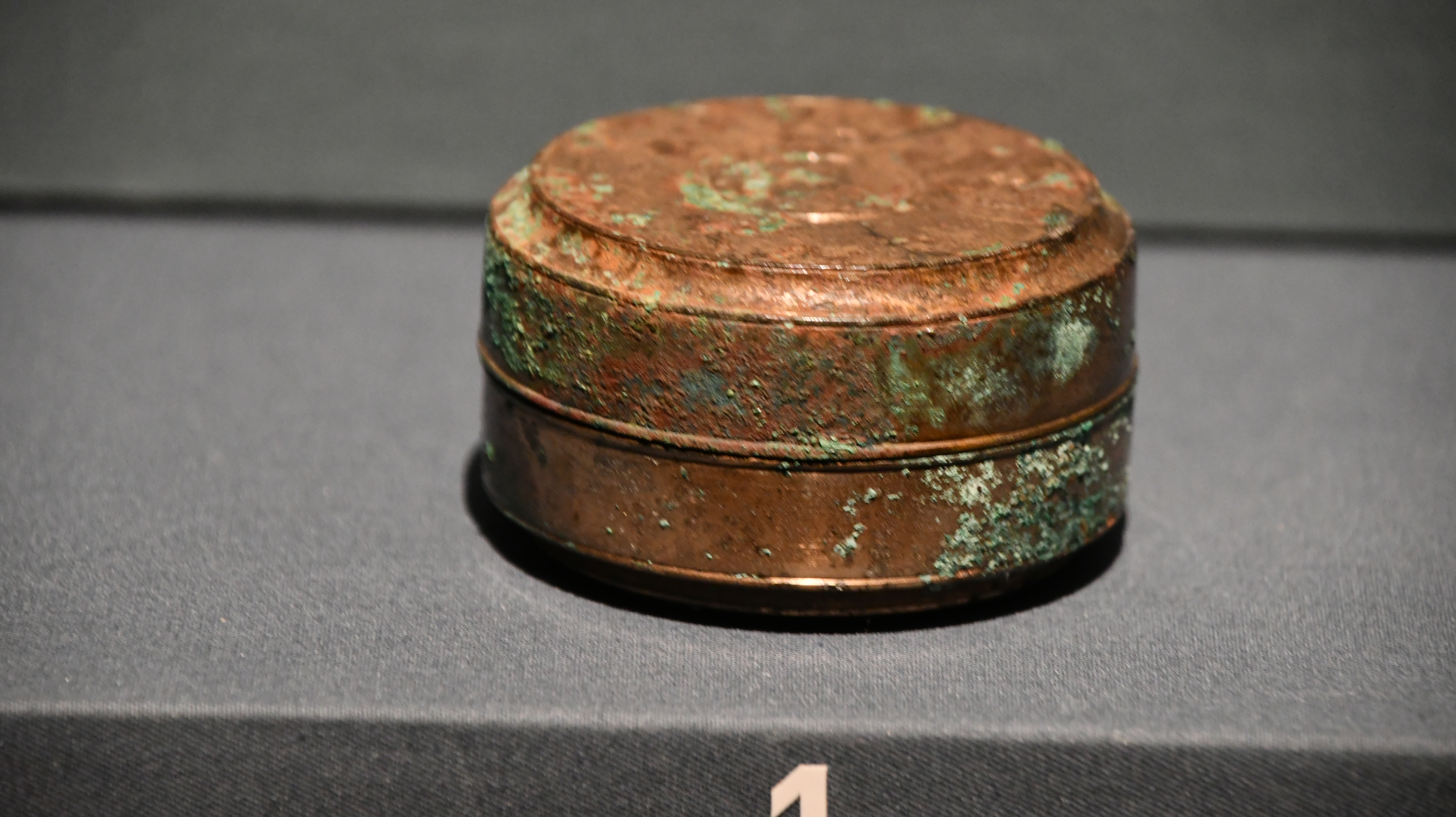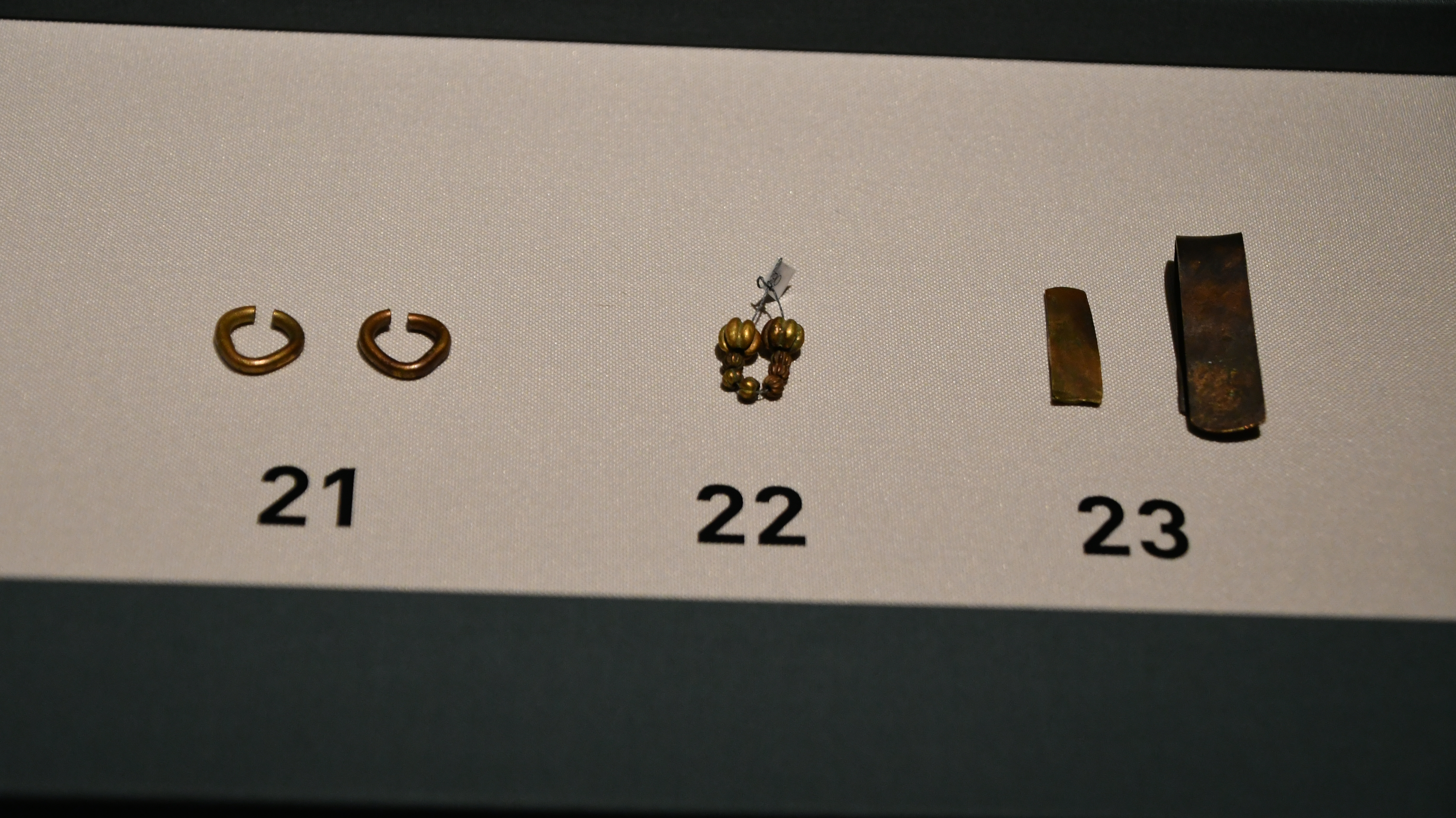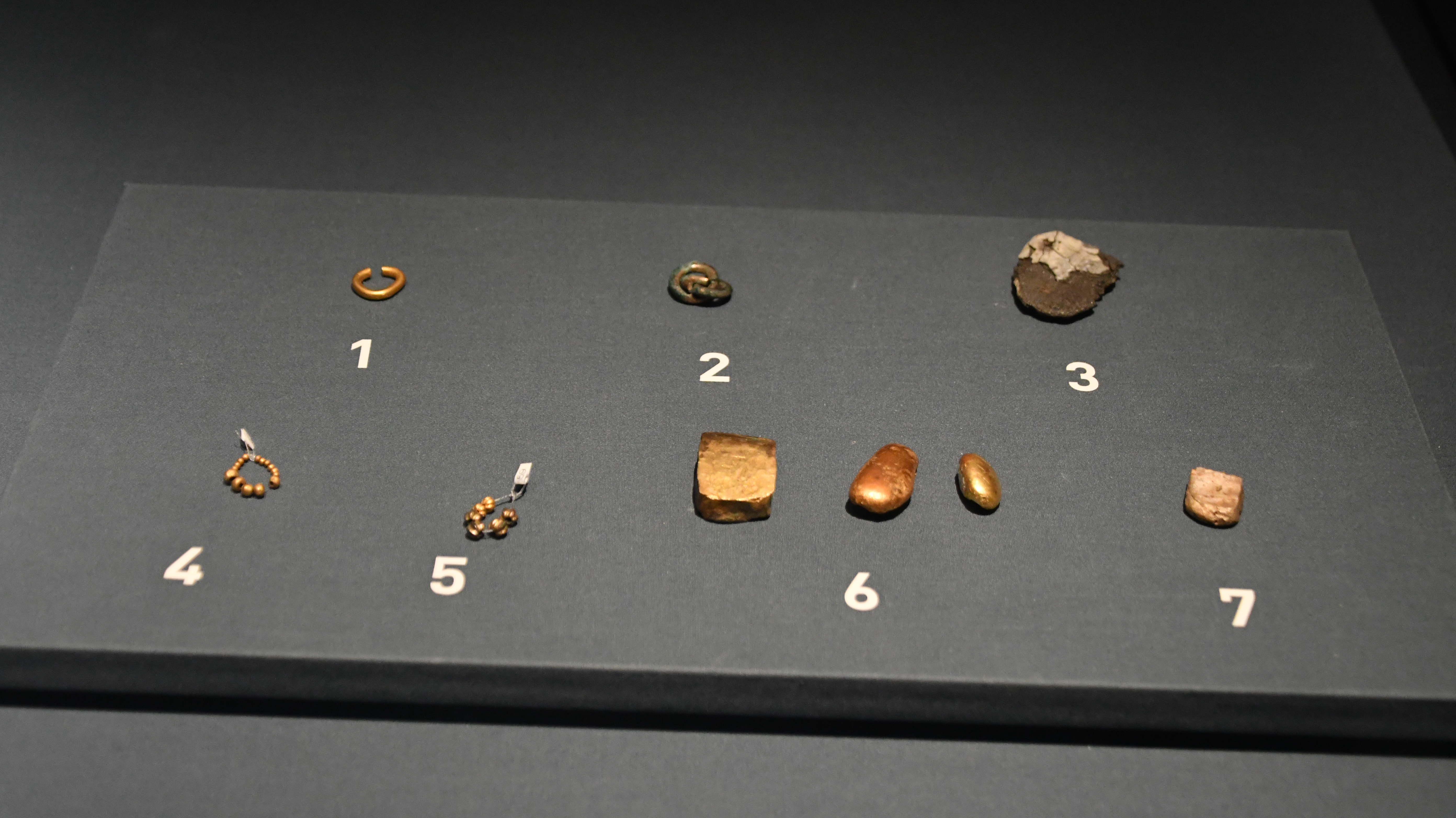 # 금제 내호 안에는 유리 구슬과 금구슬 등과 함께 유리 사리병이 담겨 있었다.