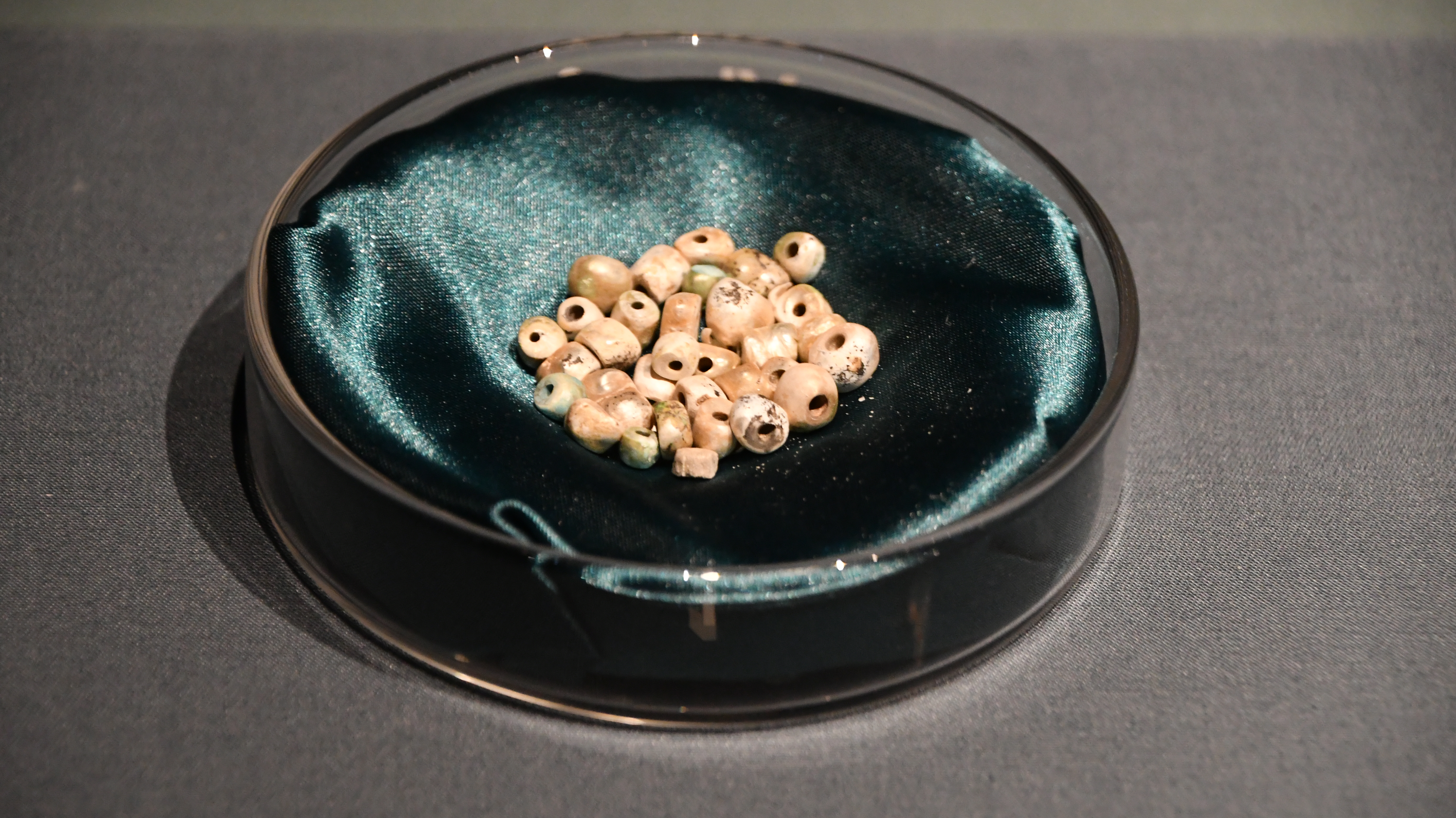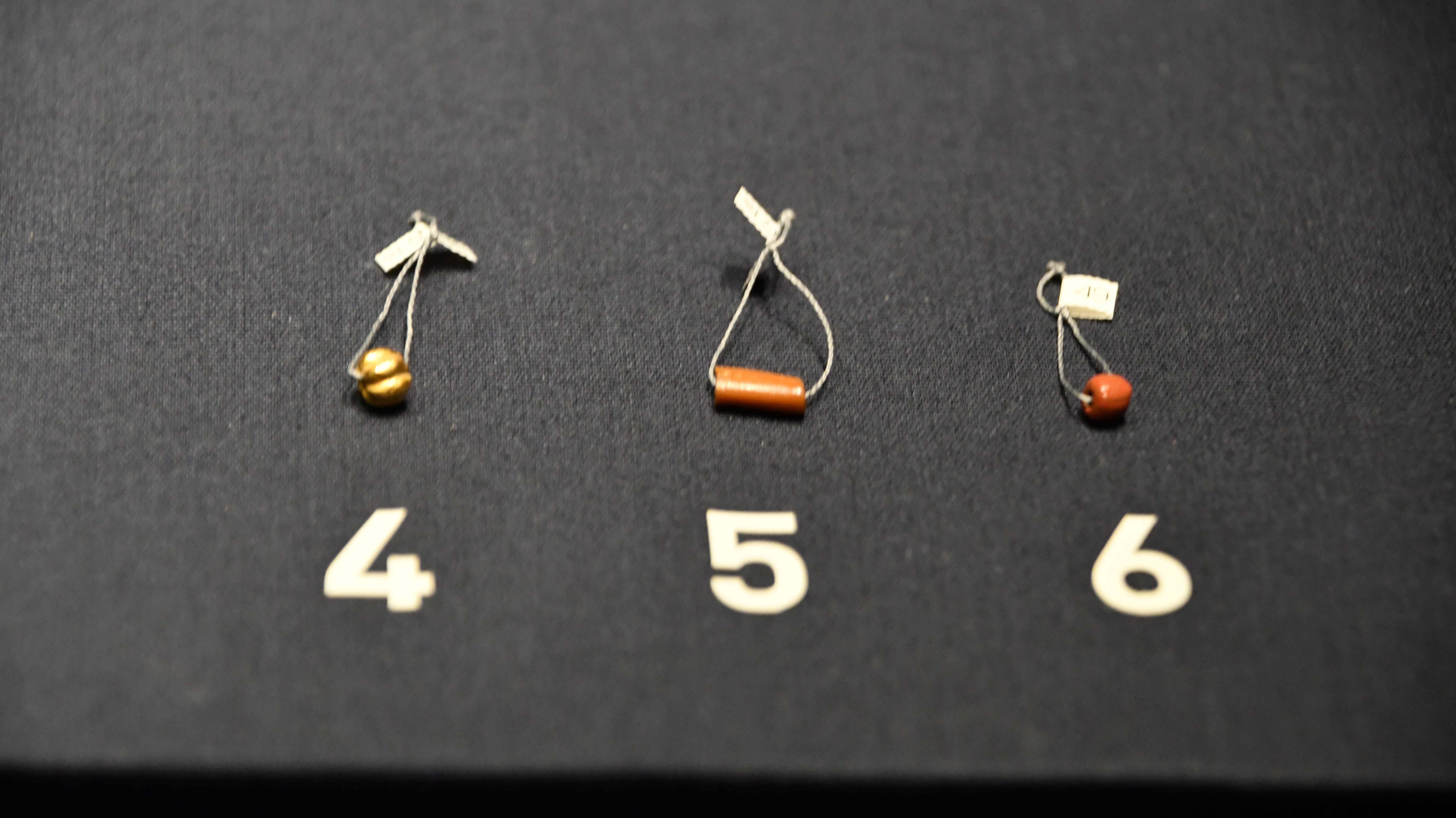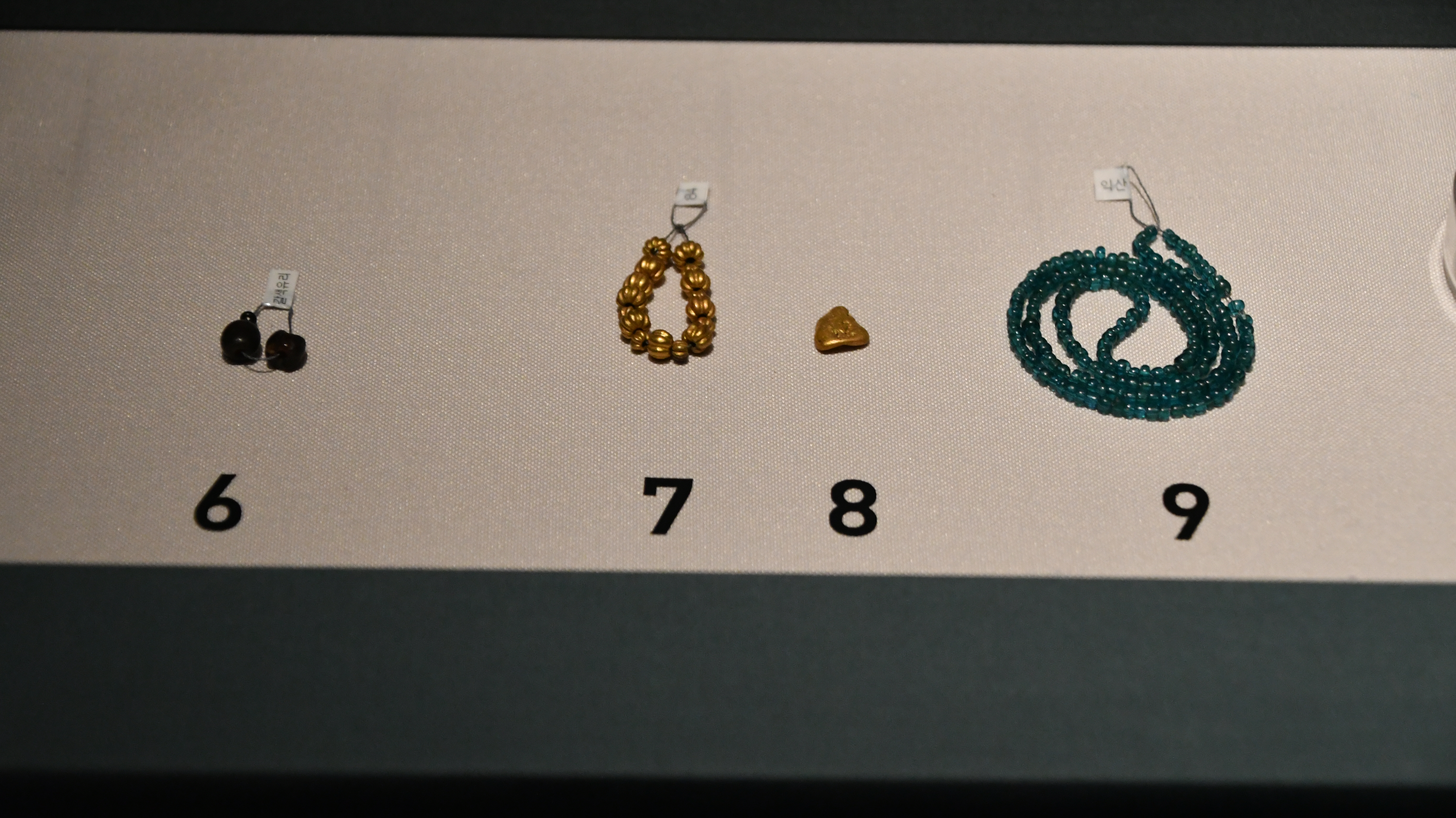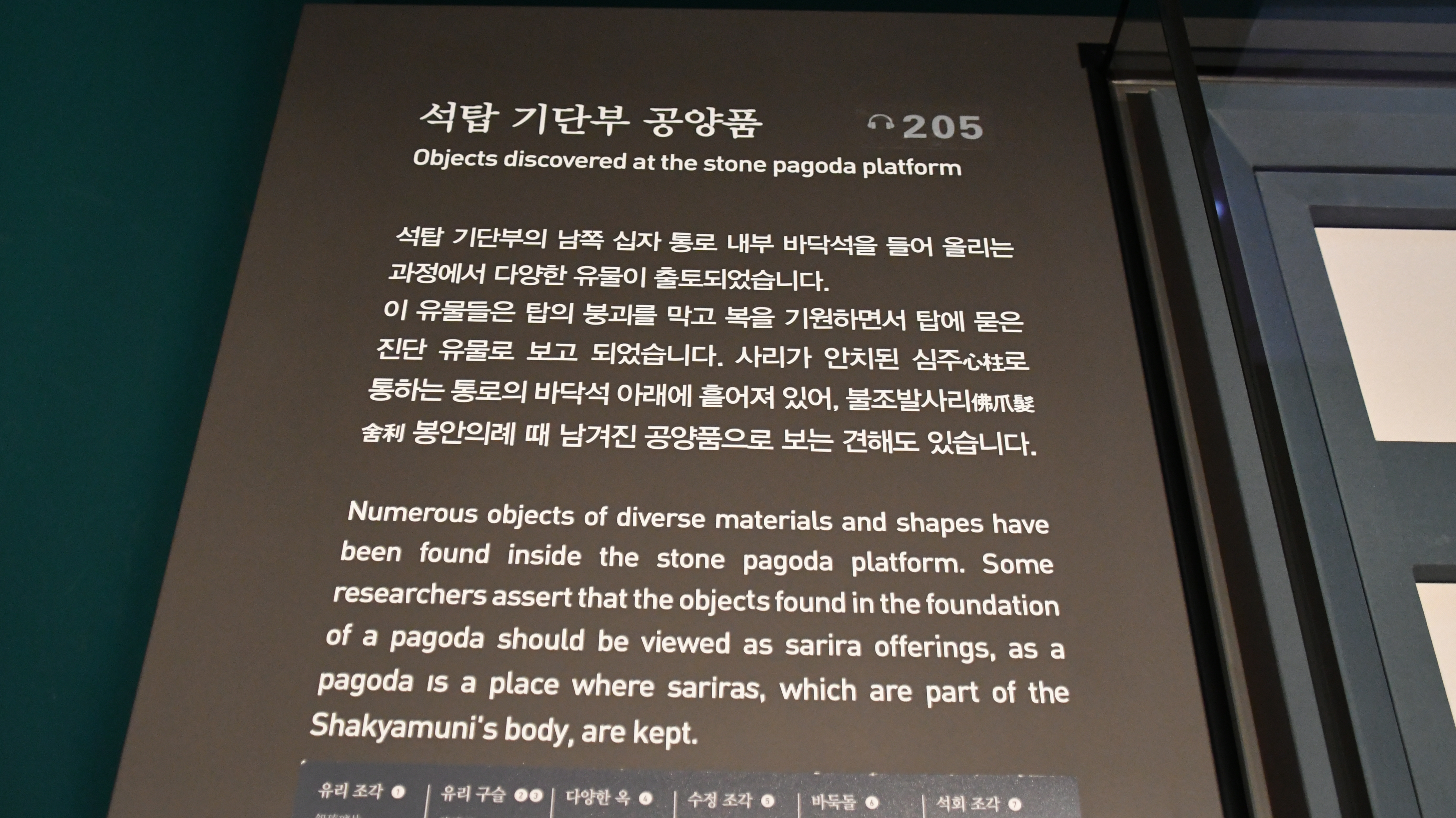 - 심주석 사리 구멍 안에서 566개의 유리 구슬이 나왔다. 구슬에는 구멍이 뚫려 있다.