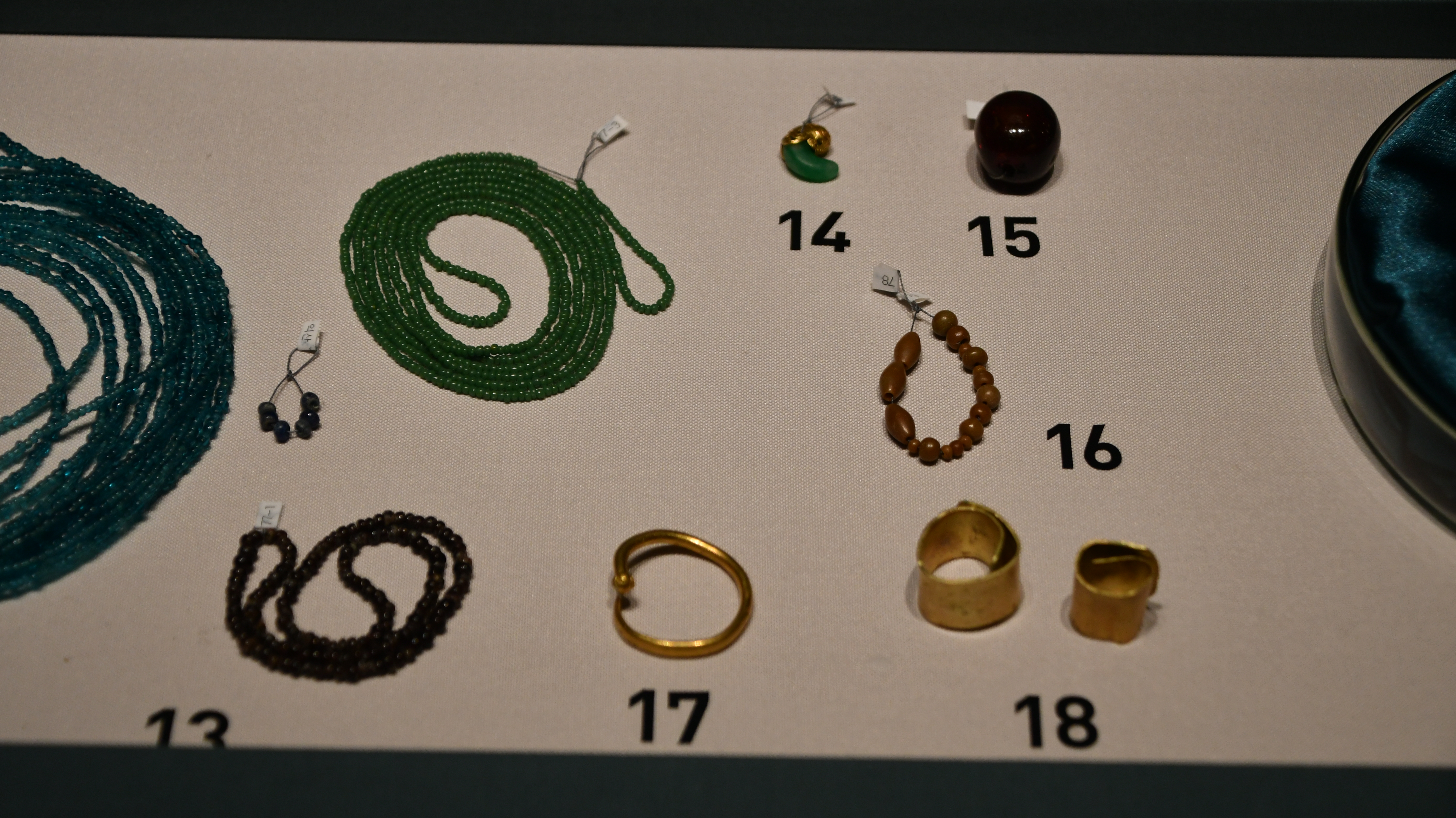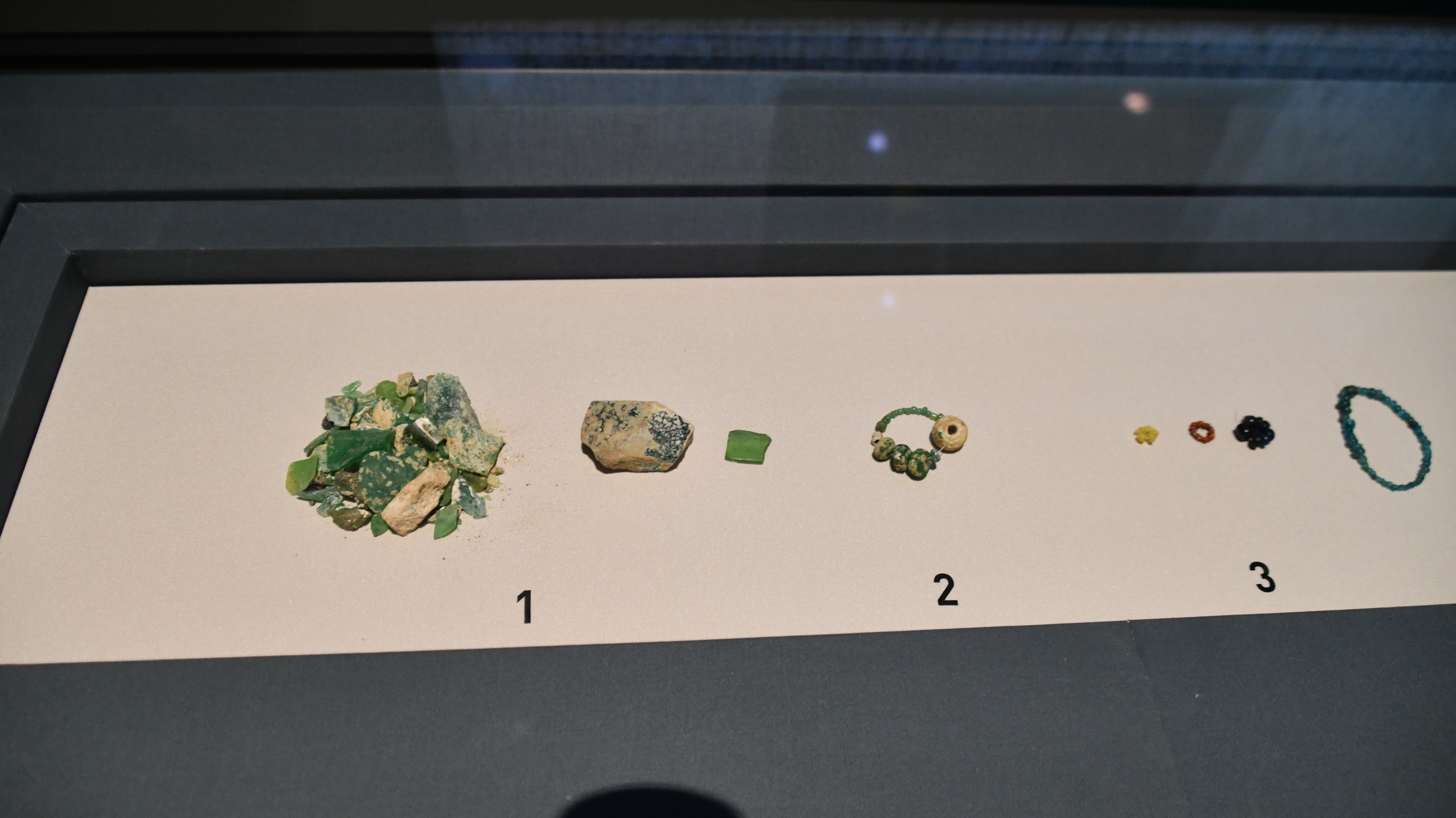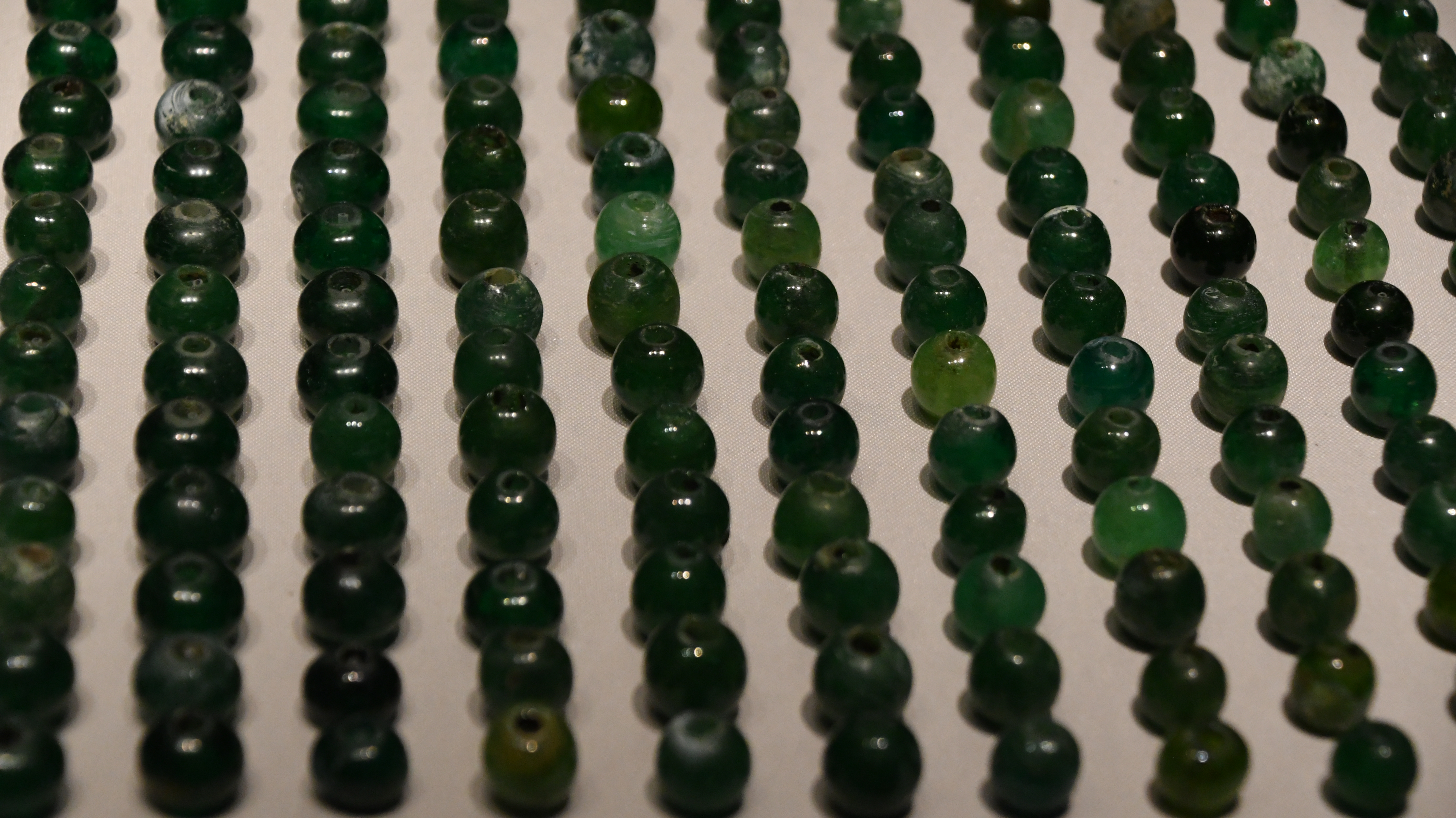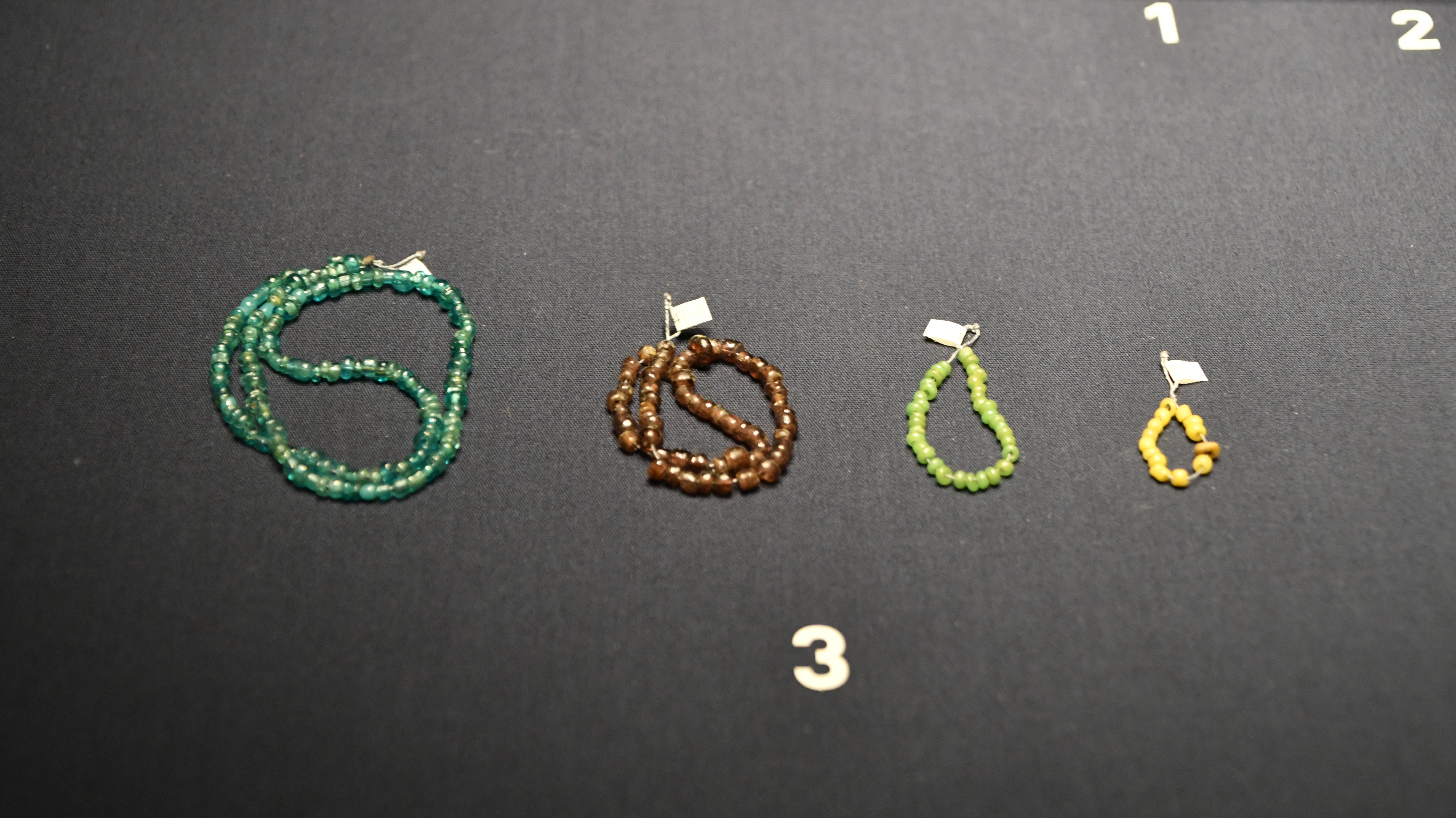 - 심주석 사리 구멍 안에서 566개의 유리 구슬이 나왔다. 구슬에는 구멍이 뚫려 있다.