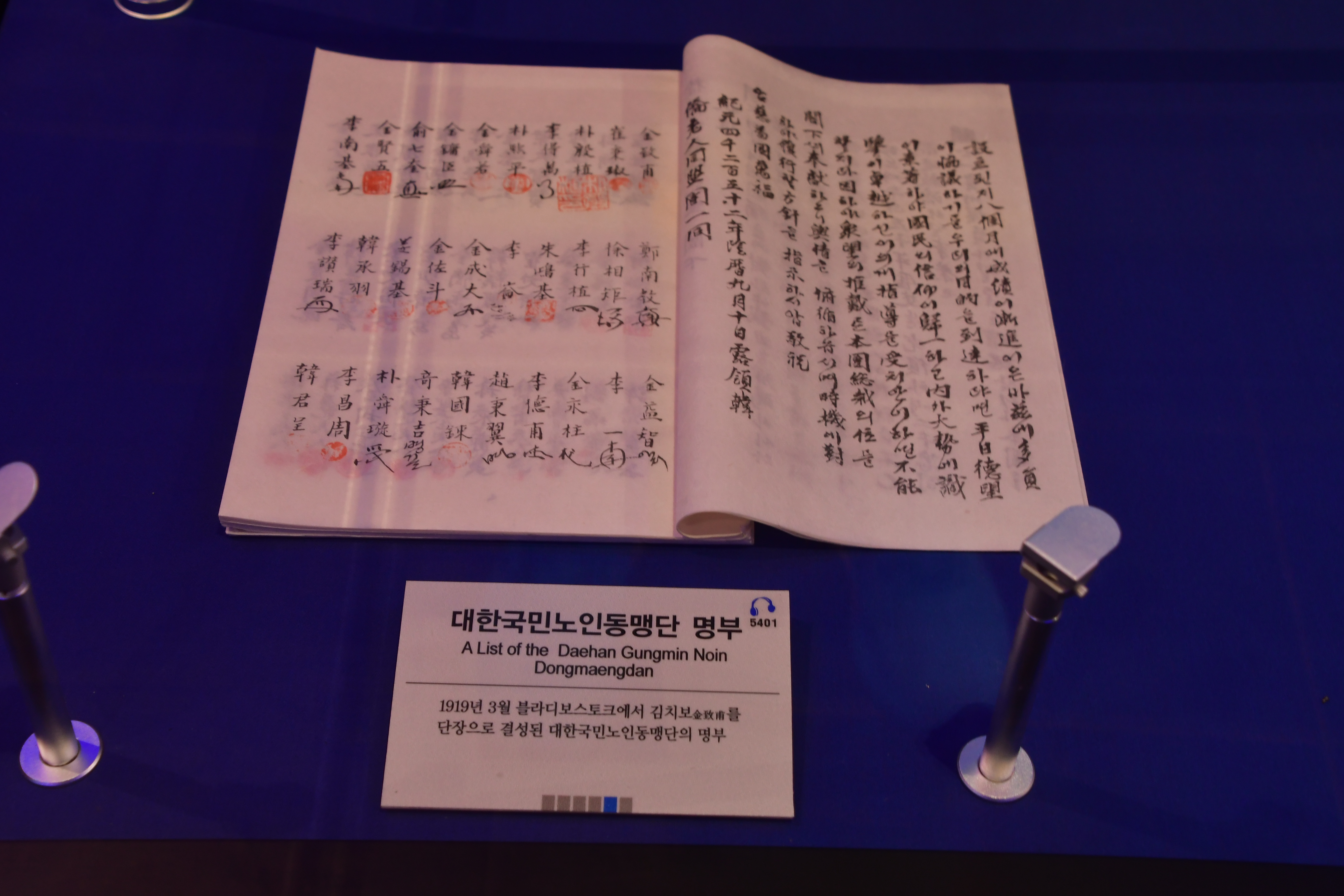 - 1919년 3월 블라디보스토크에서 김치보金致甫를 단장으로 결성된 대한국민노인동맹단의 명부.