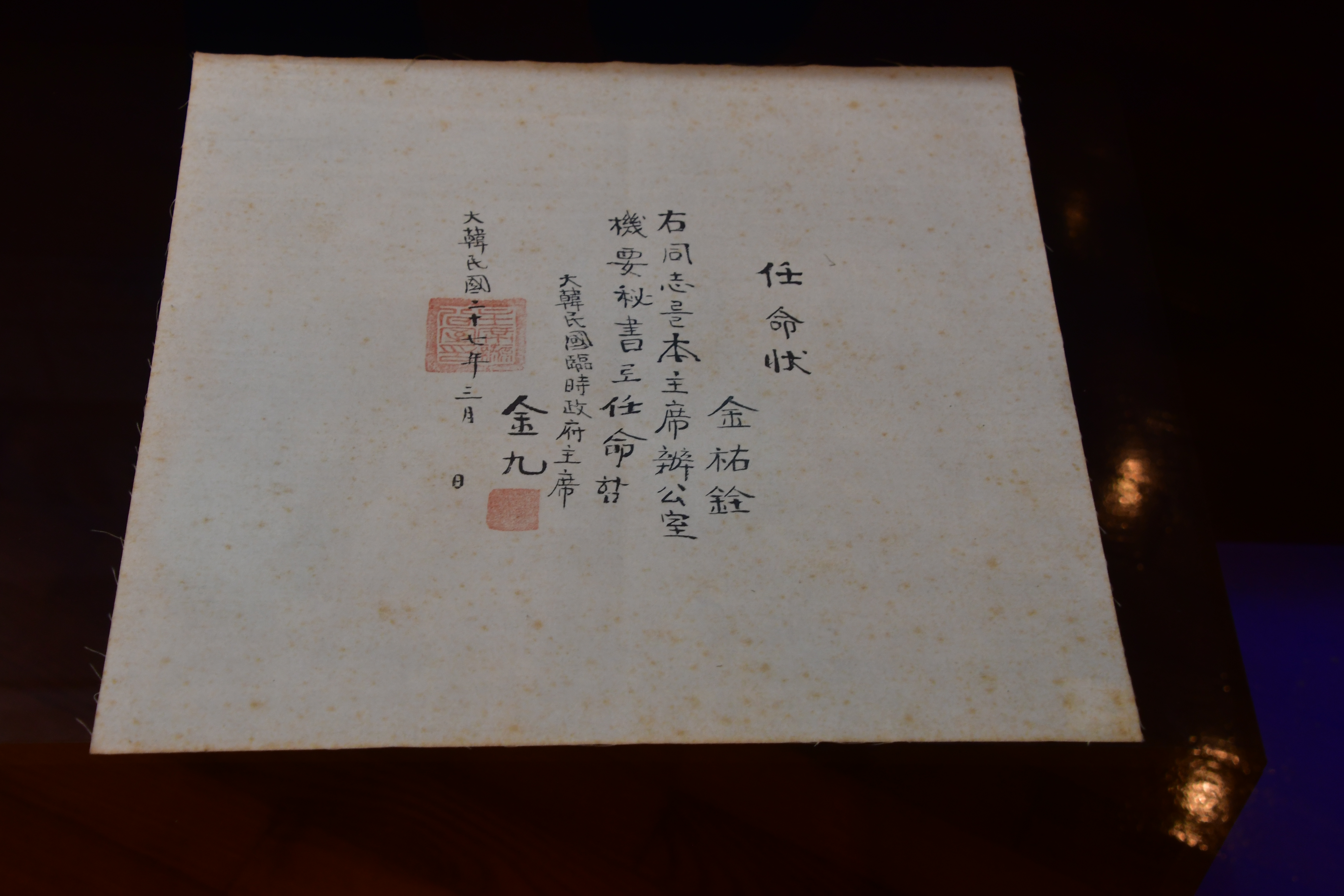 - 대한민국임시정부와 한국광복군의 활동을 알리기 위하여 국내에 파견한 특파원 임명장.