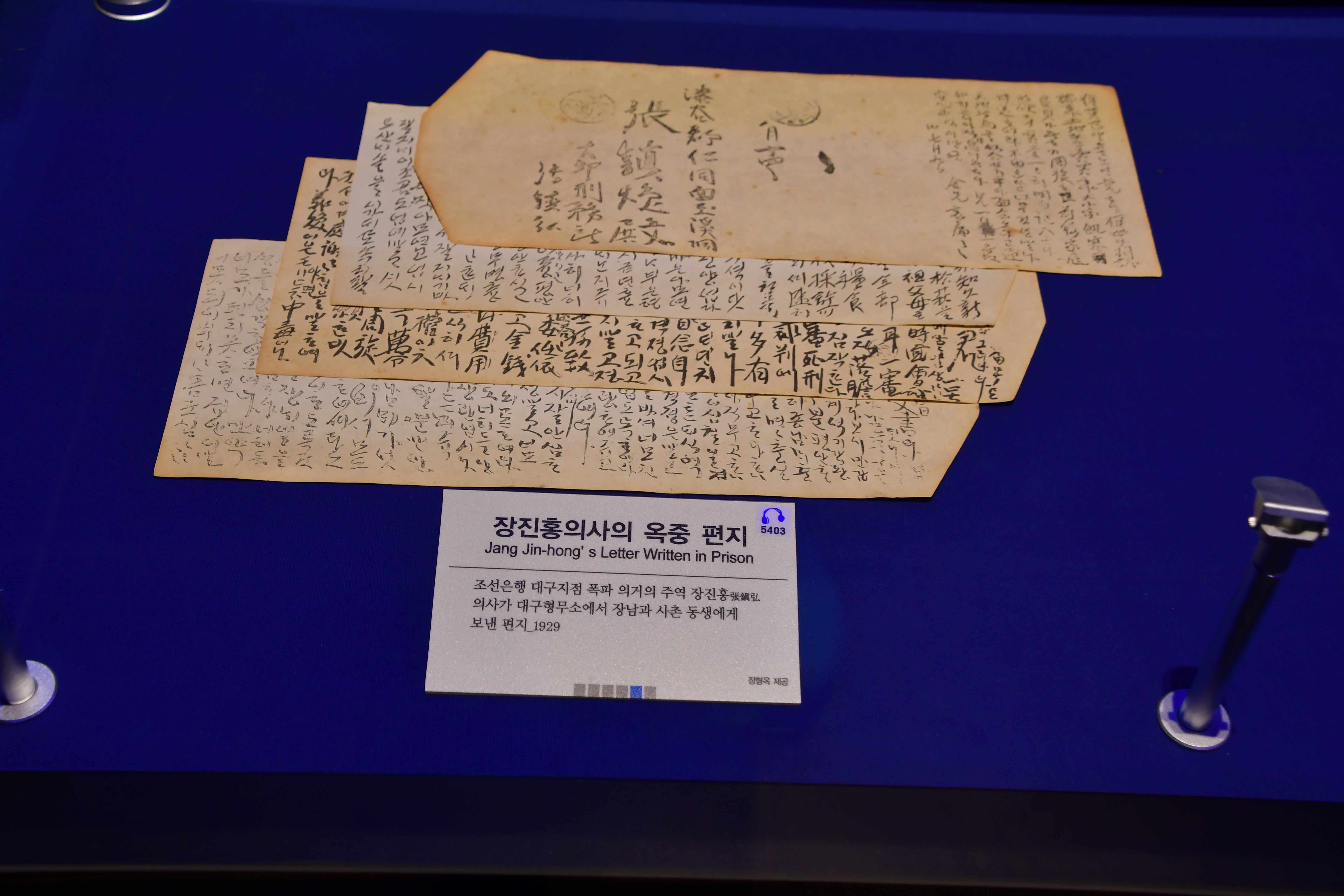 - 조선은행 다구지점 폭파 의거의 주역 장진홍張鎭弘 의사가 대구형무소에서 장남과 사촌 동생에게 보낸 편지. <1929.>