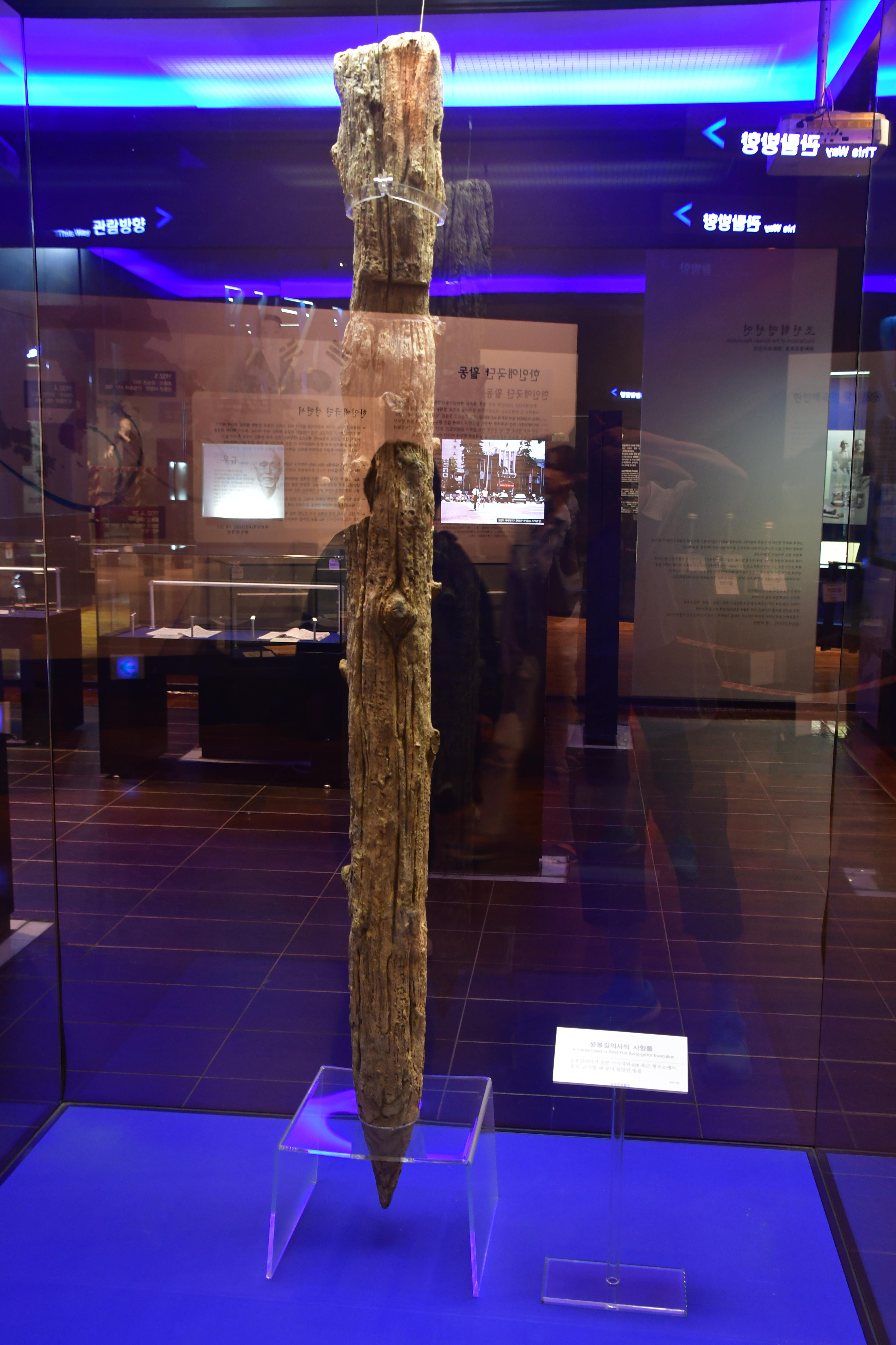 - 윤봉길의사가 일본 가나자와金澤 육군 형무소에서 총살, 순국할 때 몸이 묶였던 혈틀.